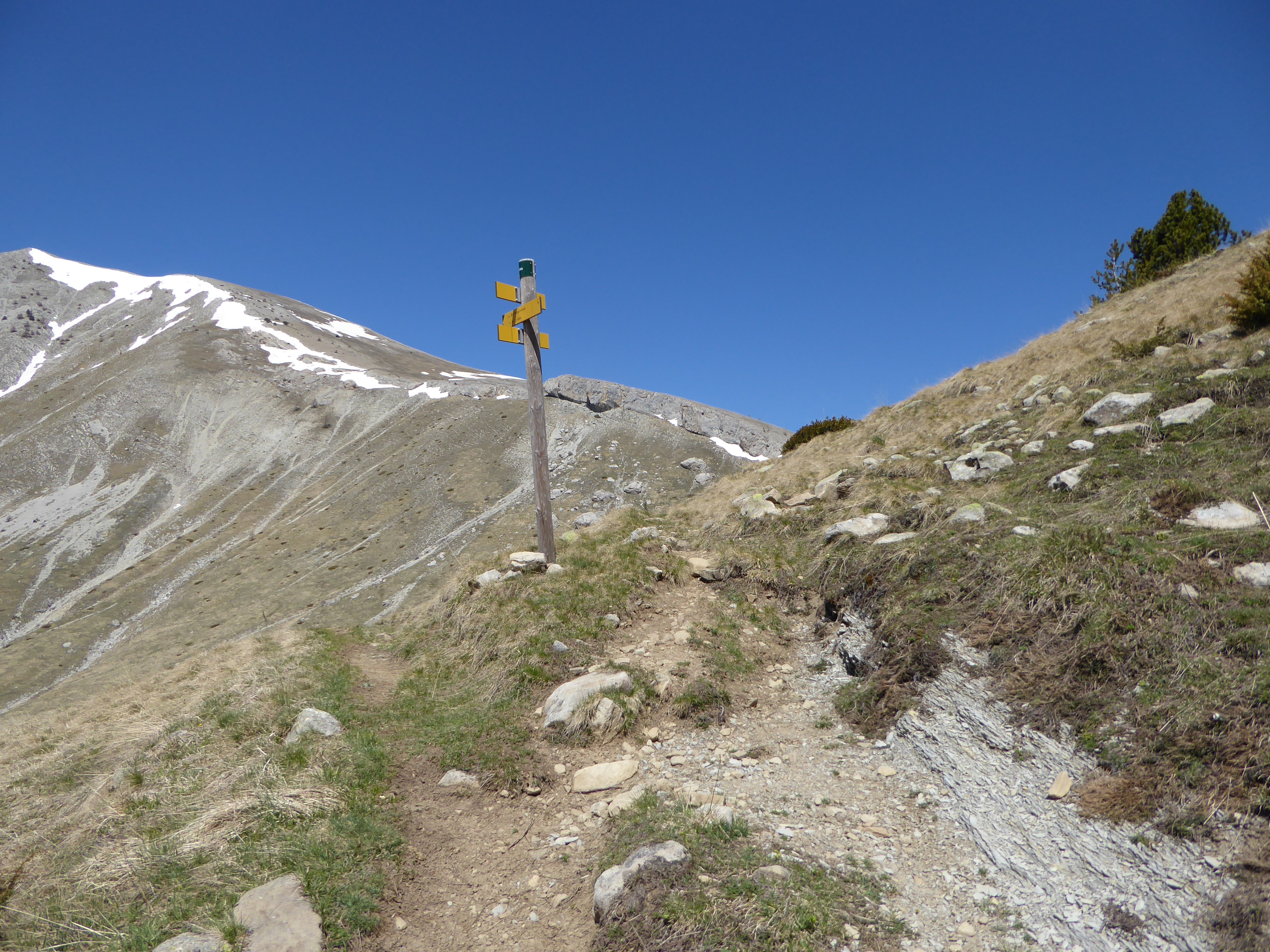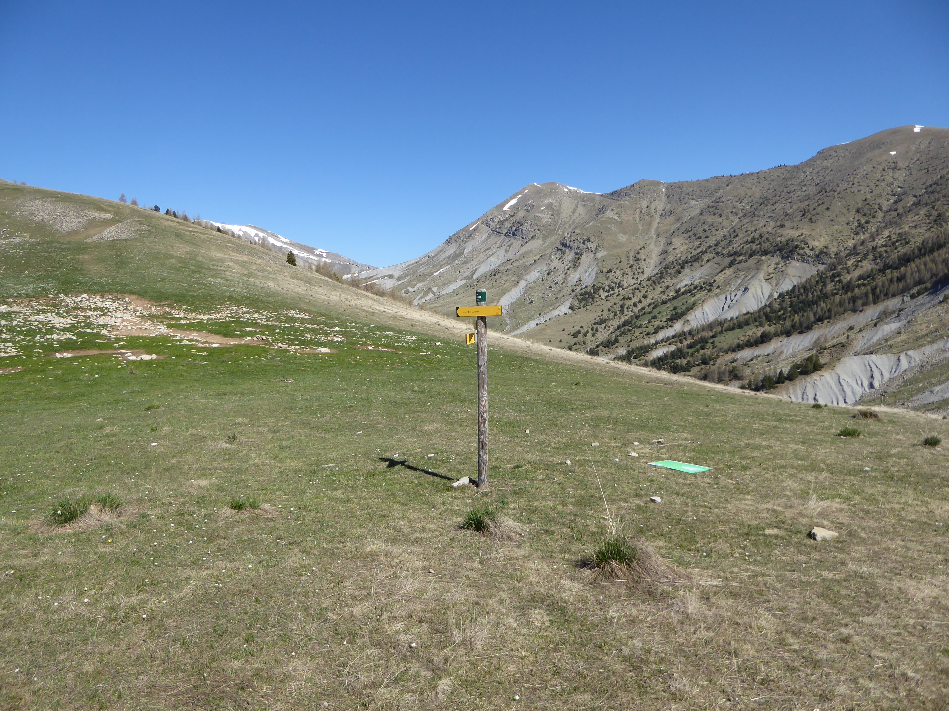 Barre de Boules (1990 m) : continuer tout droit direction Col de Vachière, balisé en jaune