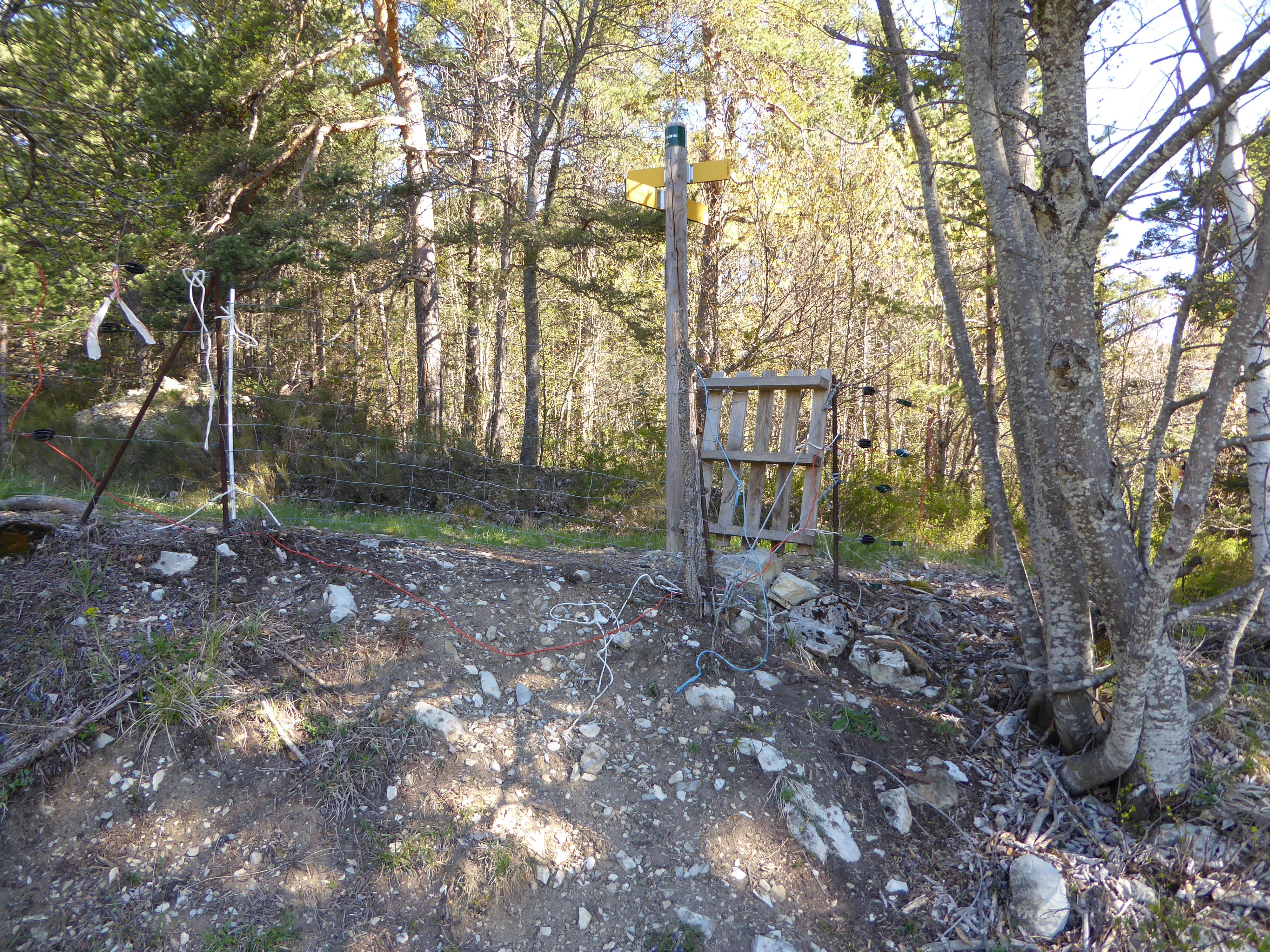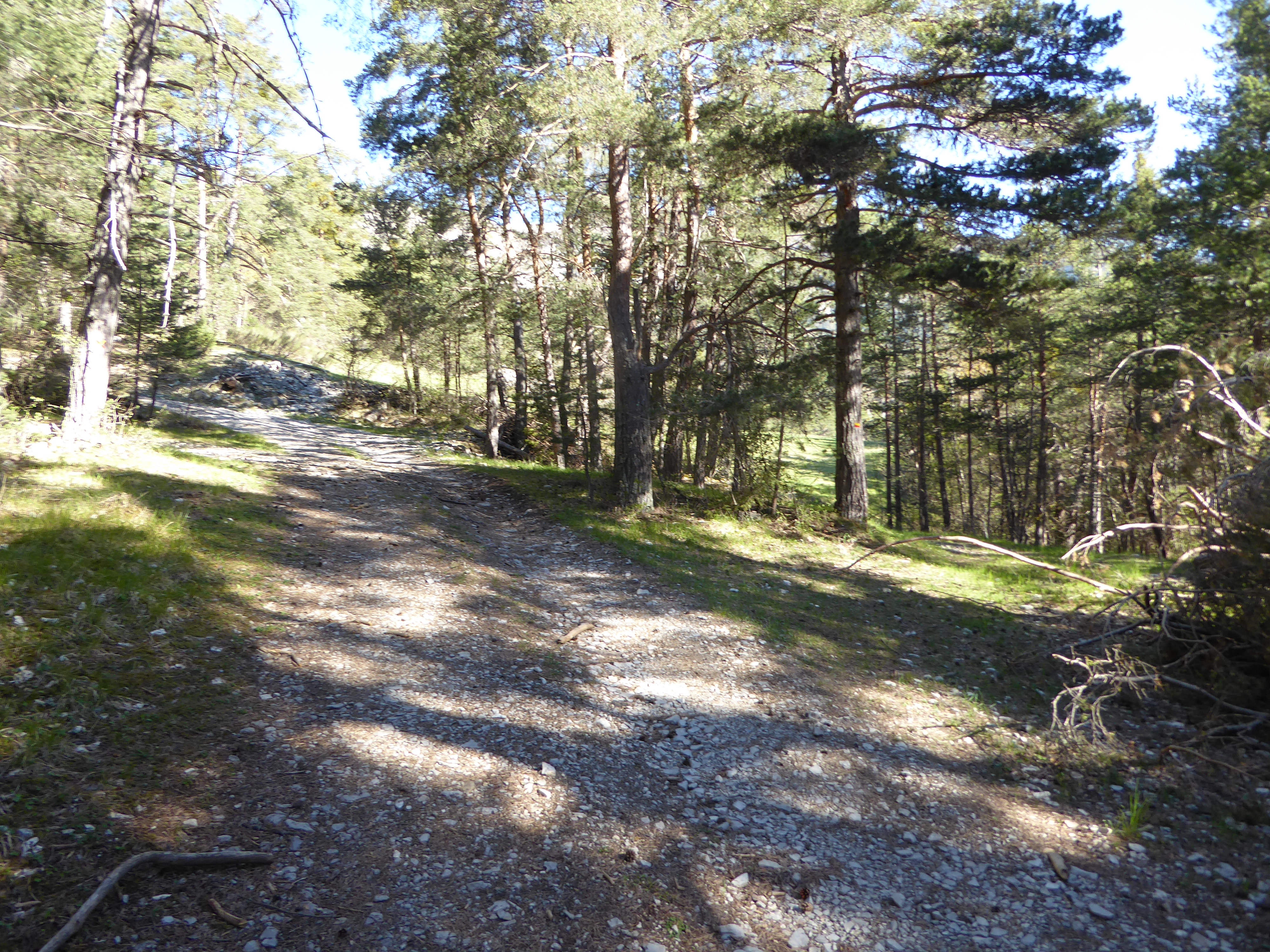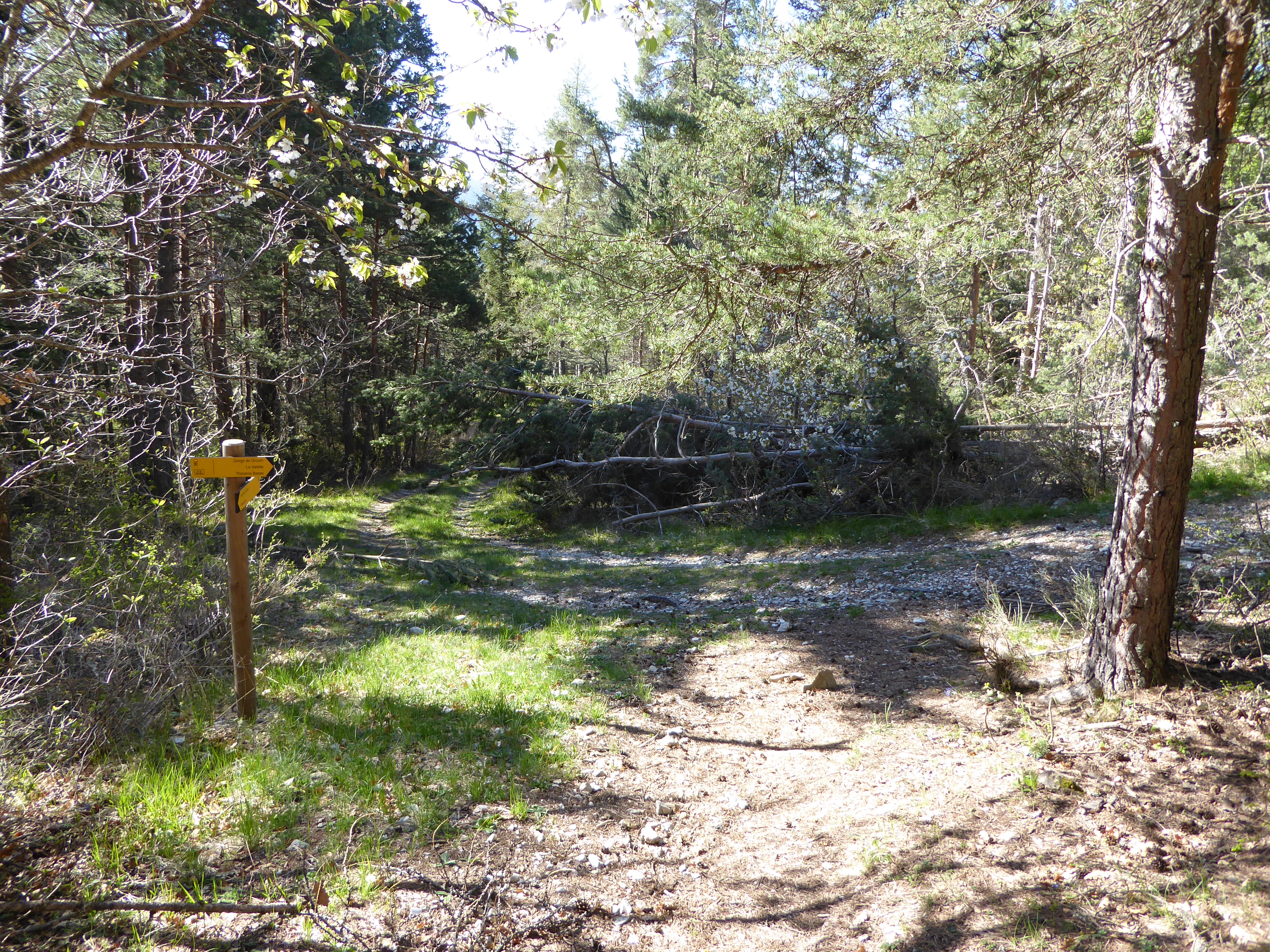 Bois des Fabres (1410 m) : tourner à droite direction Beauvezer, balisé en jaune et rouge