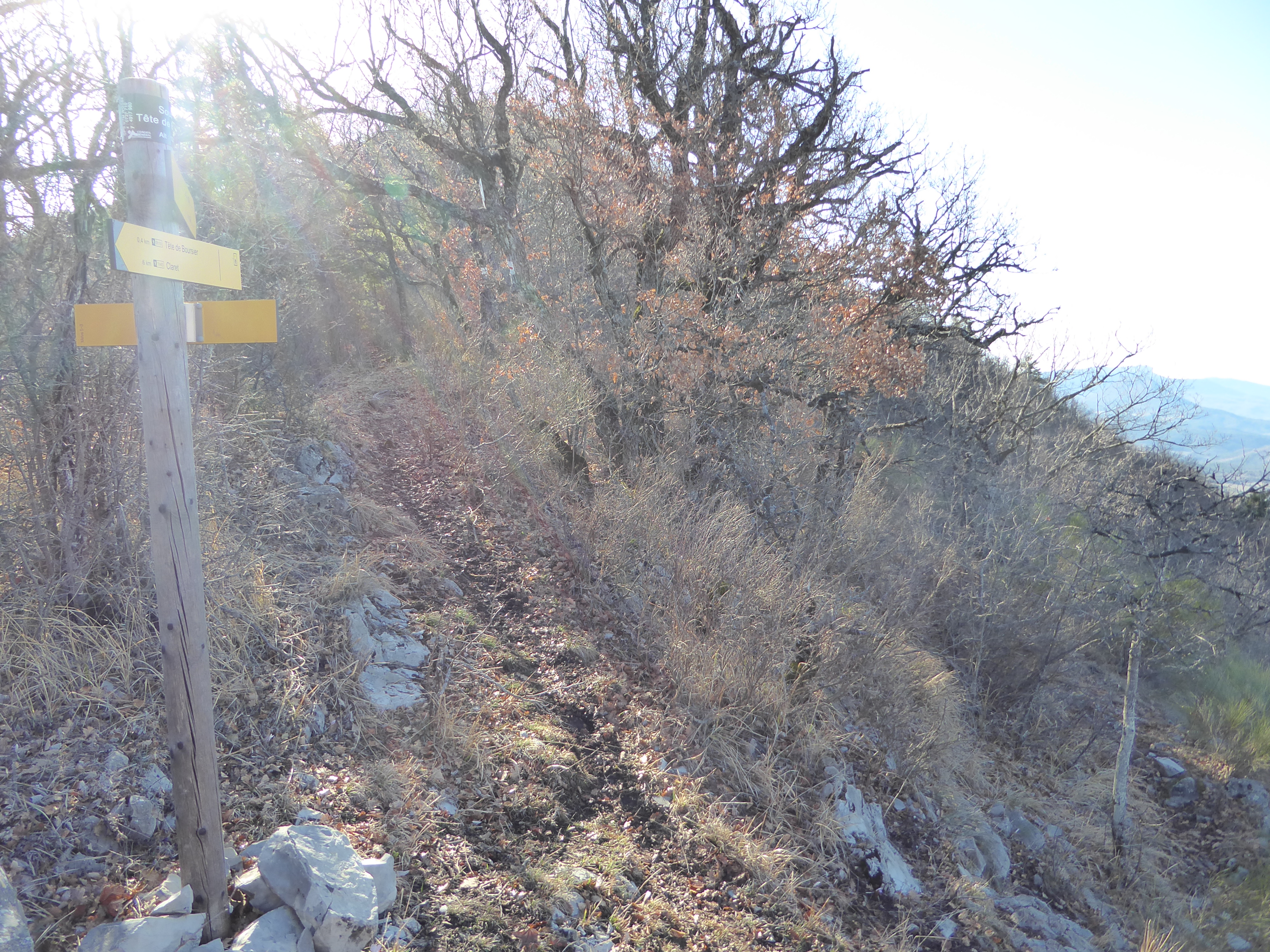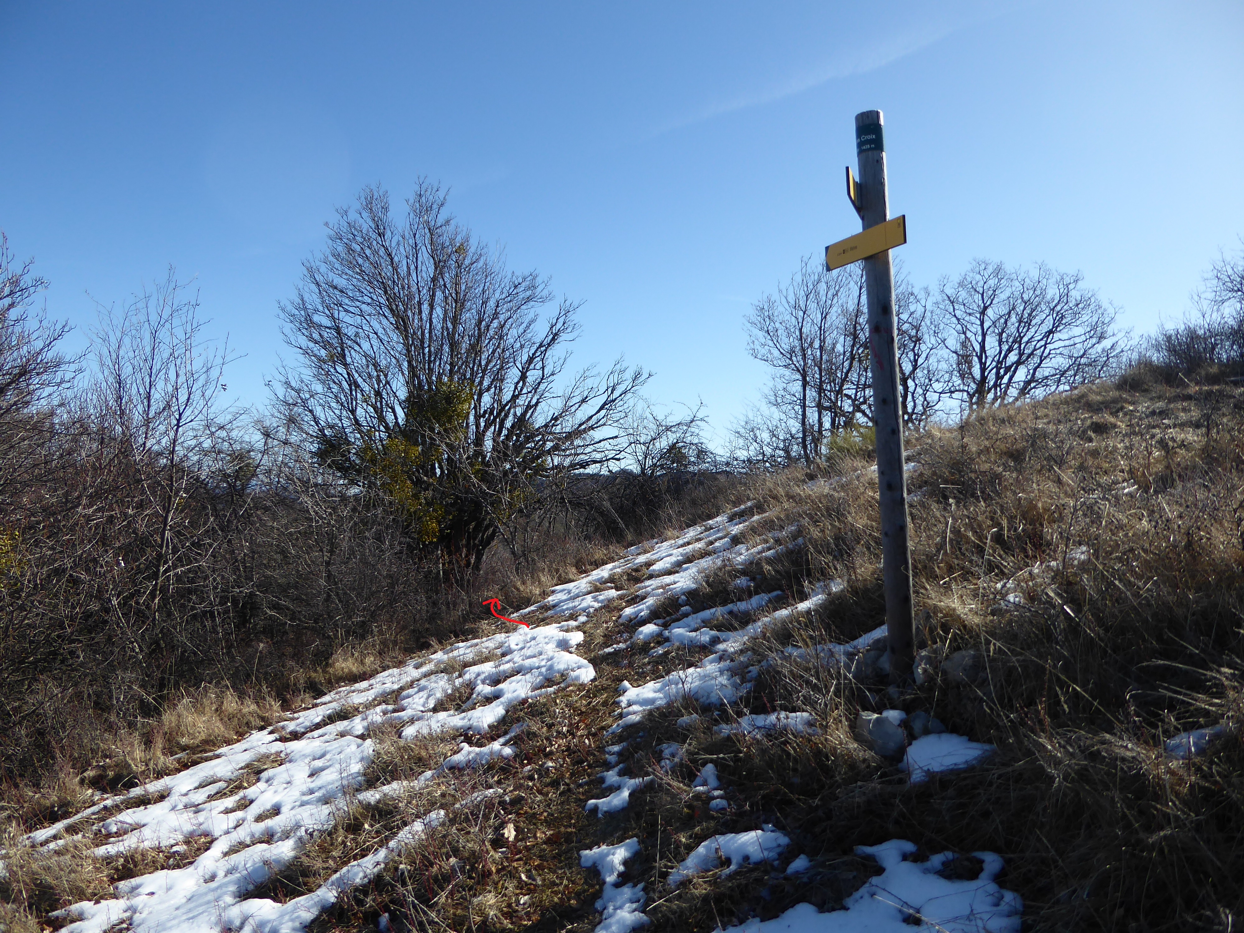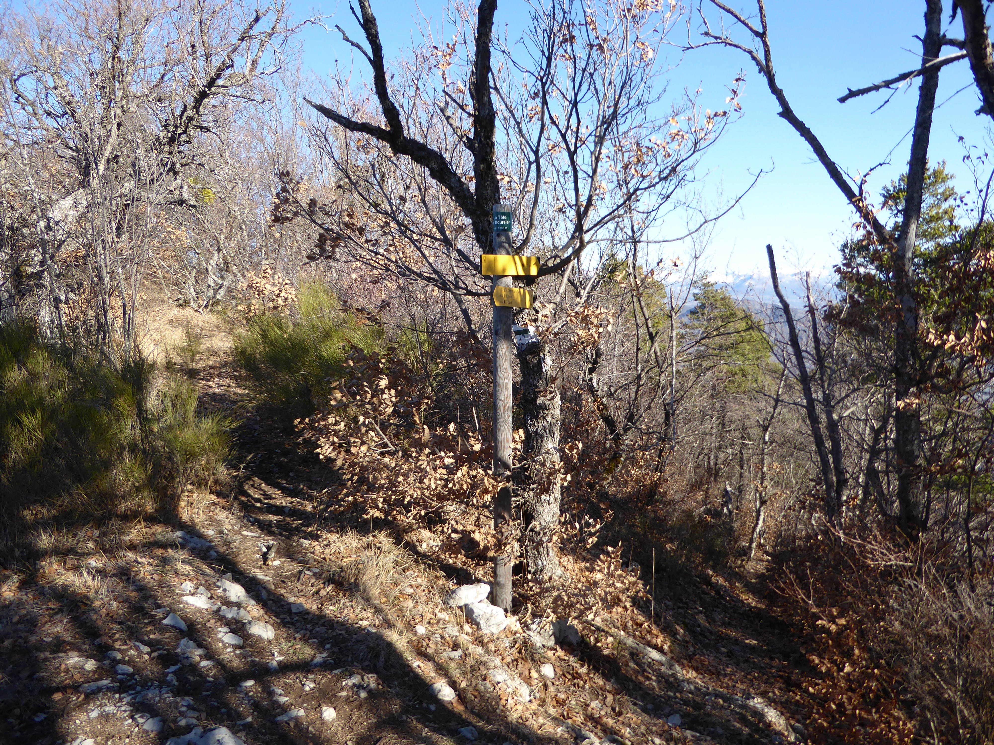 Chemin de la Plane (855 m) : suivre le chemin qui monte sur la droite direction Claret, balisé en jaune
