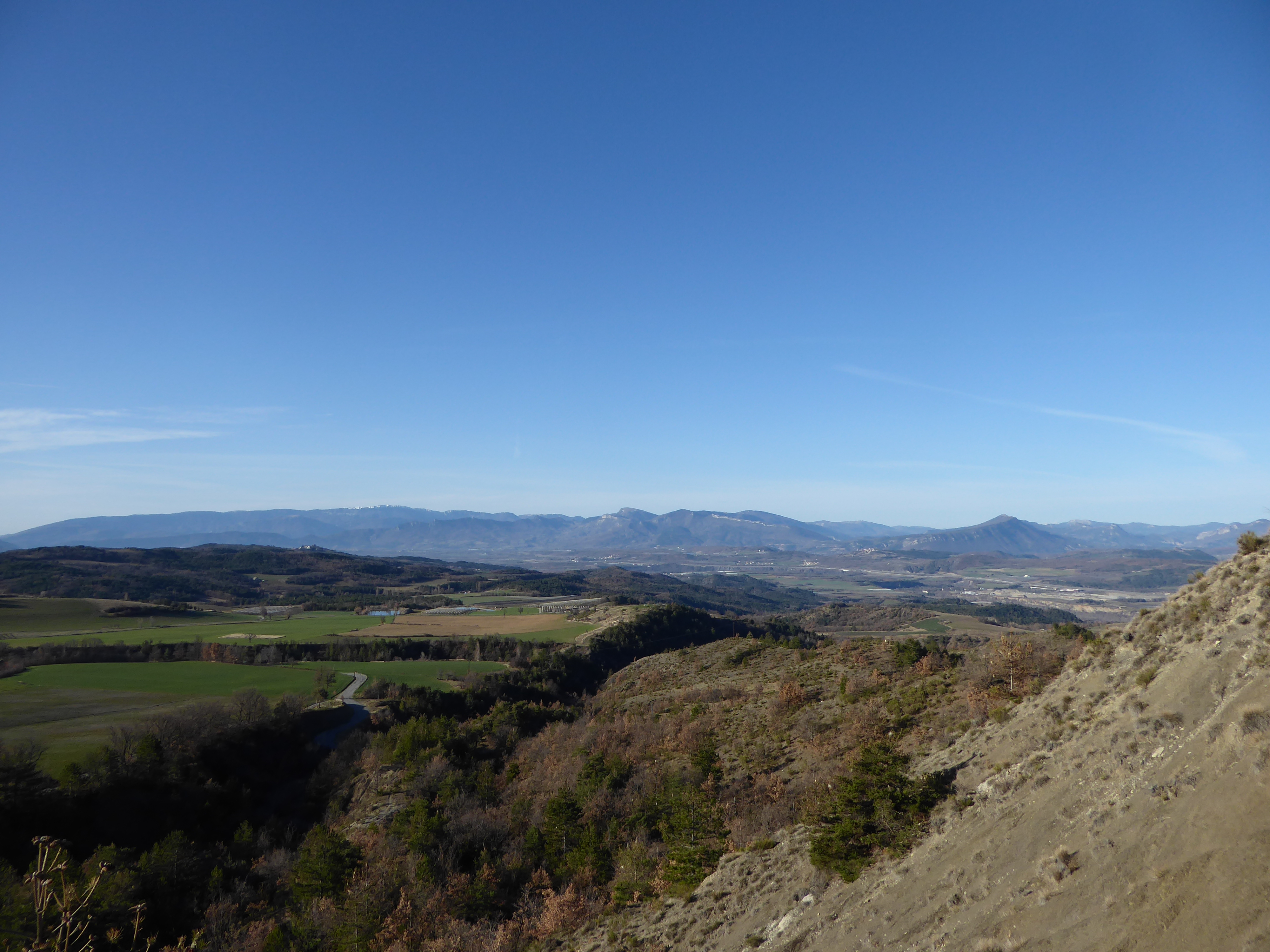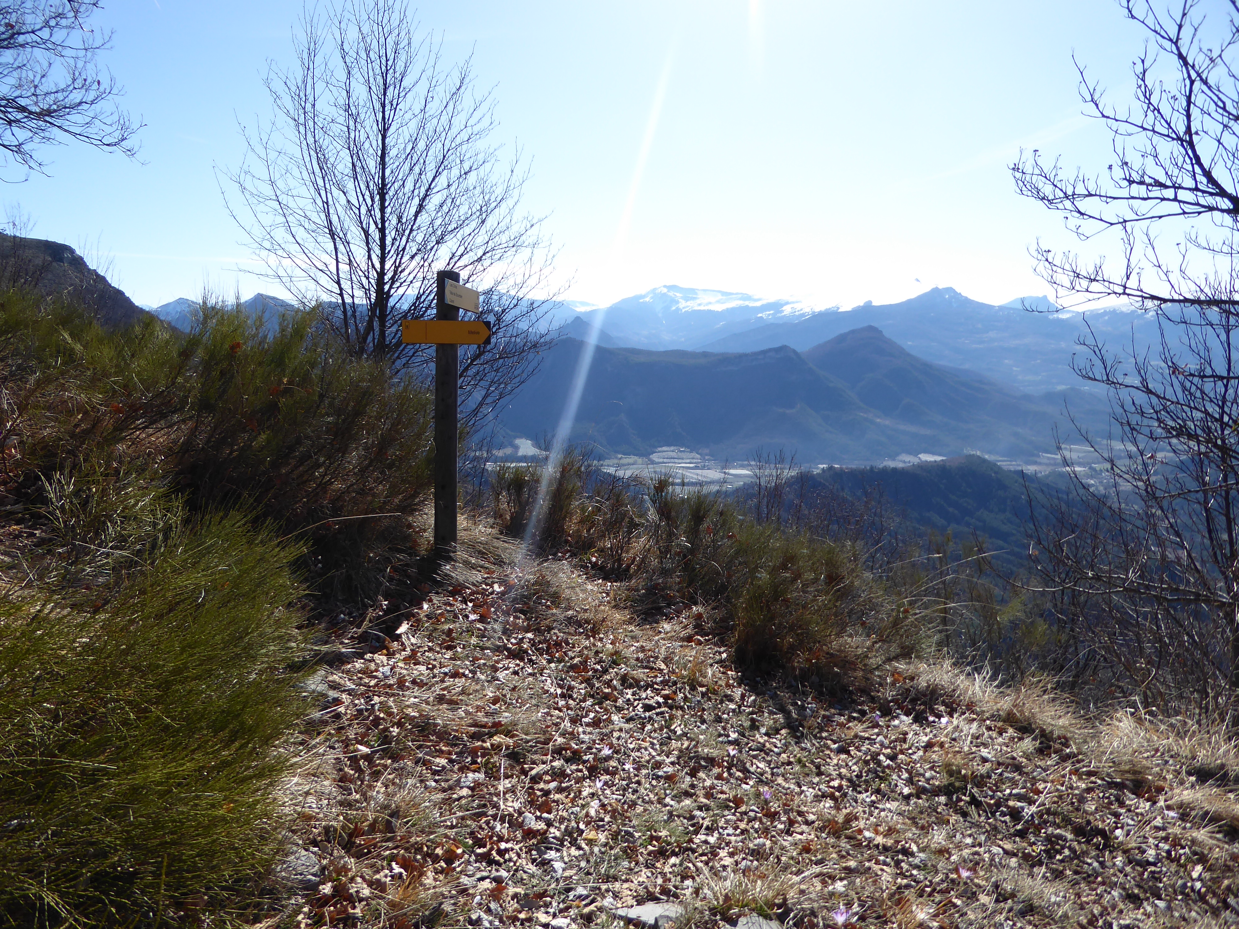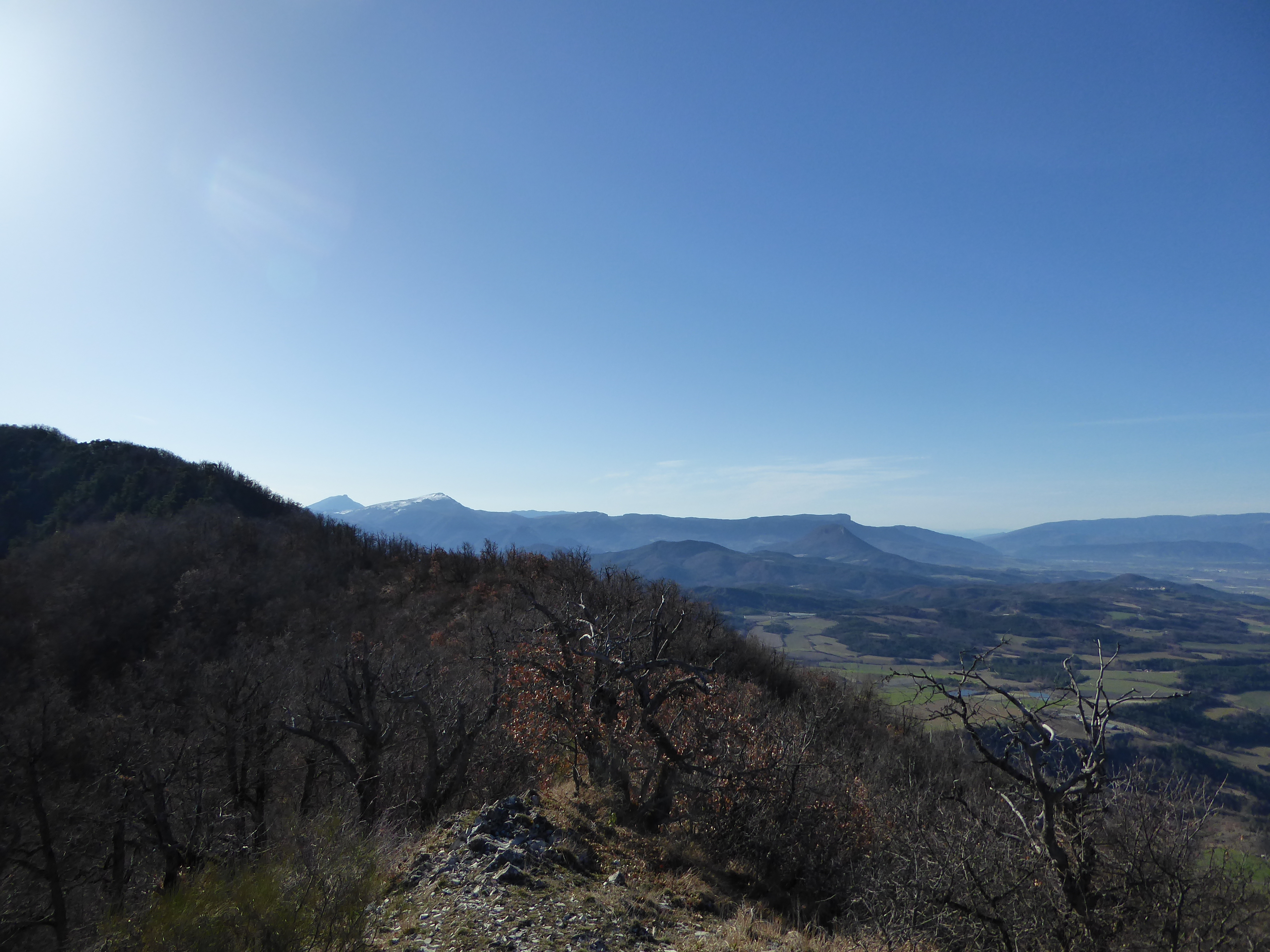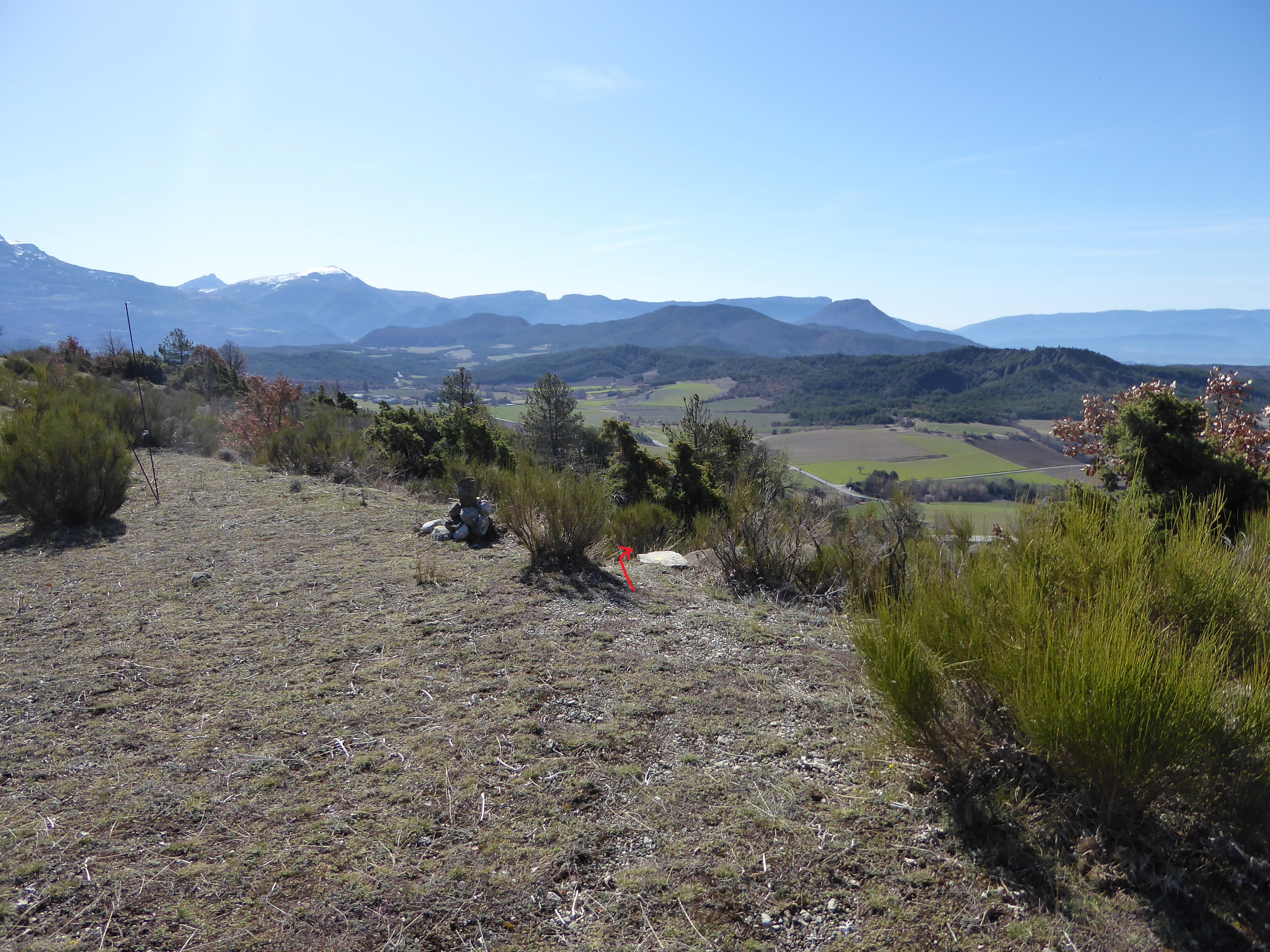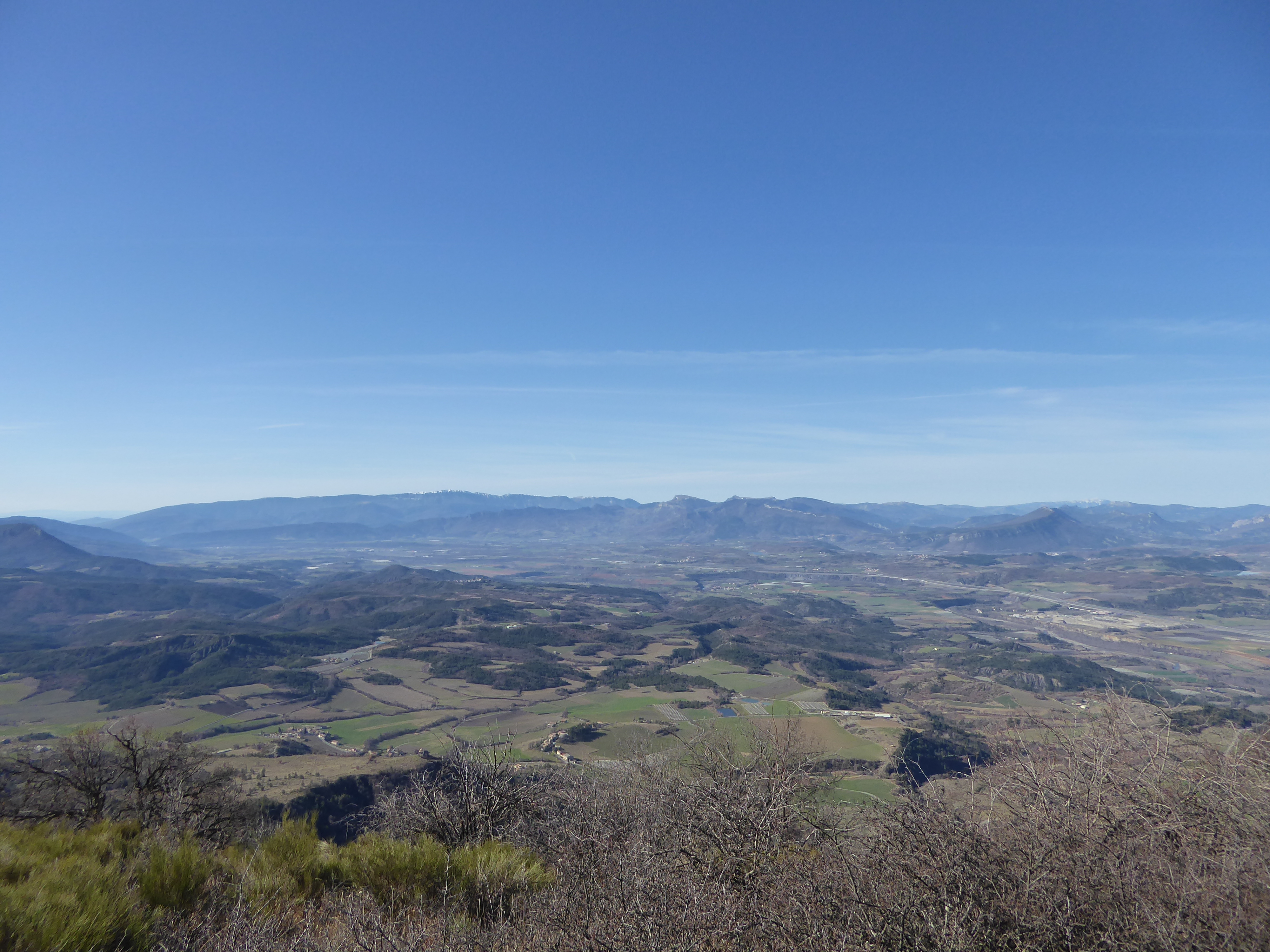Arrivée au sommet de la Tête de Boursier (1256 m) : magnifique panorama sur les sommets bordant la Vallée de la Durance et sur le Massif des Écrins