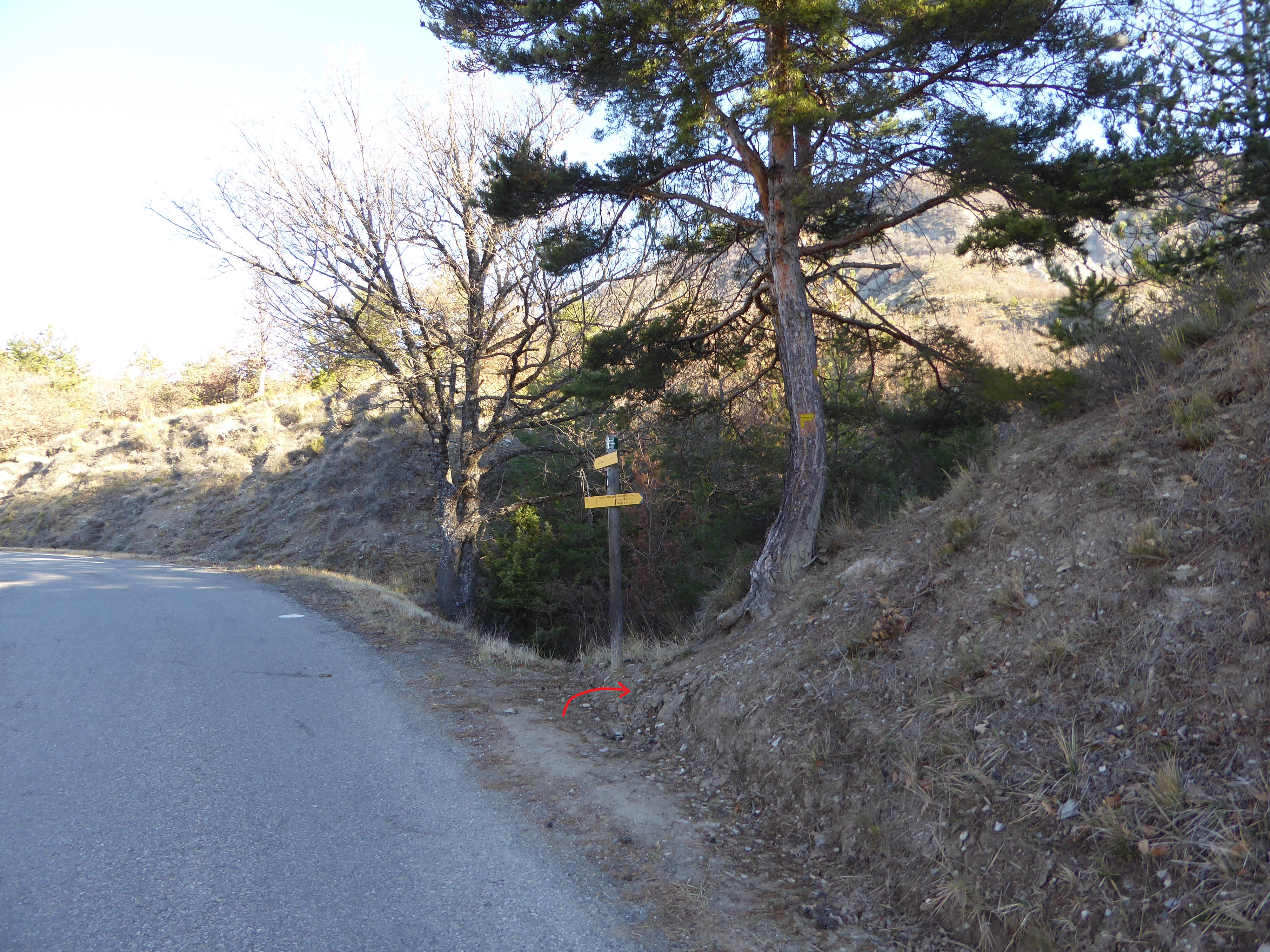 Départ Melve (839 m) : à cette intersection, tourner à droite direction Claret, balisé en jaune