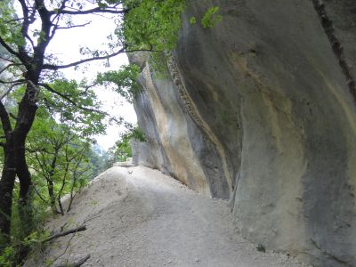 Le sentier passe parfois au ras des falaises de calcaire