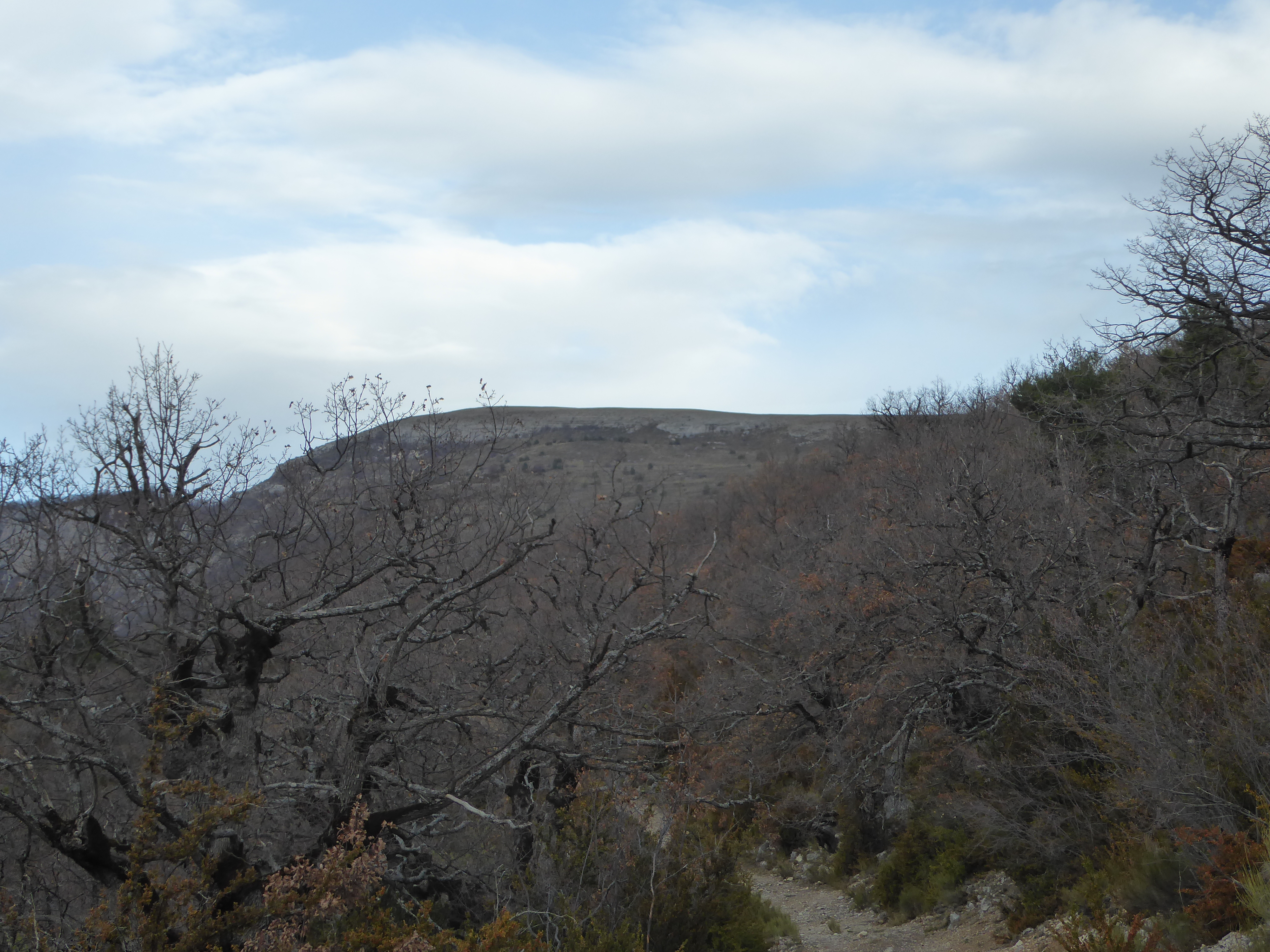 On aperçoit le plateau sommital de la Montagne du Pied du Mulet
