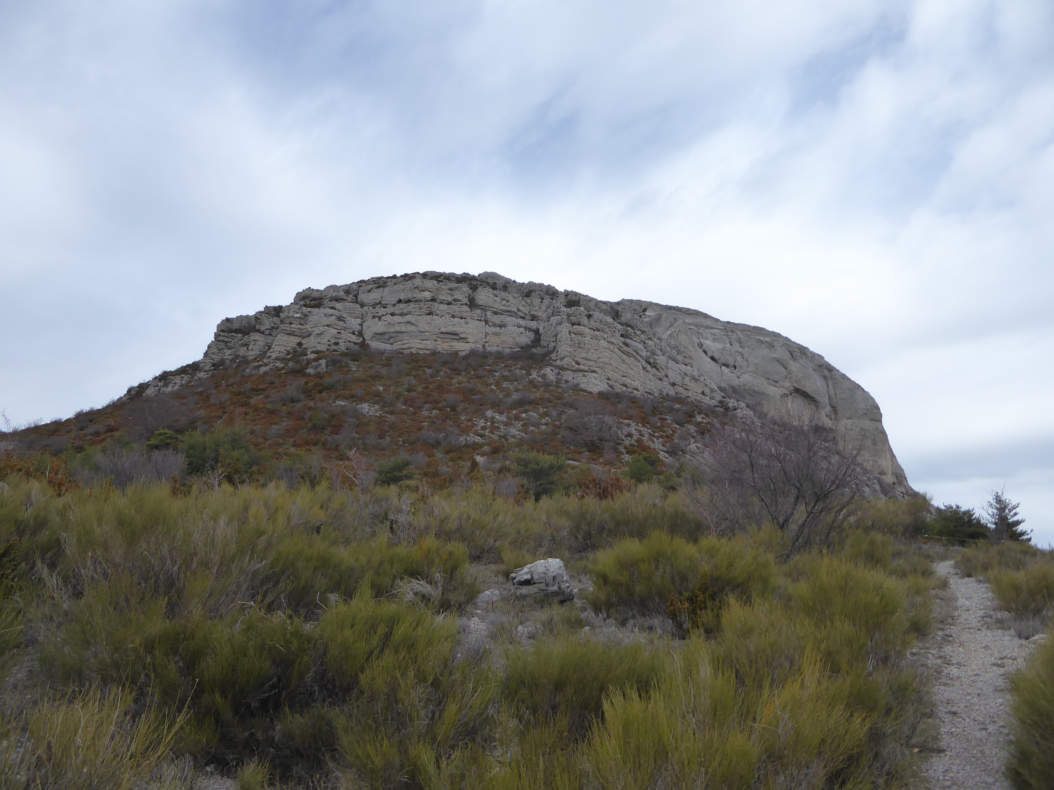 Pour accéder au plateau sommital, le chemin contourne cette imposante barre rocheuse sur la gauche !