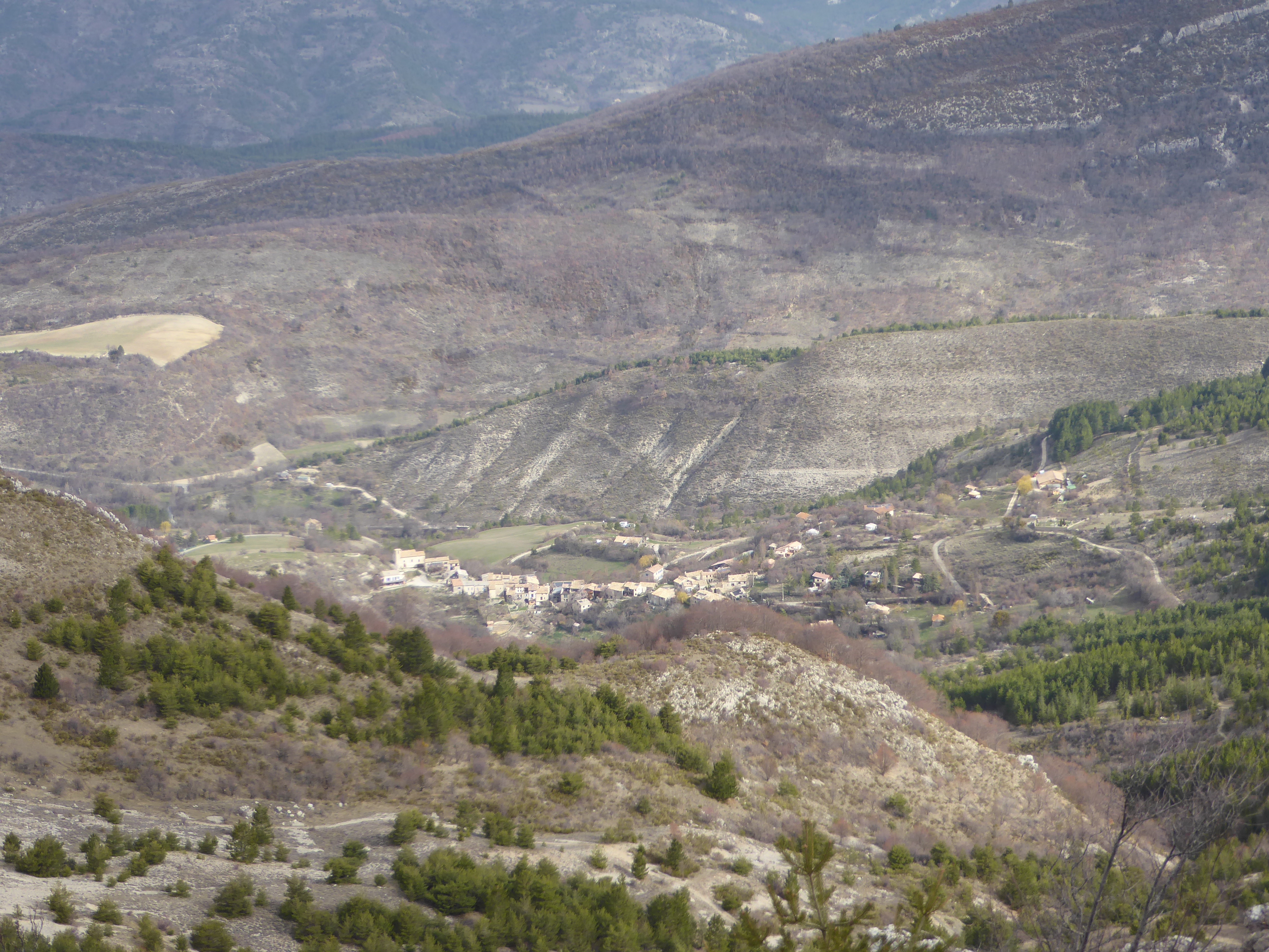 Vue plongeante sur le village d'Éourres qui peut être le lieu de départ de cette randonnée ... et d'autres dans le secteur !