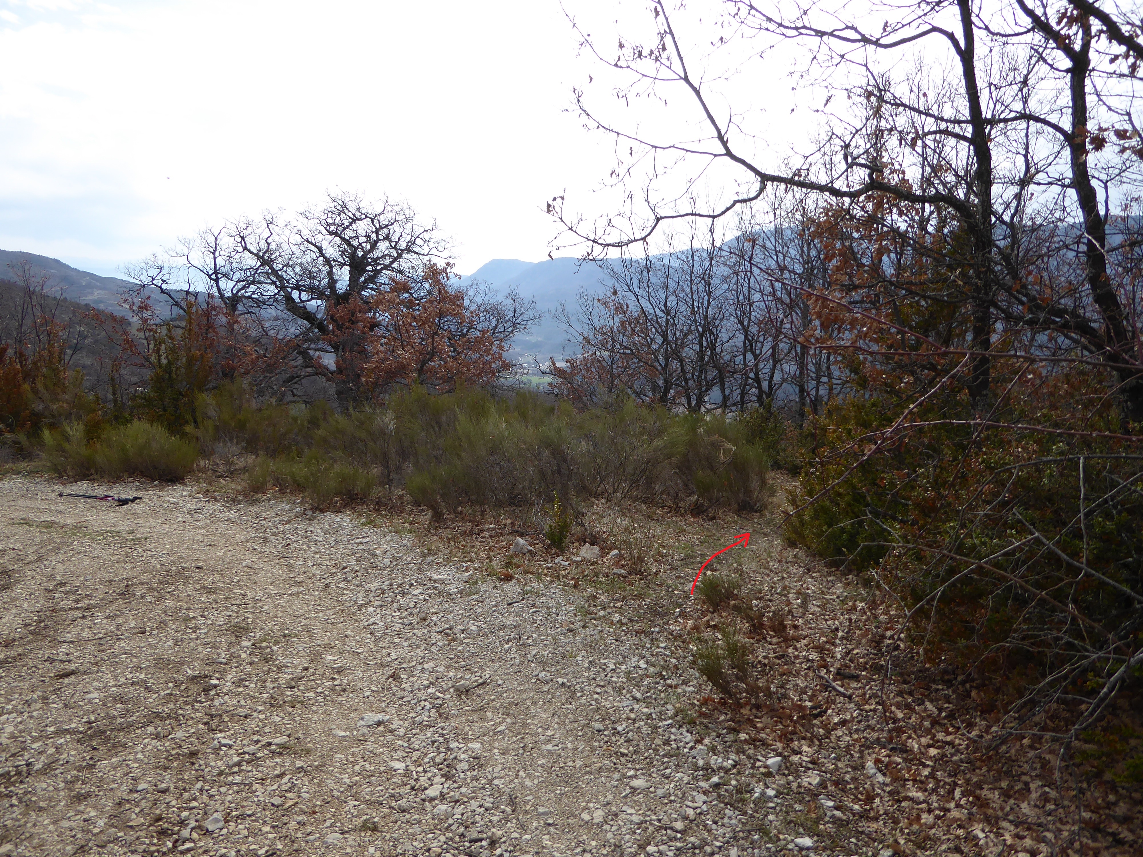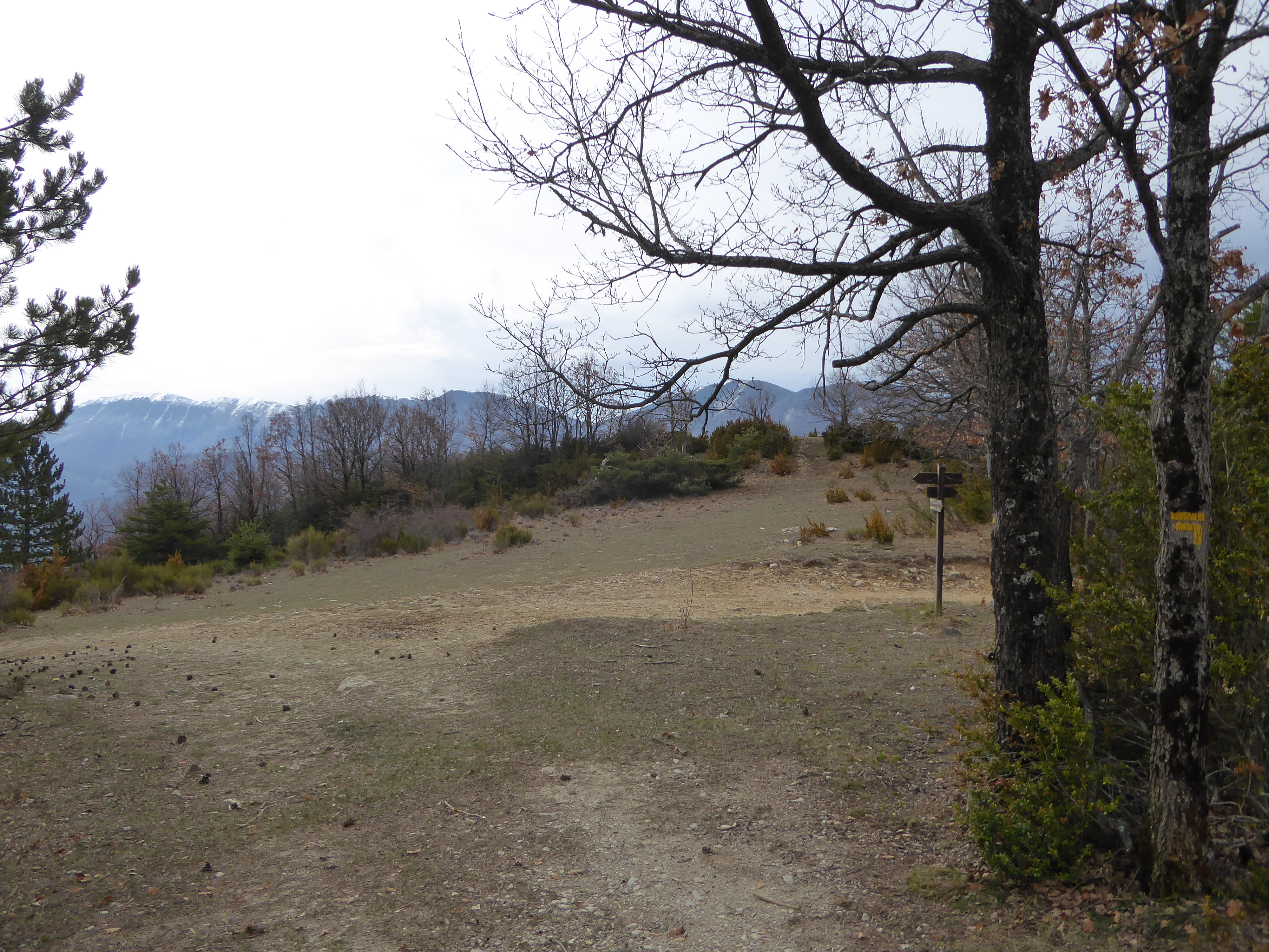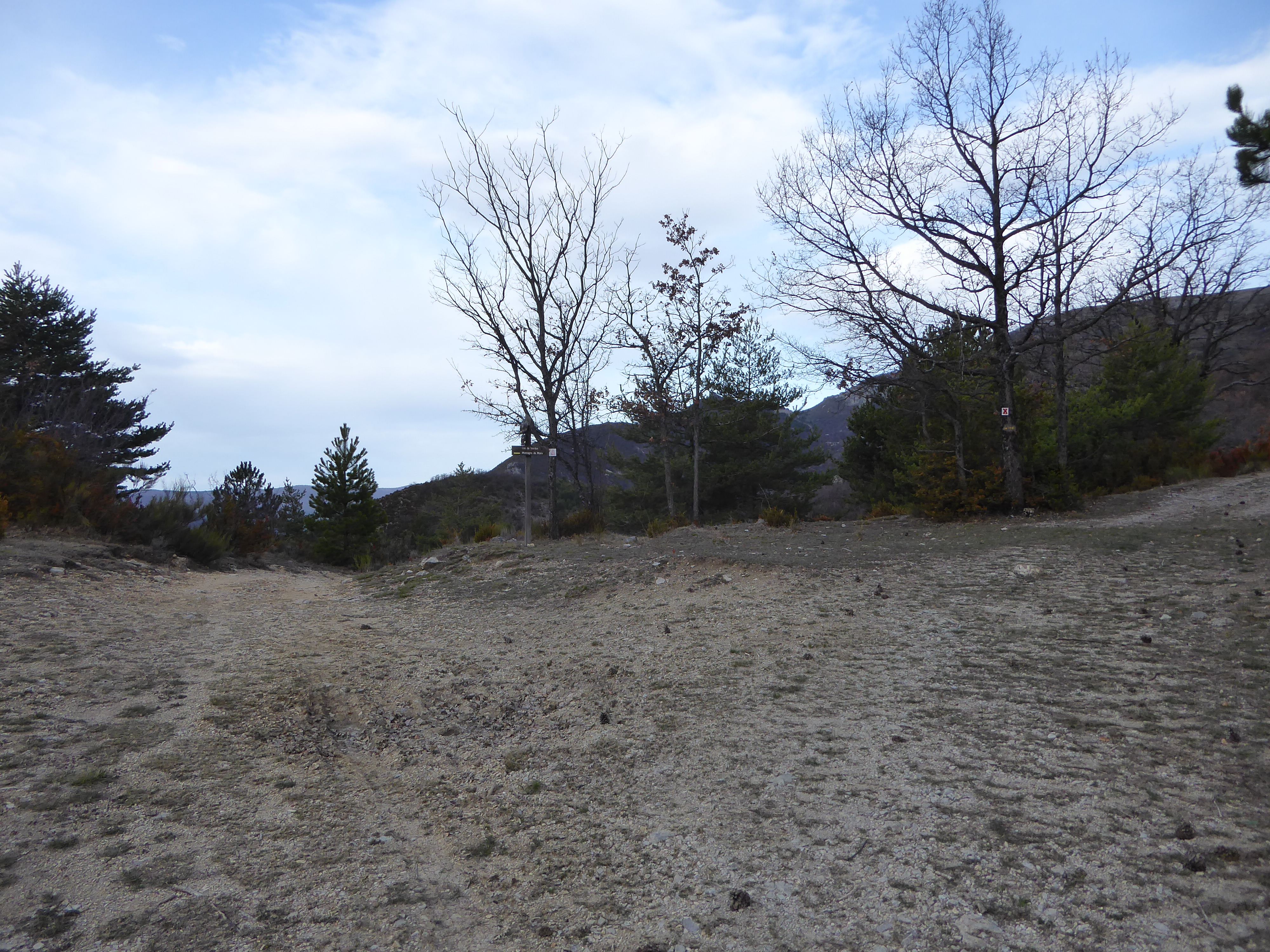 Col de Verdun (1316 m) : suivre le chemin partant sur la droite direction Saint-Vincent-sur-Jabron, balisé en jaune