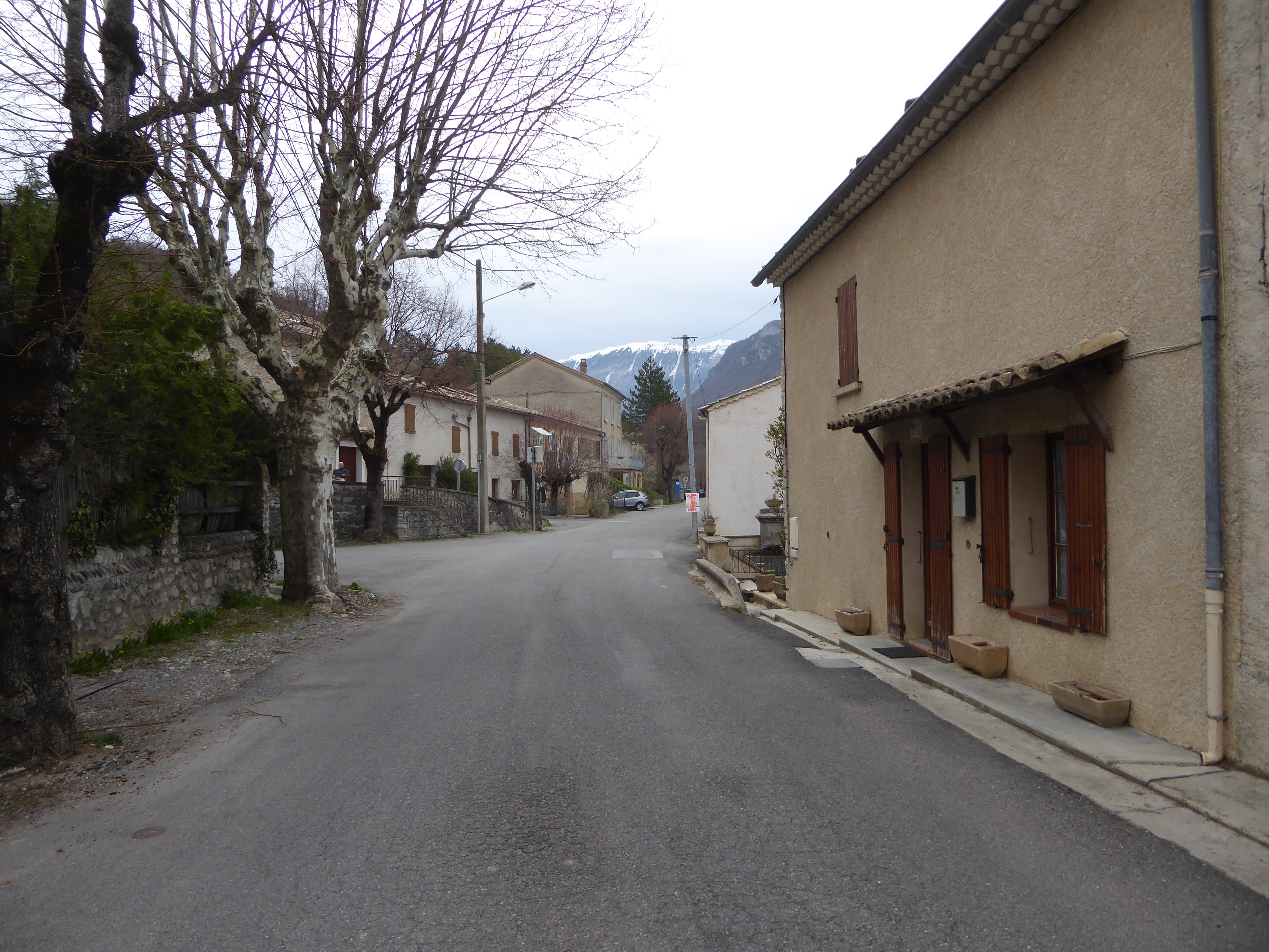 École de la Voie Intérieure (906 m) : continuer à suivre la route direction Saint-Vincent-sur-Jabron, balisé en jaune