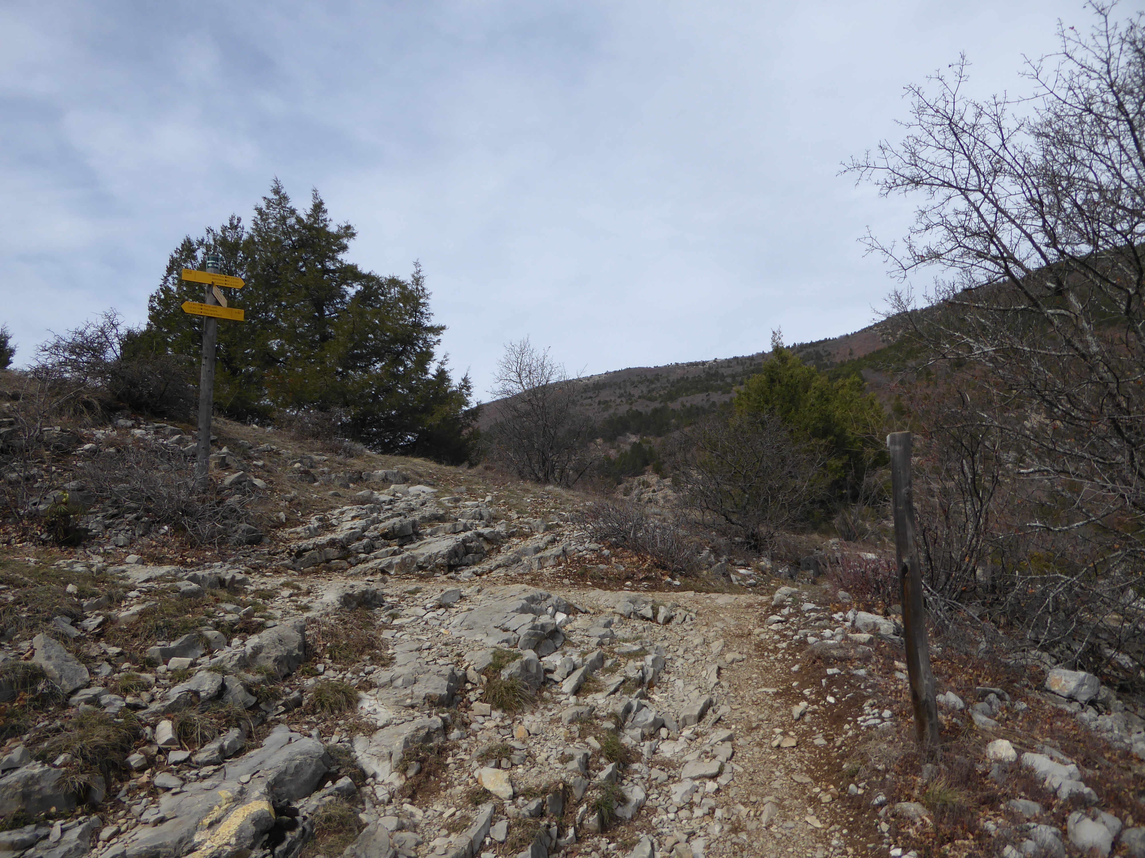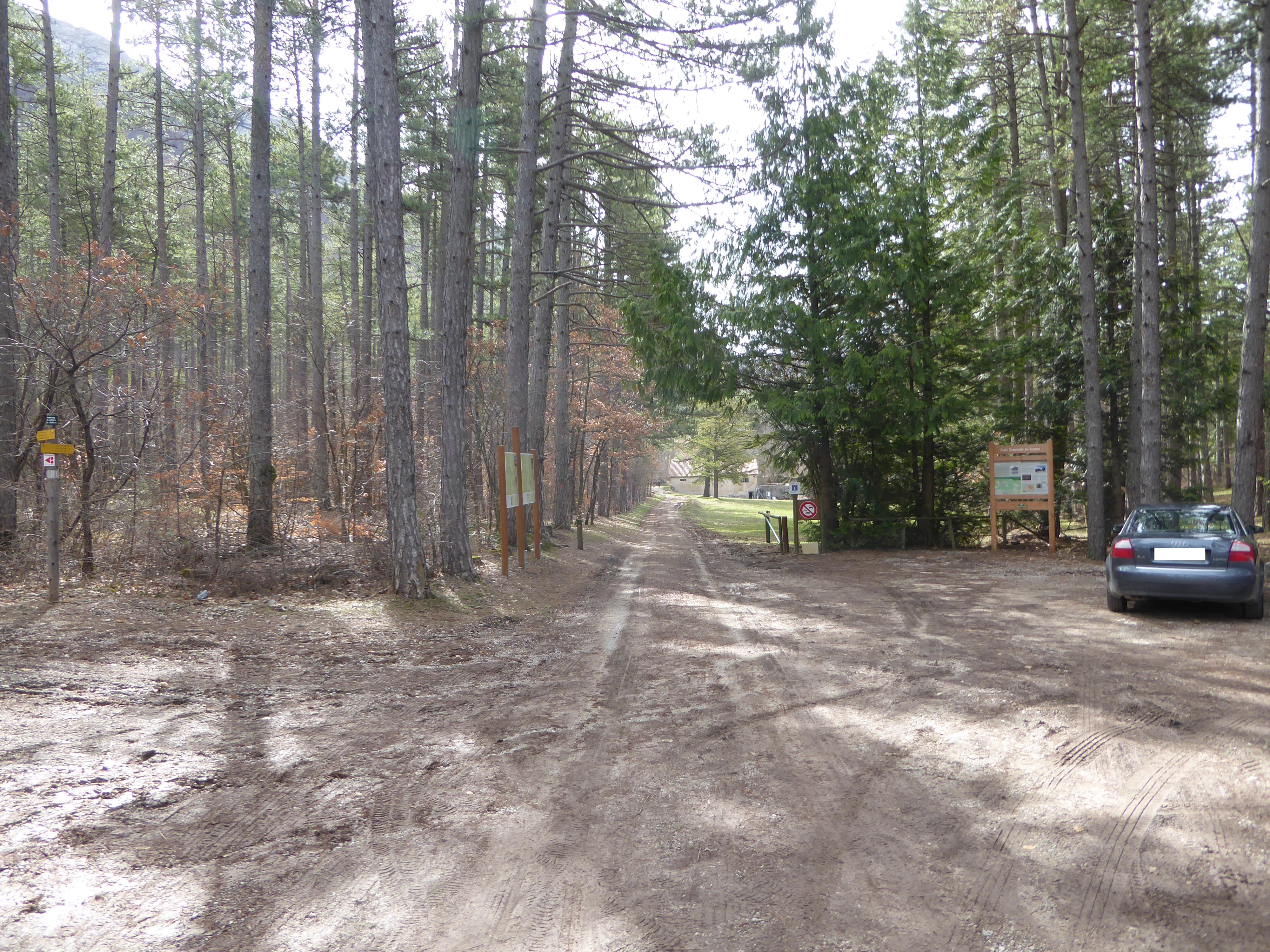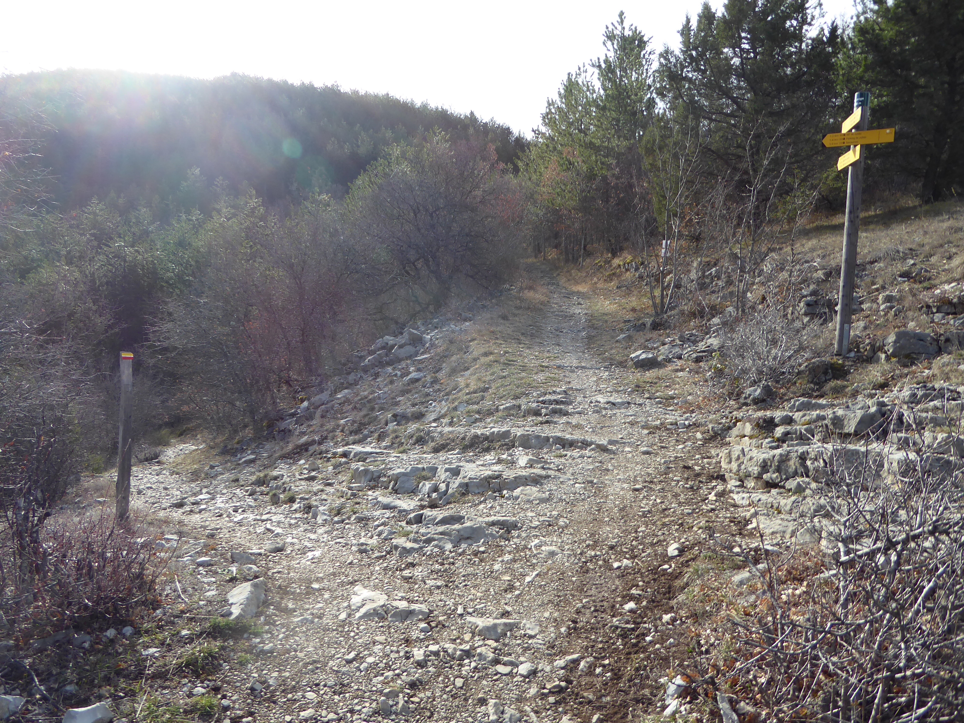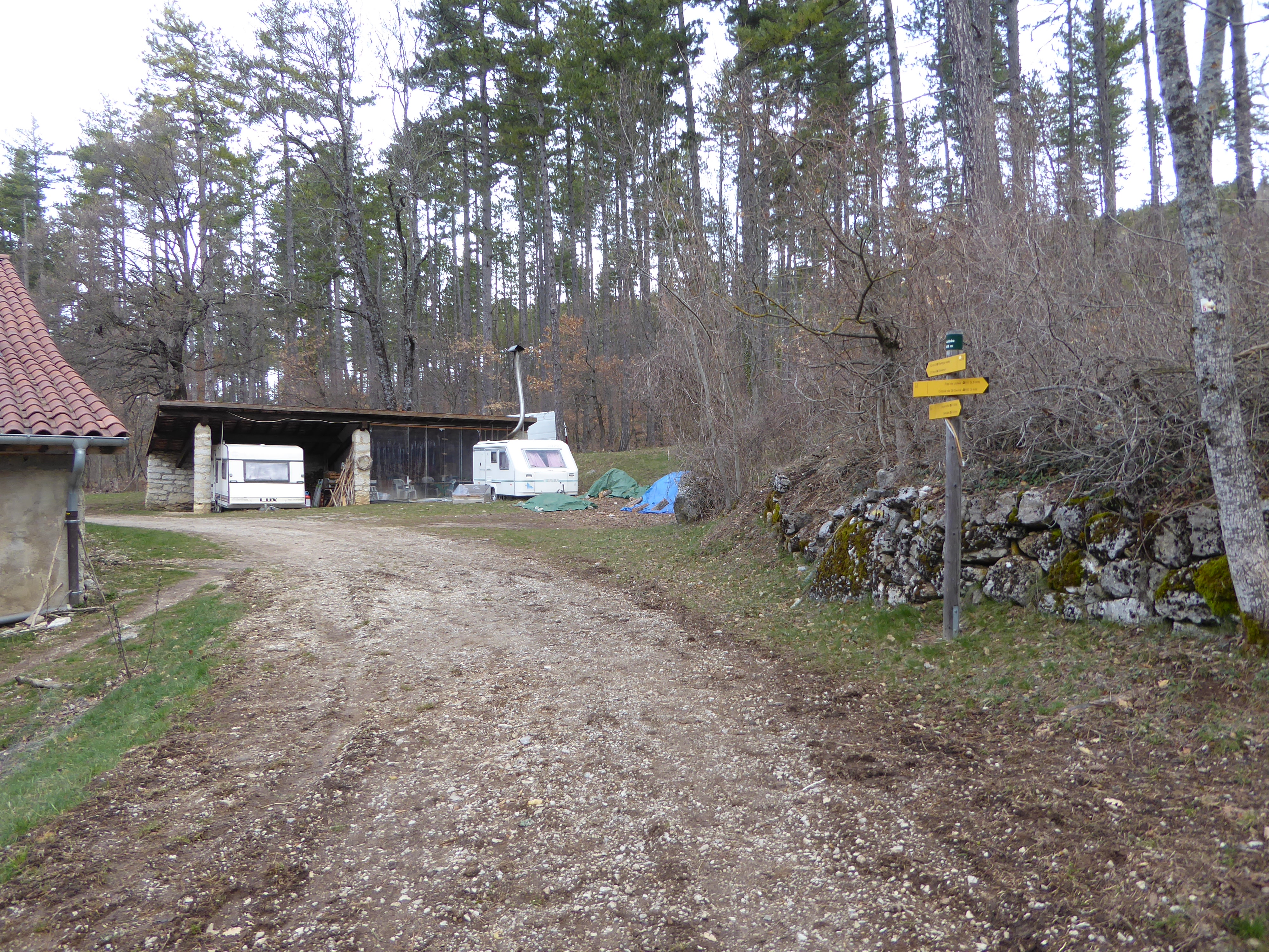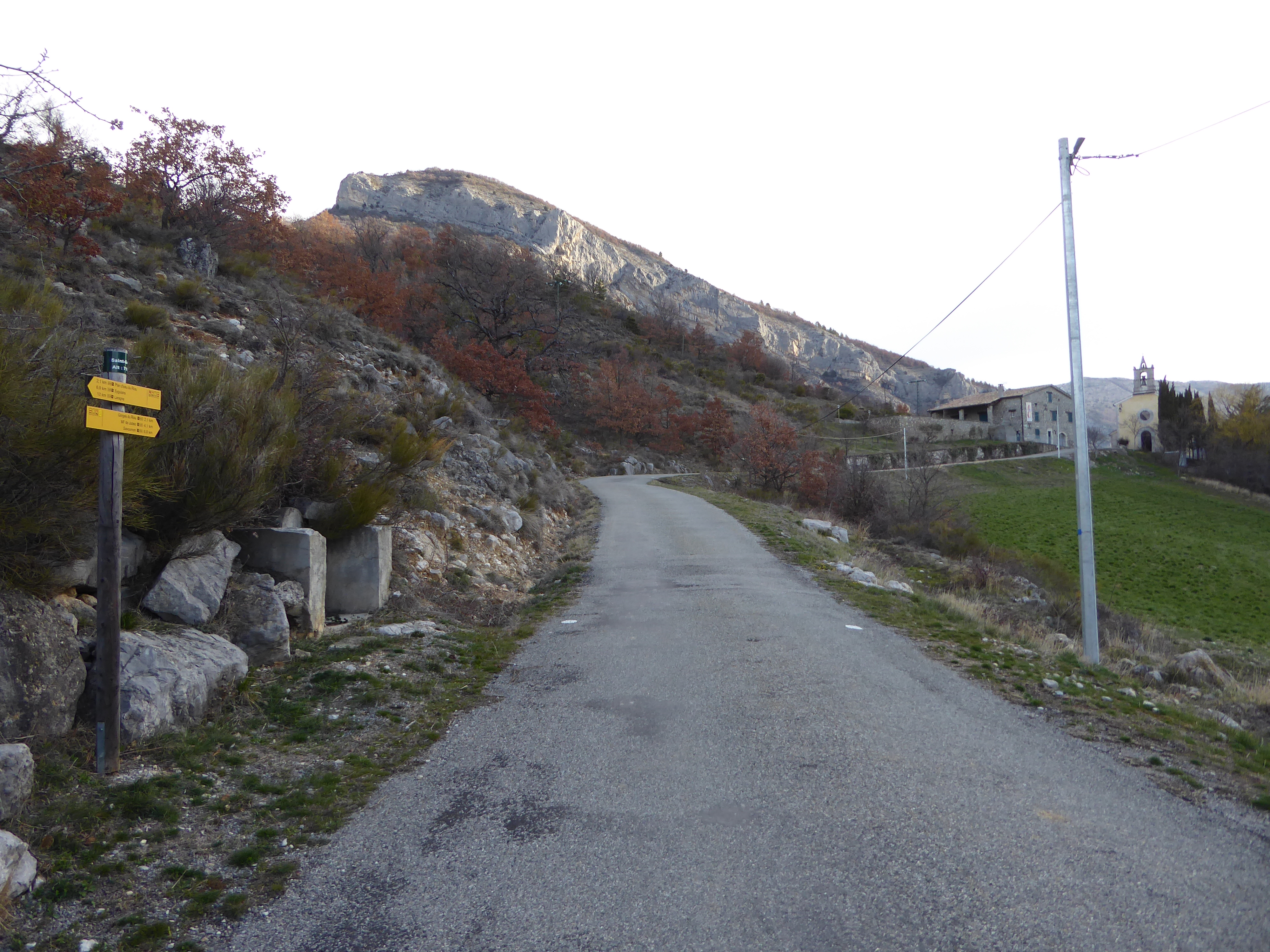 Départ Saint-Genis (710 m) : suivre la route qui part tout droit direction Gorges du Riou, balisé en jaune et en jaune et rouge