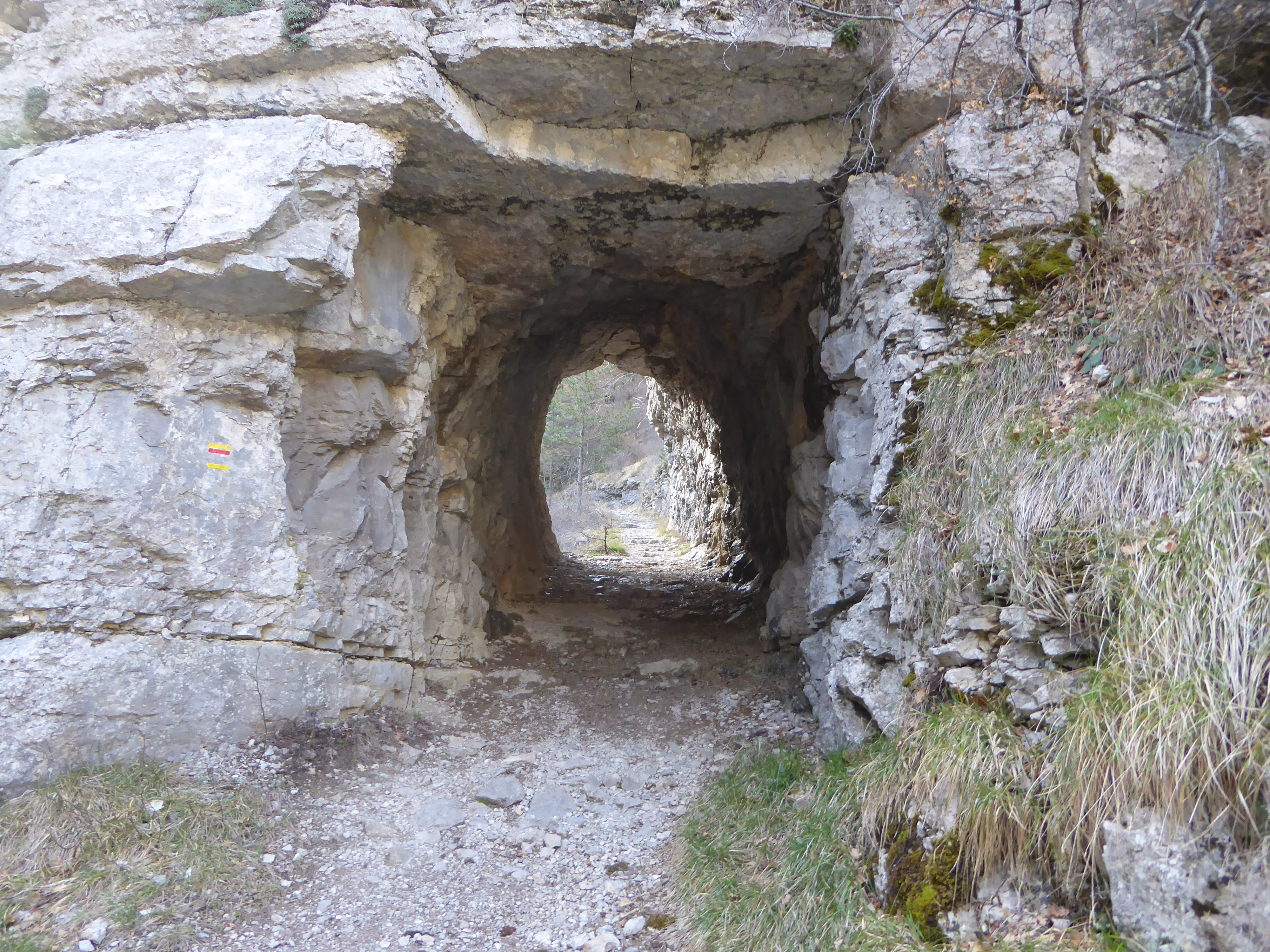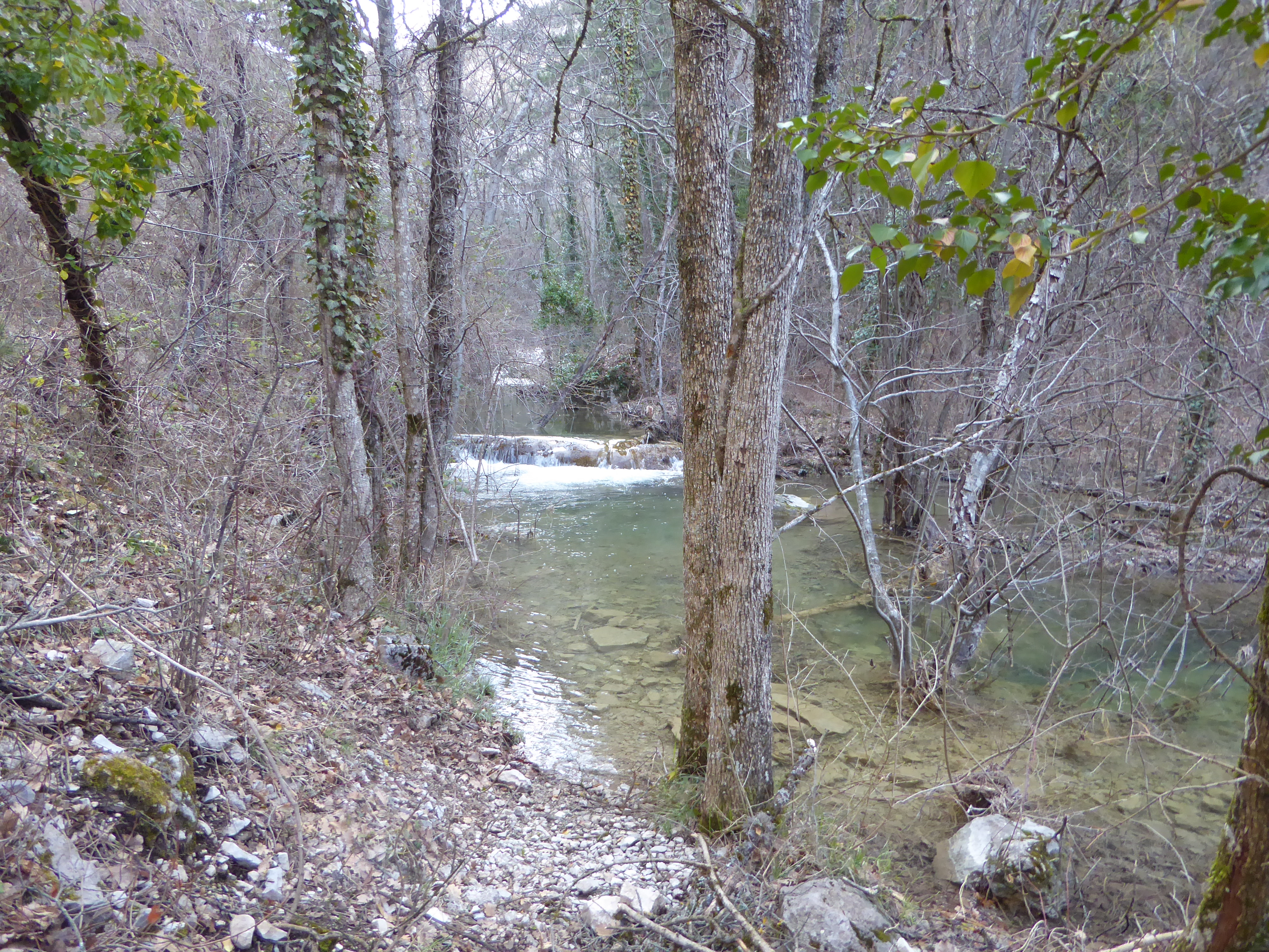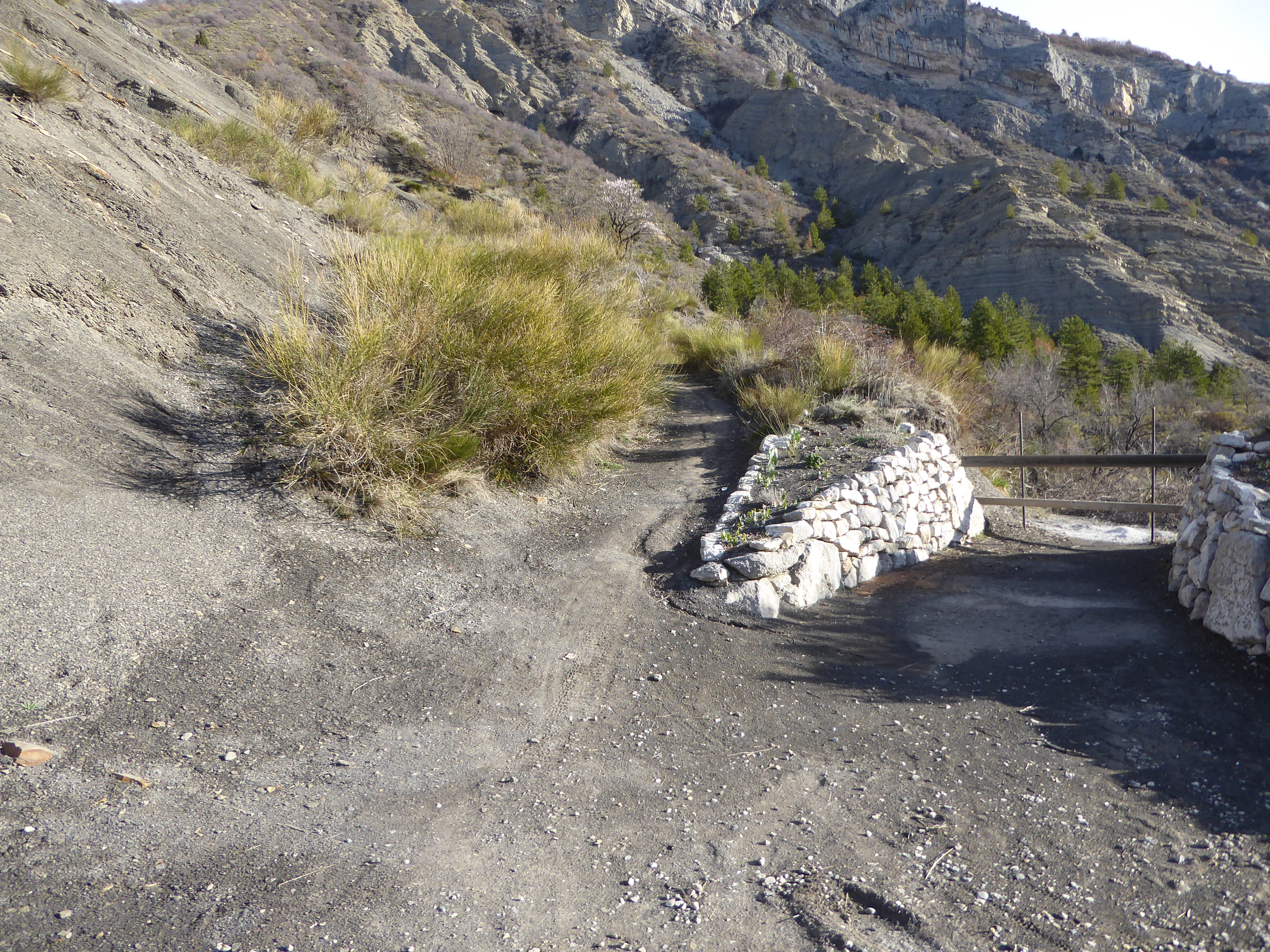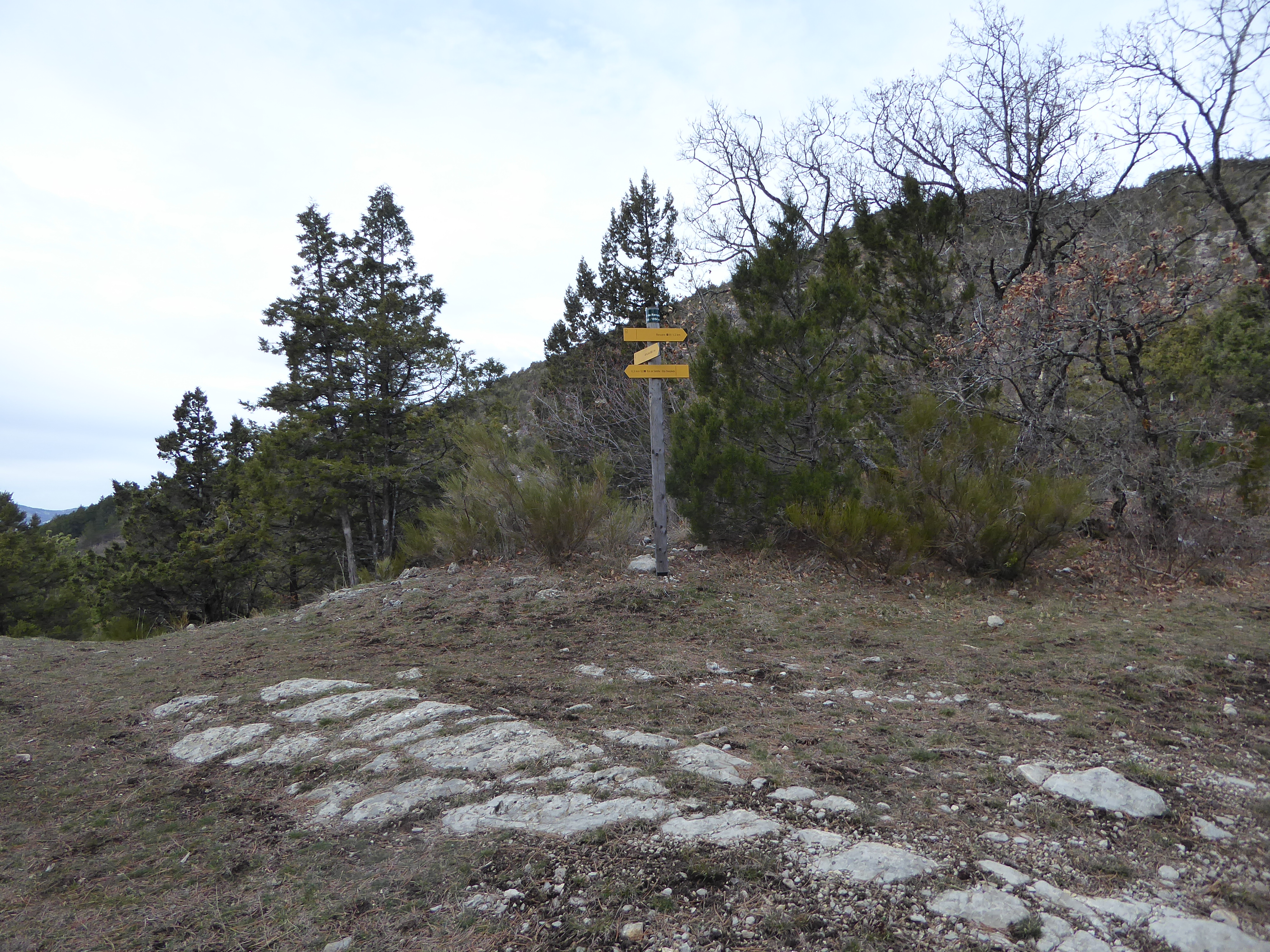 Départ Saint-Genis (710 m) : suivre la route qui part tout droit direction Gorges du Riou, balisé en jaune et en jaune et rouge