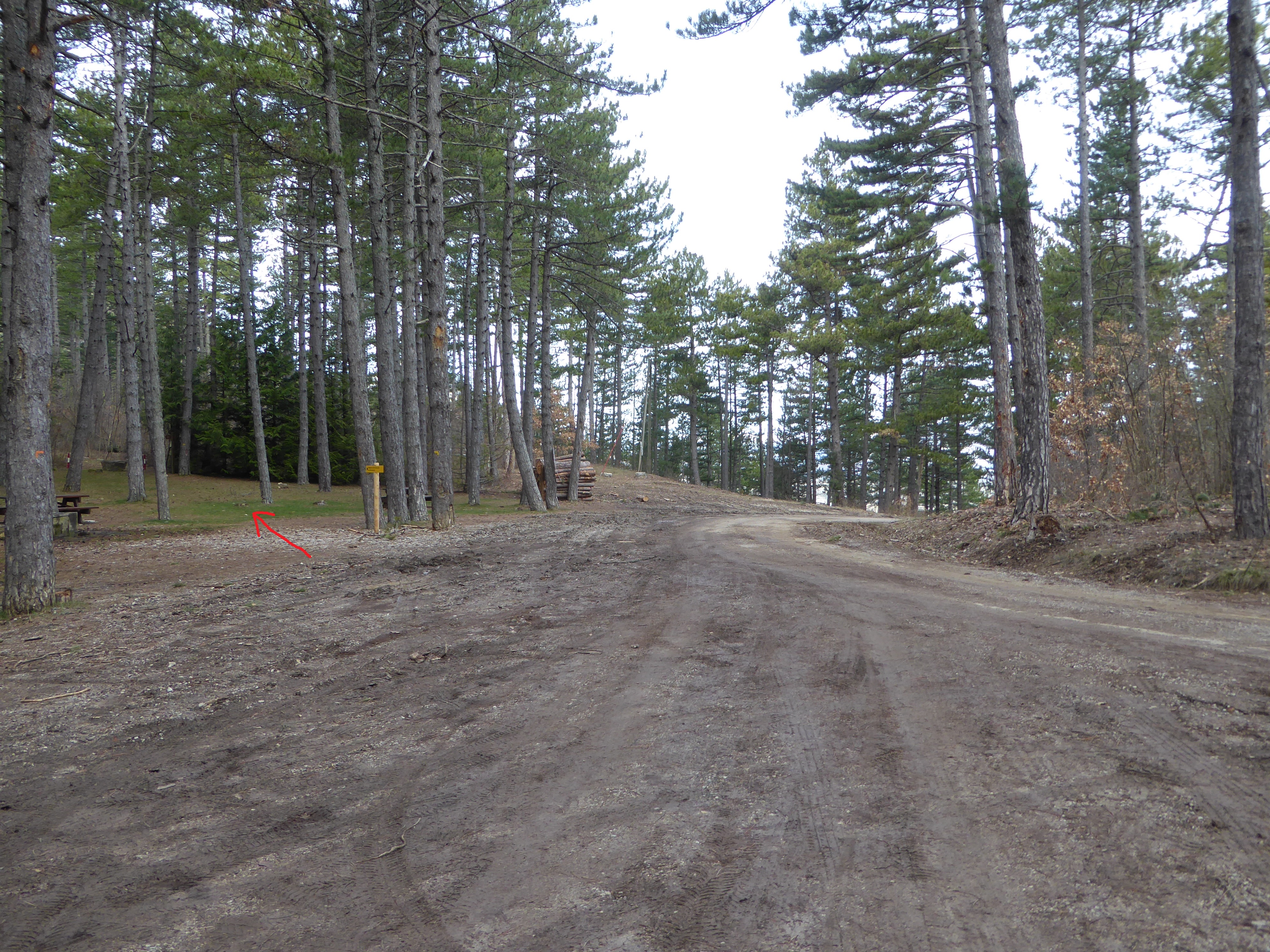 MF de Jubéo (889 m) : suivre la large piste partant légèrement sur la droite direction Saint-Genis, balisé en jaune et jaune et rouge