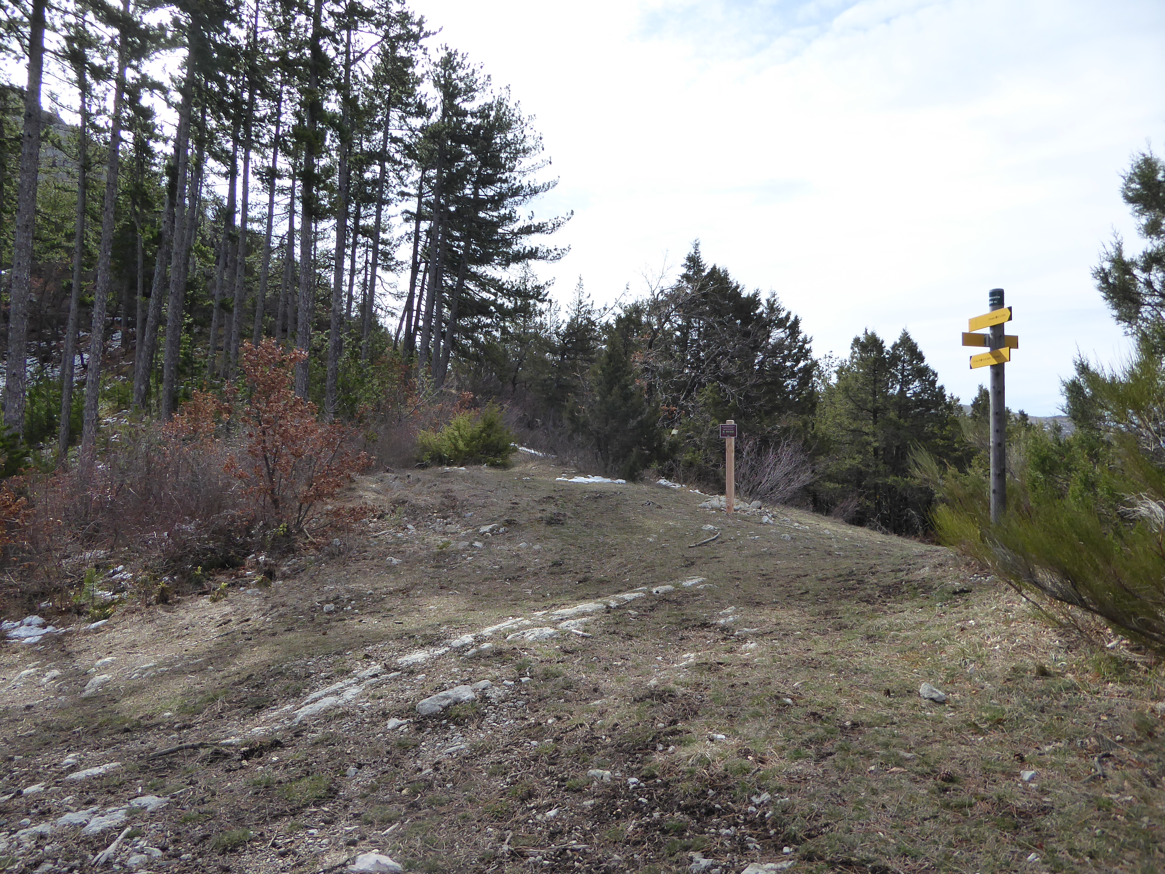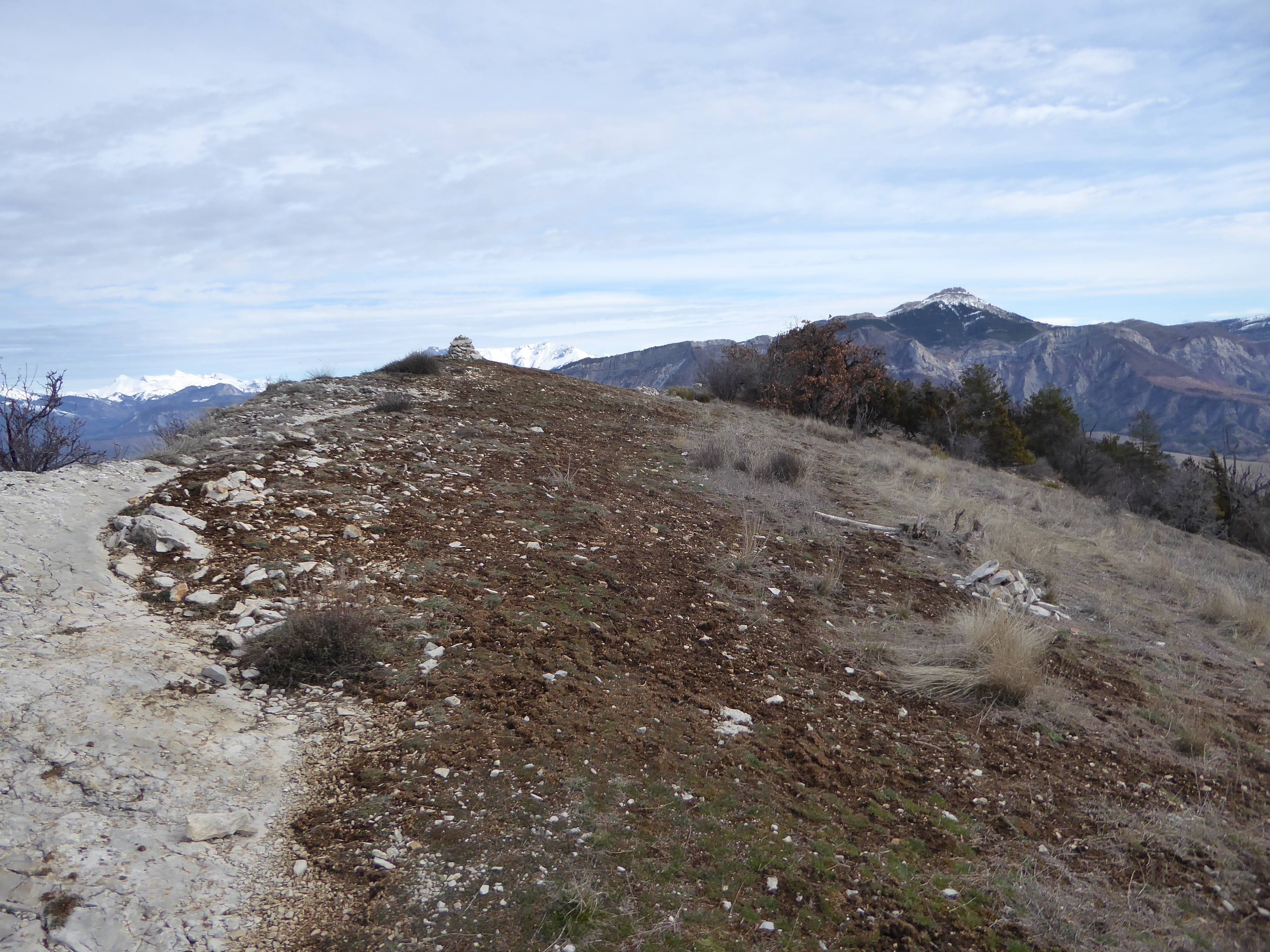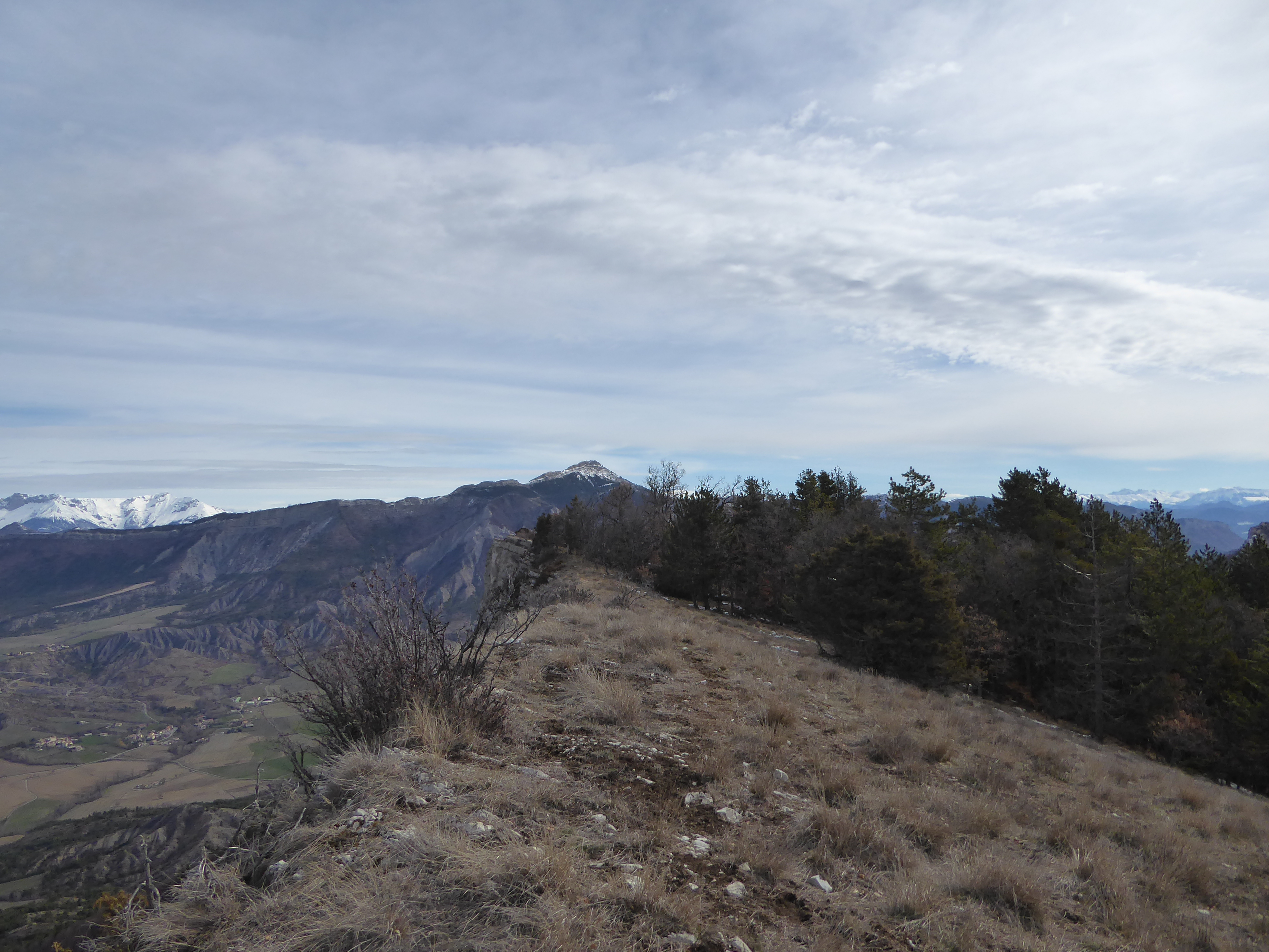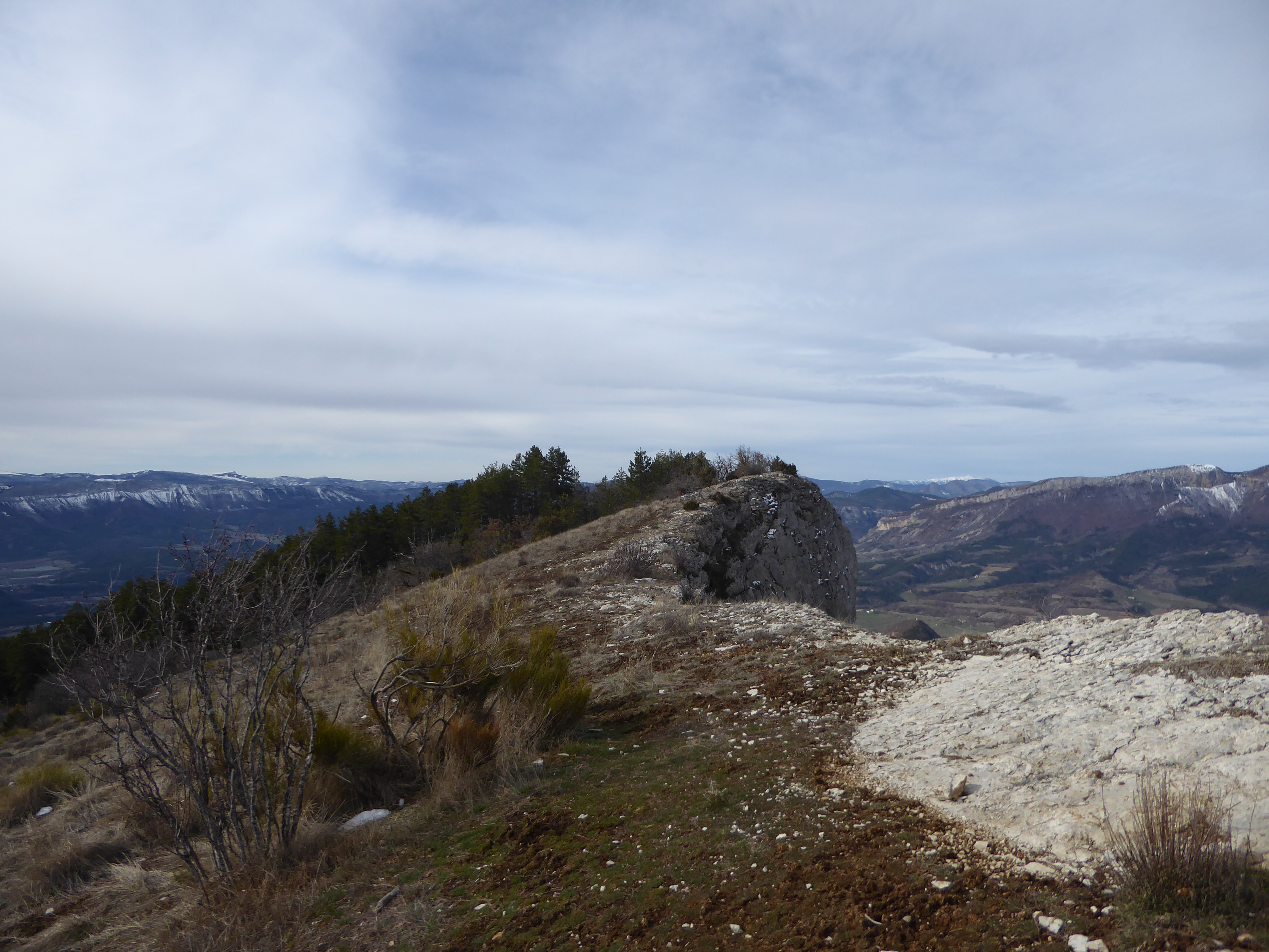 Arrivée au sommet de Revuaire (1299 m) : panorama étendu notamment sur la Vallée du Buëch et les sommets qui la bordent, sur le Dévoluy, les Préalpes de Digne et du Bas-Verdon, Lure, le Ventoux ...