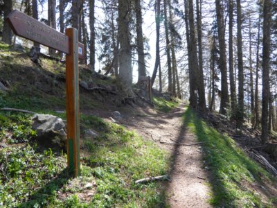 Croisement entre le chemin partant tout droit vers le Col de Trempa-Latz et celui montant vers le Mont Guillaume : continuer tout droit direction Col de Trempa-Latz