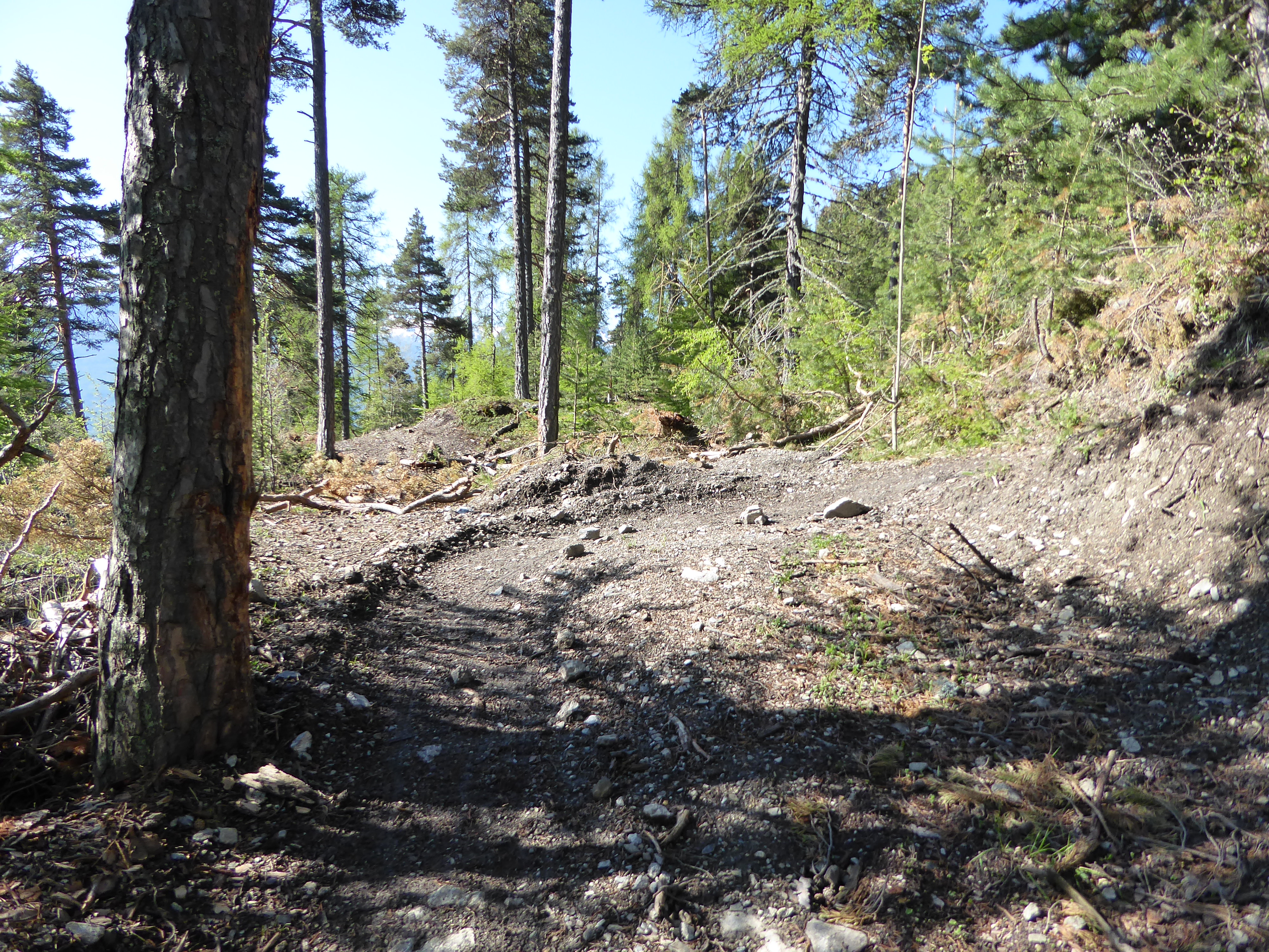 A ce croisement, quitter la piste forestière pour prendre le chemin sur la gauche direction Embrun