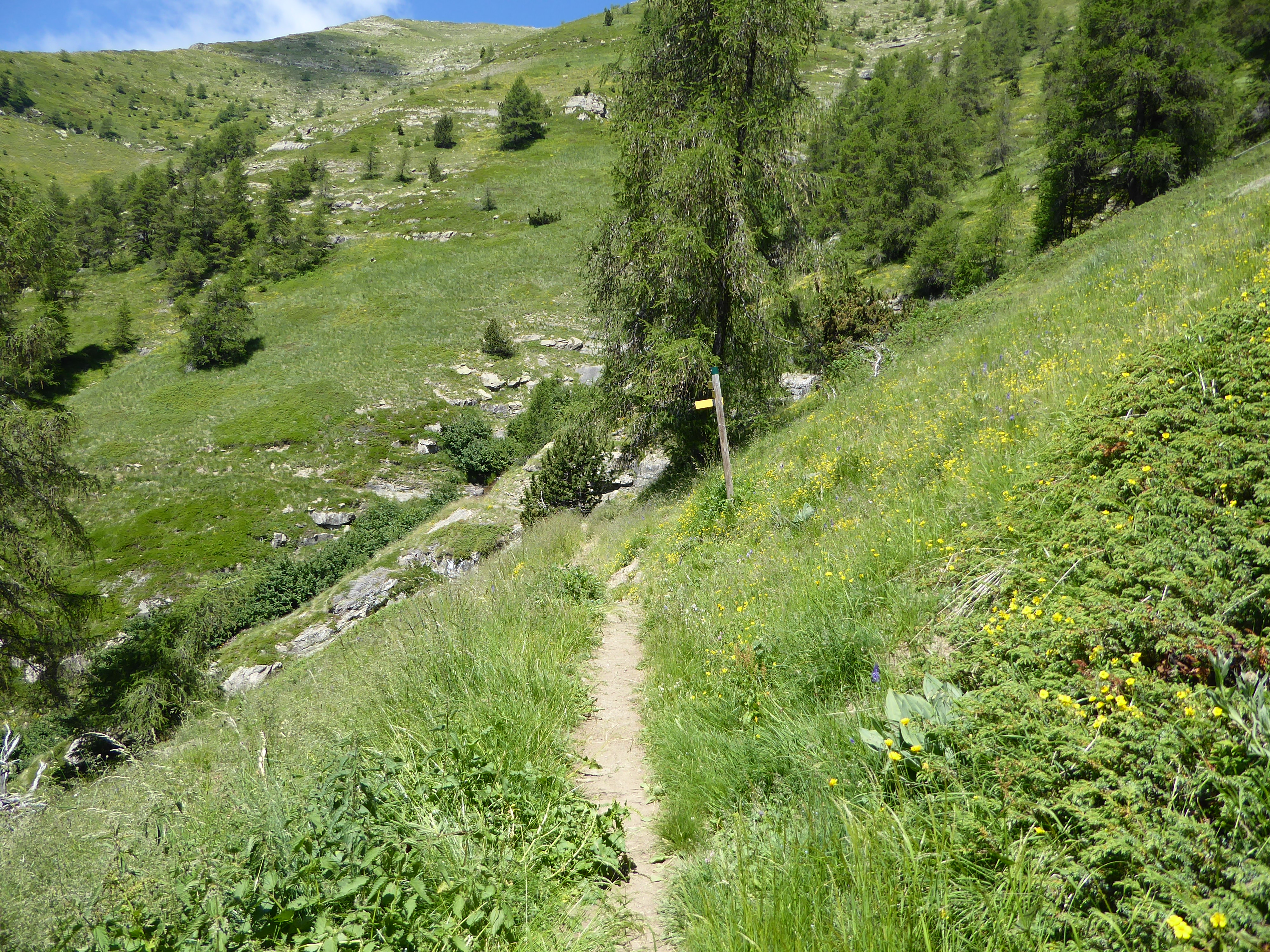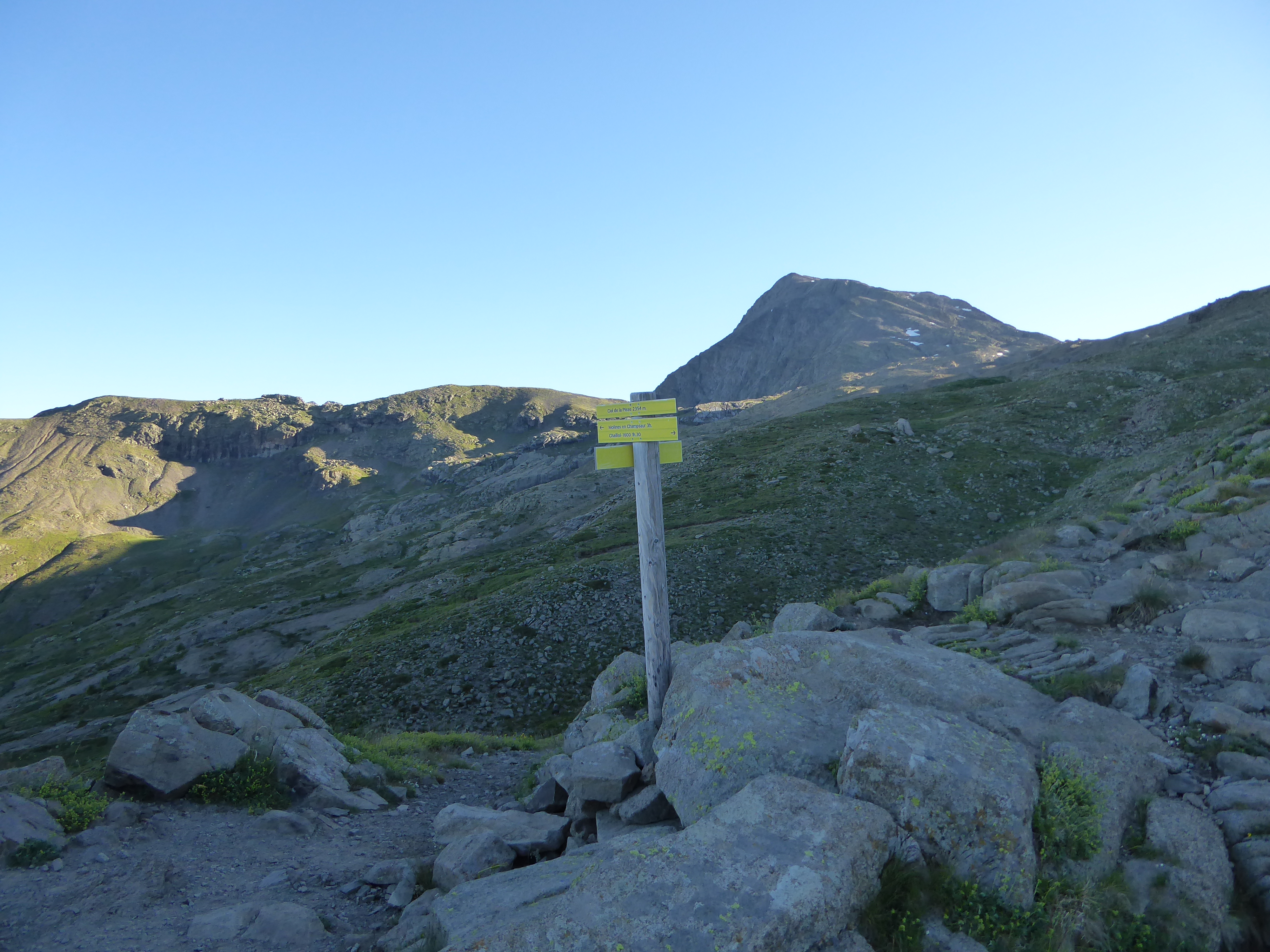 A ce croisement (2177 m), tourner à gauche direction Col de la Pisse, balisé en jaune