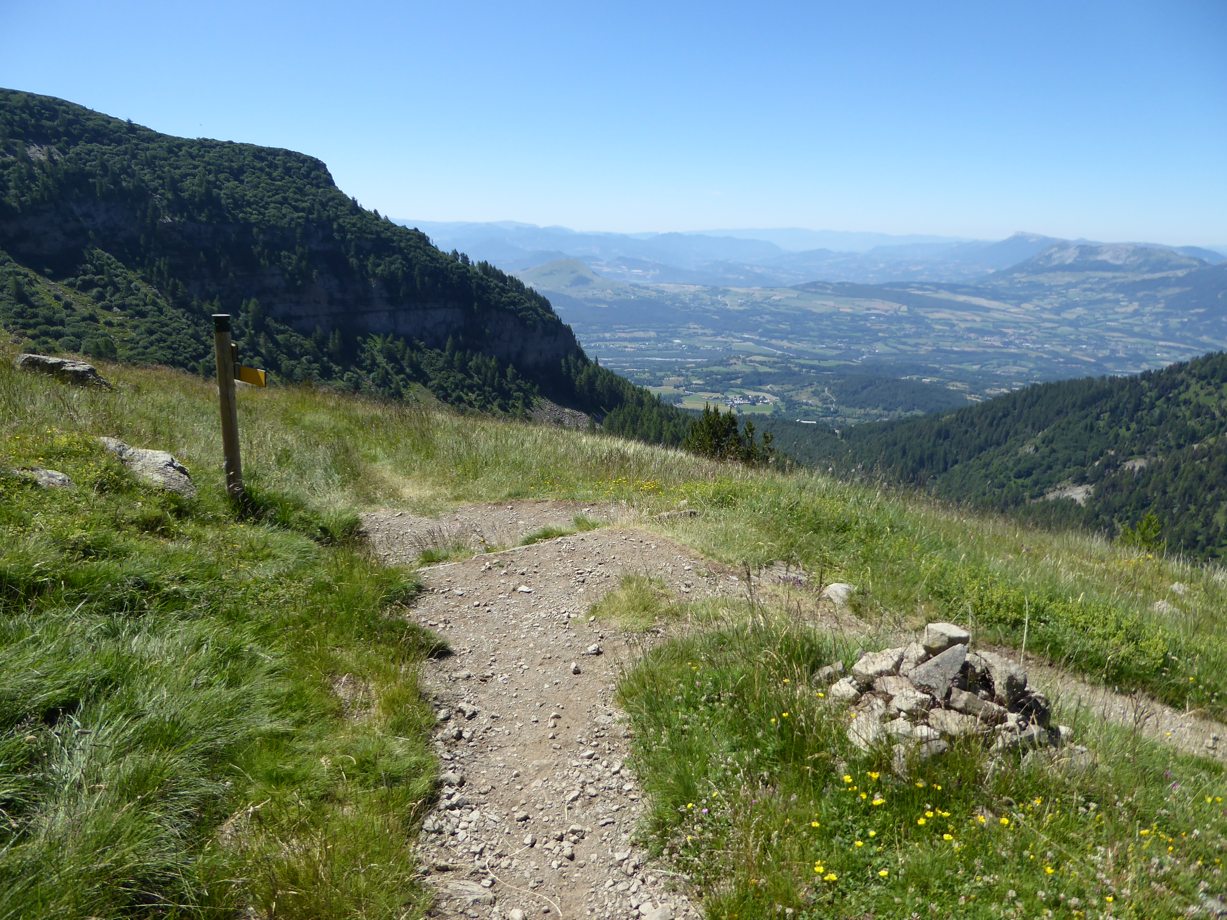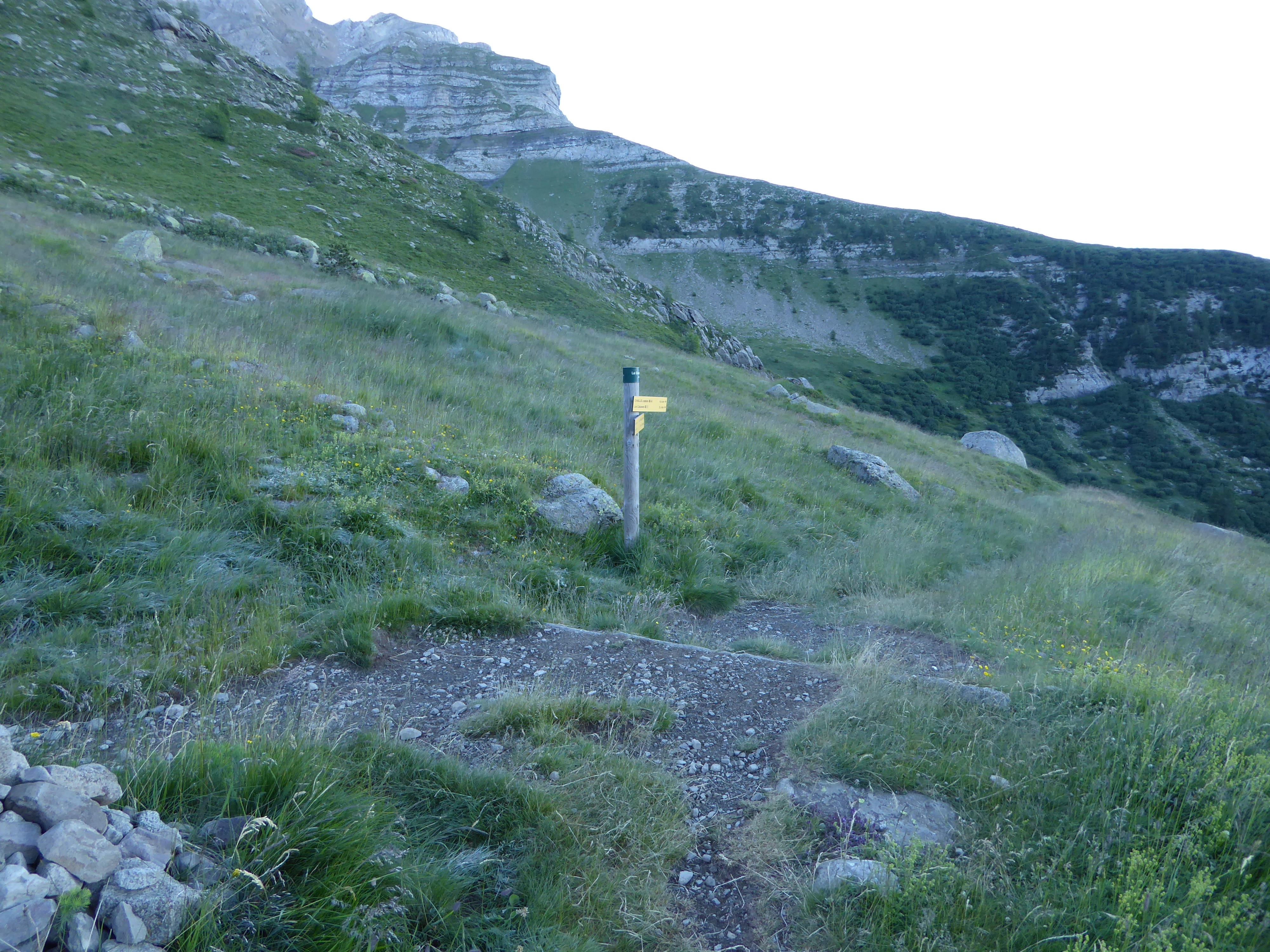 Col de la Pisse (2354 m) : descendre sur la droite direction Chaillol Station, balisé en jaune