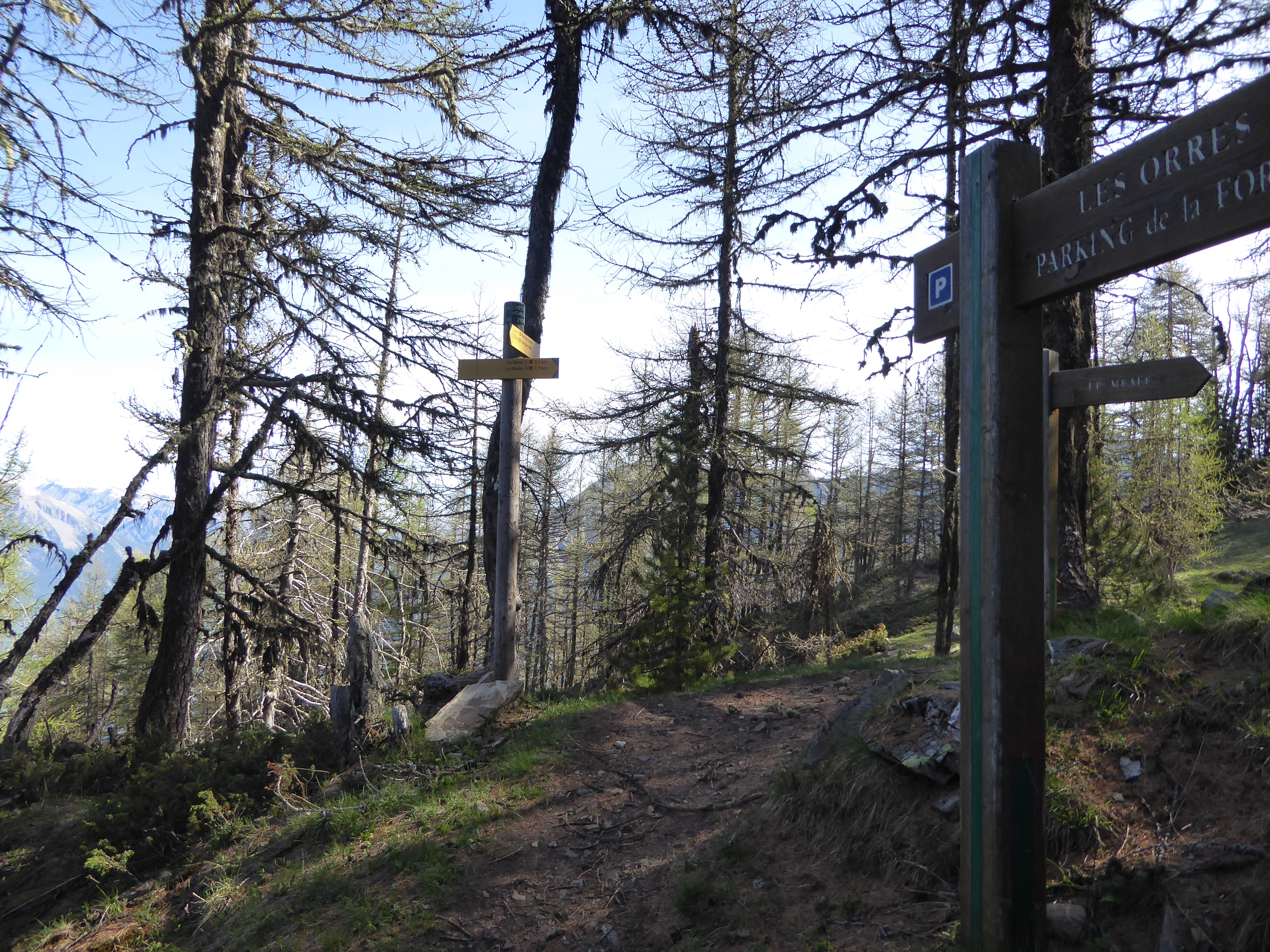 Parking de la forêt (1667 m) : tourner à droite et passer de l'autre côté de la barrière en bois direction le Méale