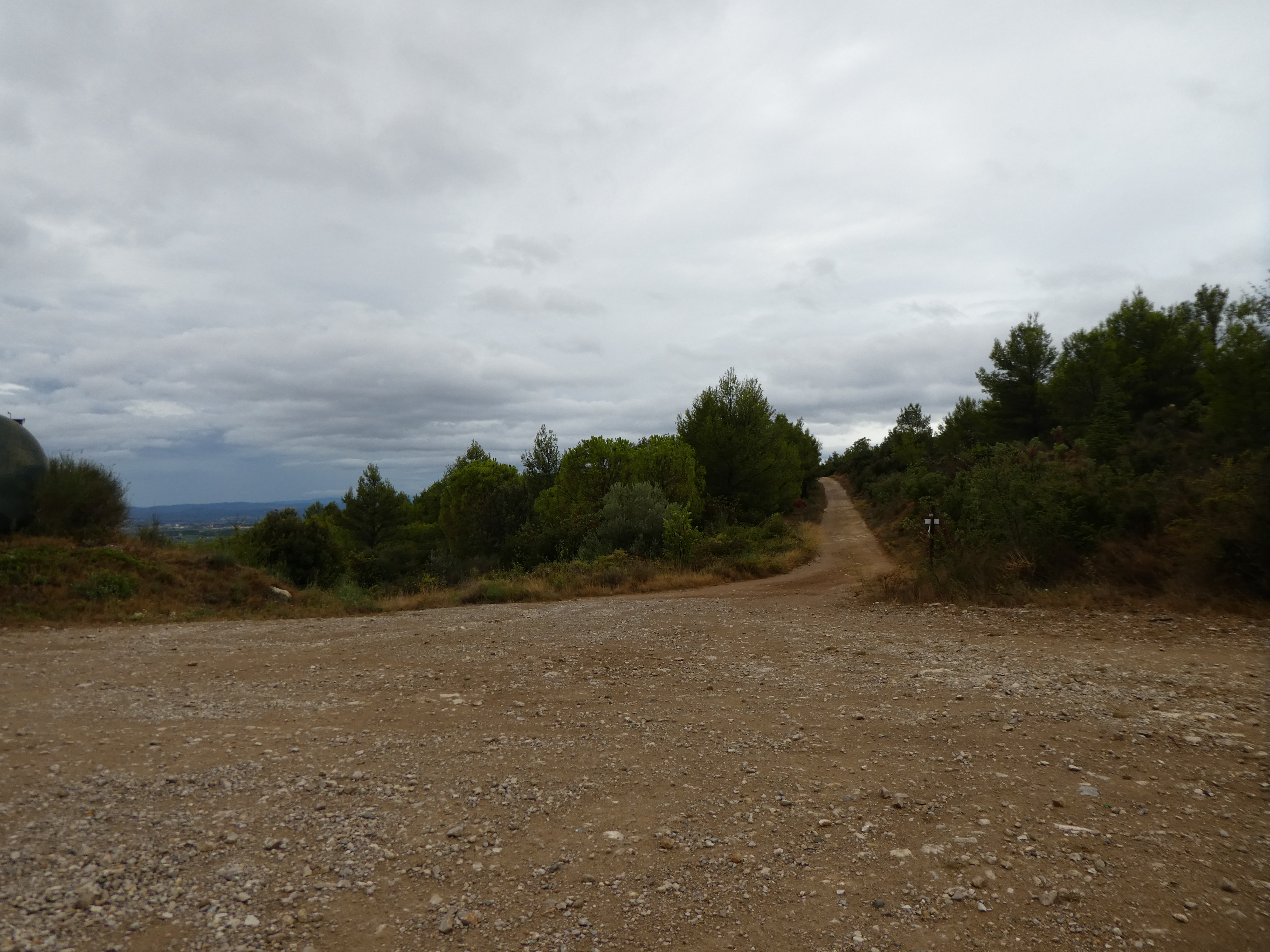 A ce croisement situé près d'une citerne (50 mètres après le lieu-dit "Saint-Hilaire - Mont Caramel") (164 m), suivre la piste partant tout droit direction Argeliers, balisé sporadiquement en jaune dorénavant