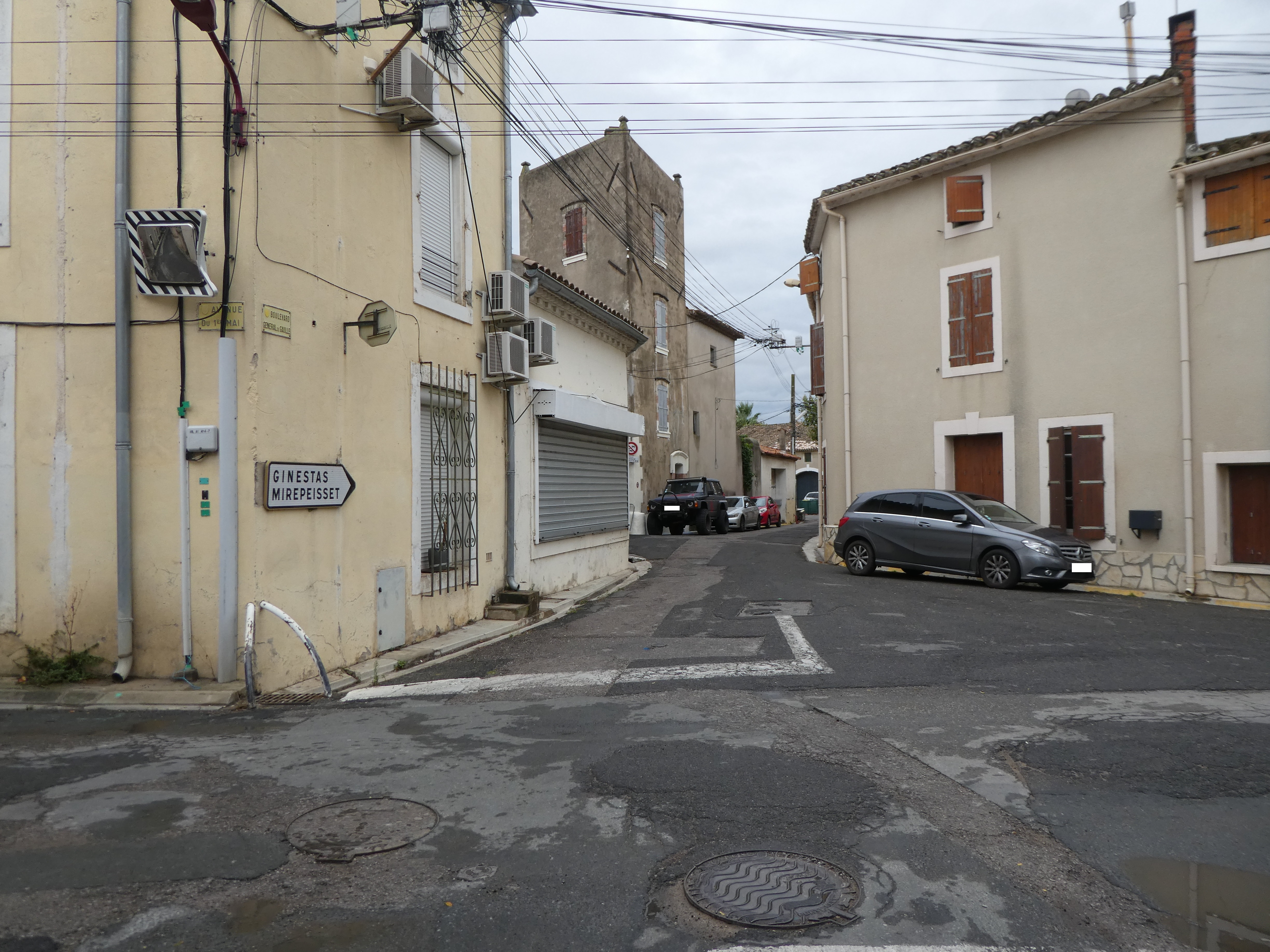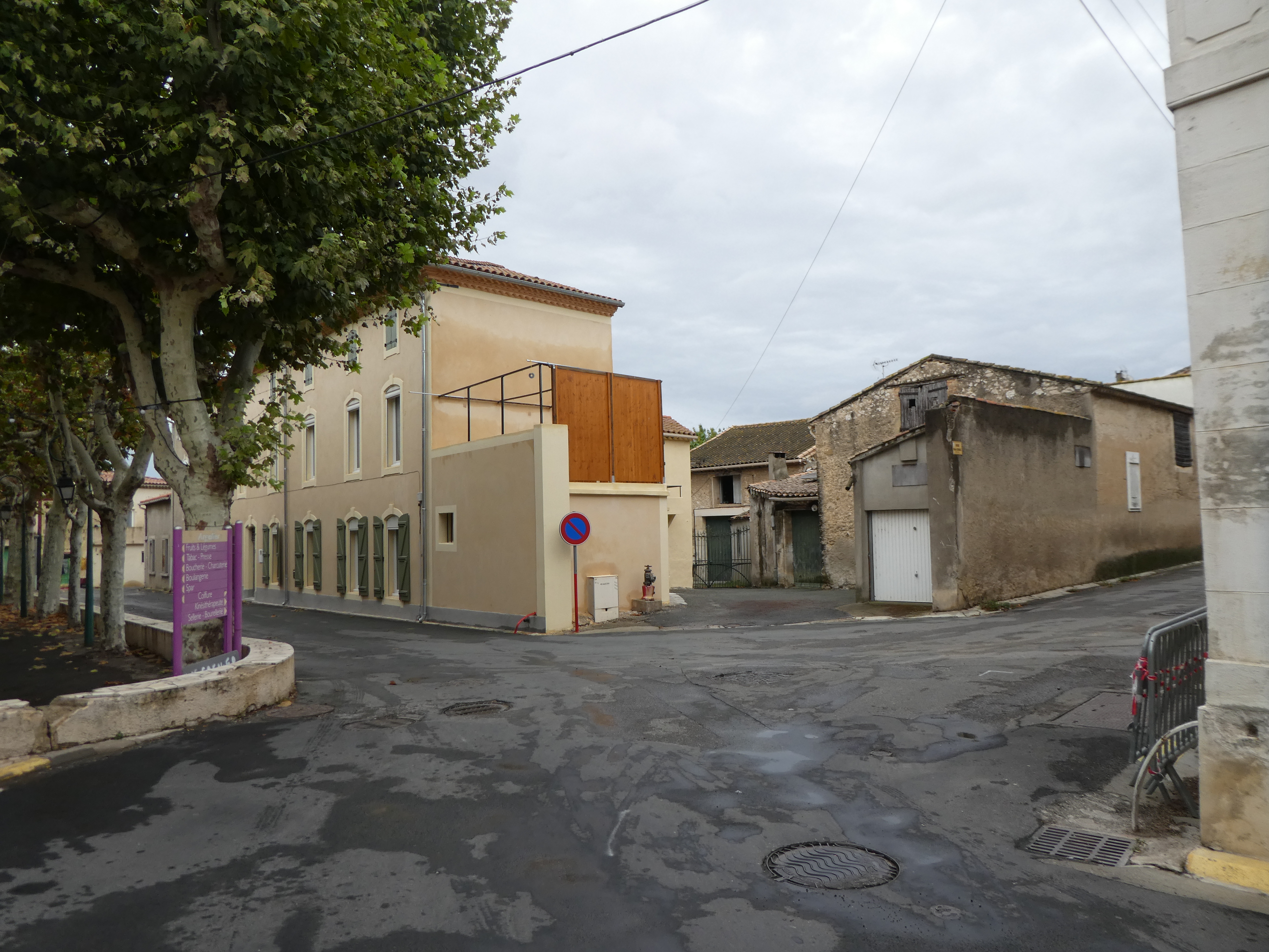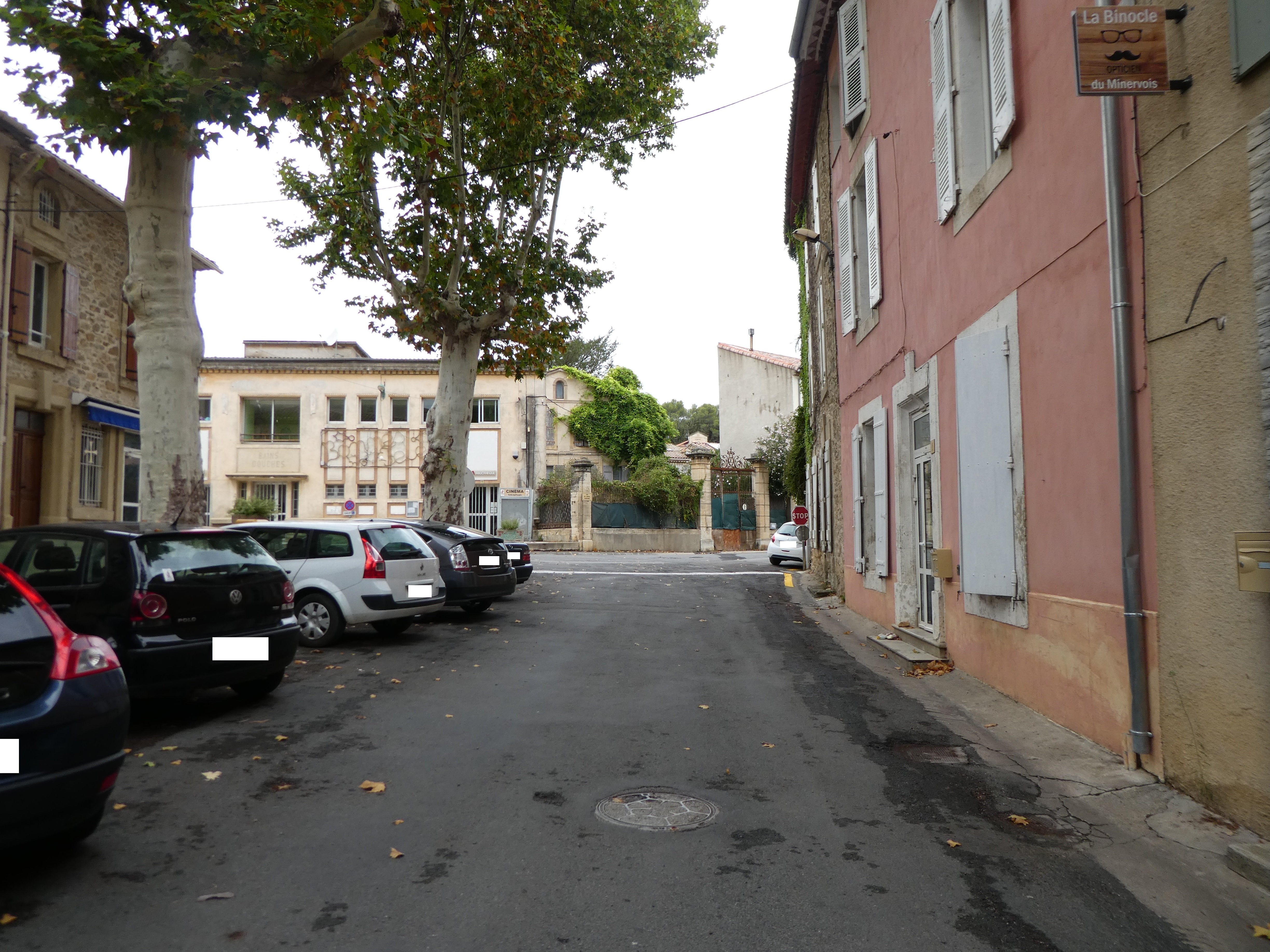 A ce croisement situé au centre de Bize-Minervois (150 mètres après le précédent), suivre la ruelle partant sur la gauche vers la mairie direction Bize-Minervois - Mairie, balisé en rouge et blanc dorénavant