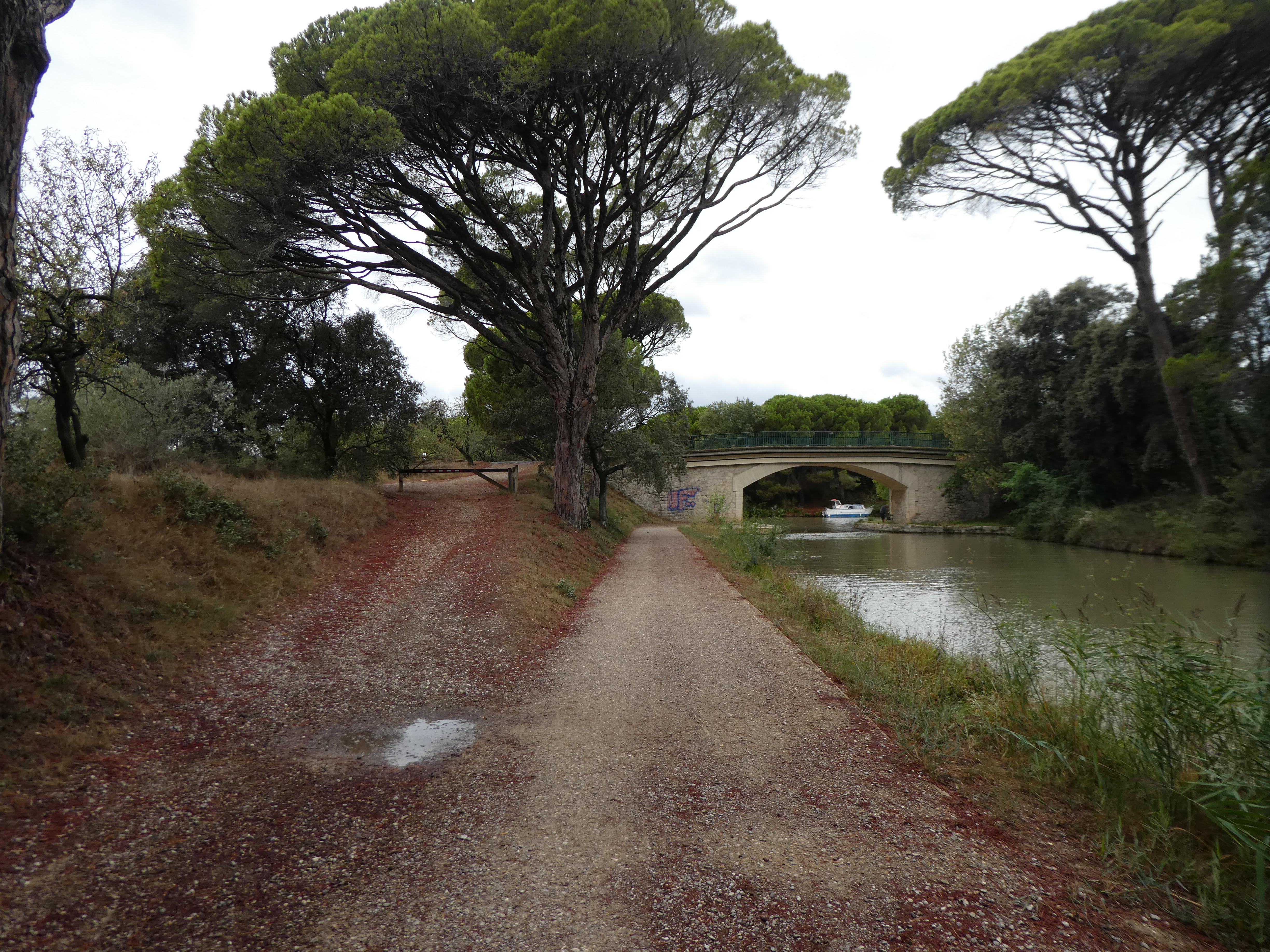 Pont de la Province (37 m) : traverser le pont sur la droite puis suivre le sentier longeant la berge du Canal du Midi sur la droite direction Pont-Canal de la Cesse