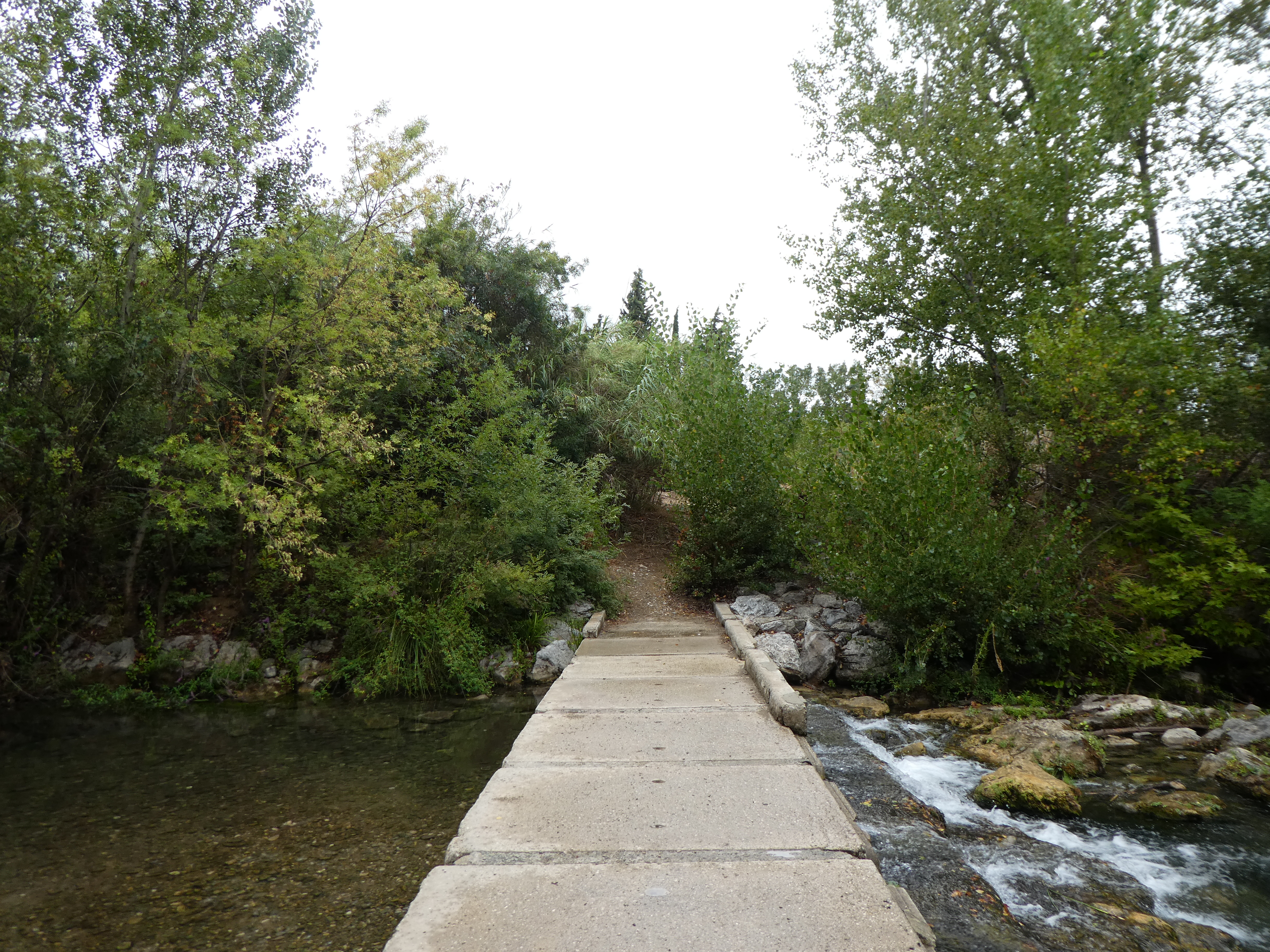 A ce croisement situé à proximité de la Cesse (300 mètres après le précédent mentionné), descendre les escaliers puis suivre le chemin partant sur la droite vers le pont submersible de Bize-Minervois sur la Cesse direction Bize-Minervois, balisé en jaune