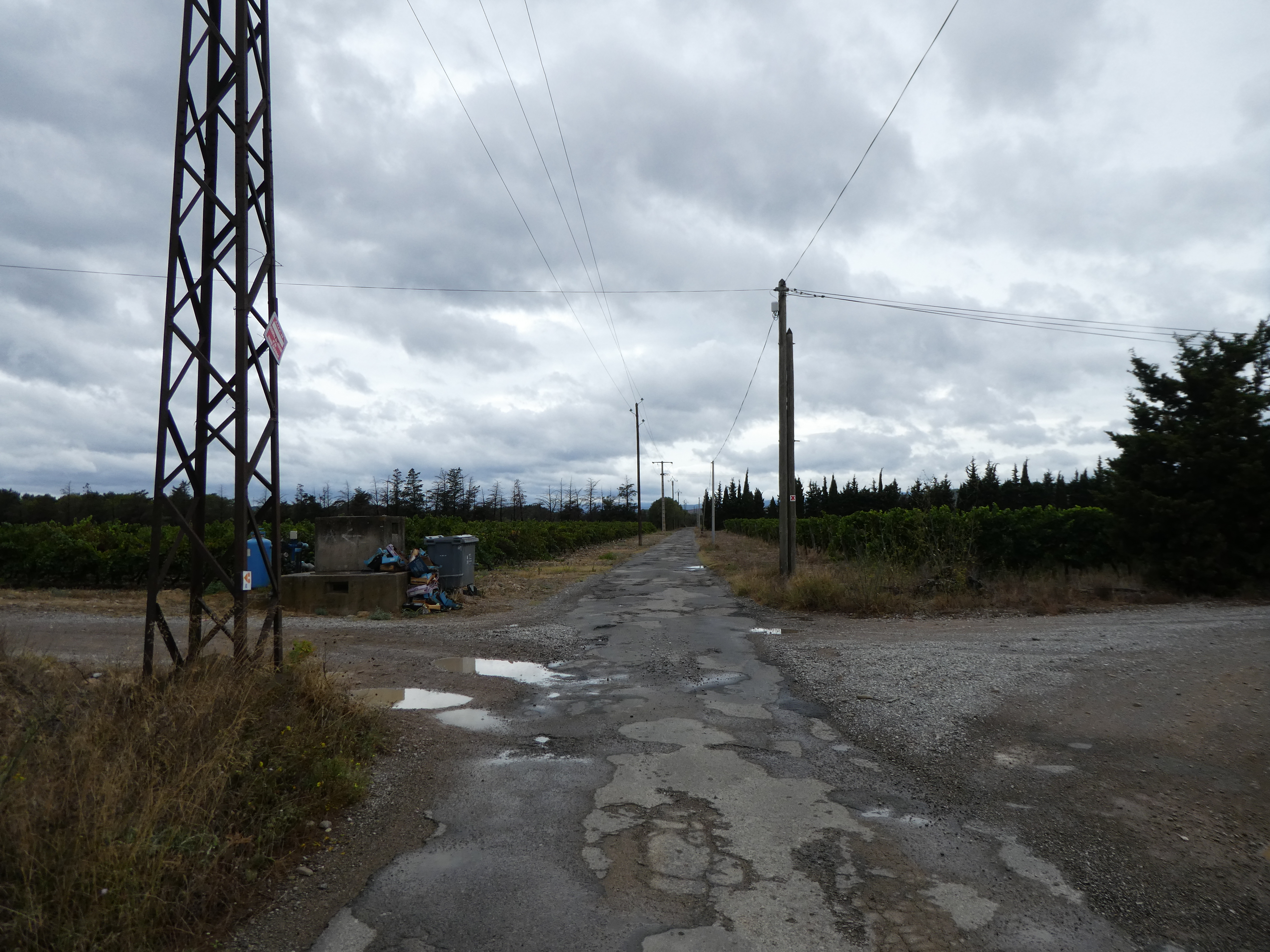 A ce croisement avec l'itinéraire venant du pont submersible de la Cesse (150 mètres après le départ), suivre la ruelle partant tout droit direction Argeliers, balisé en rouge et blanc, et en jaune dorénavant (la ruelle de droite sera empruntée au retour)