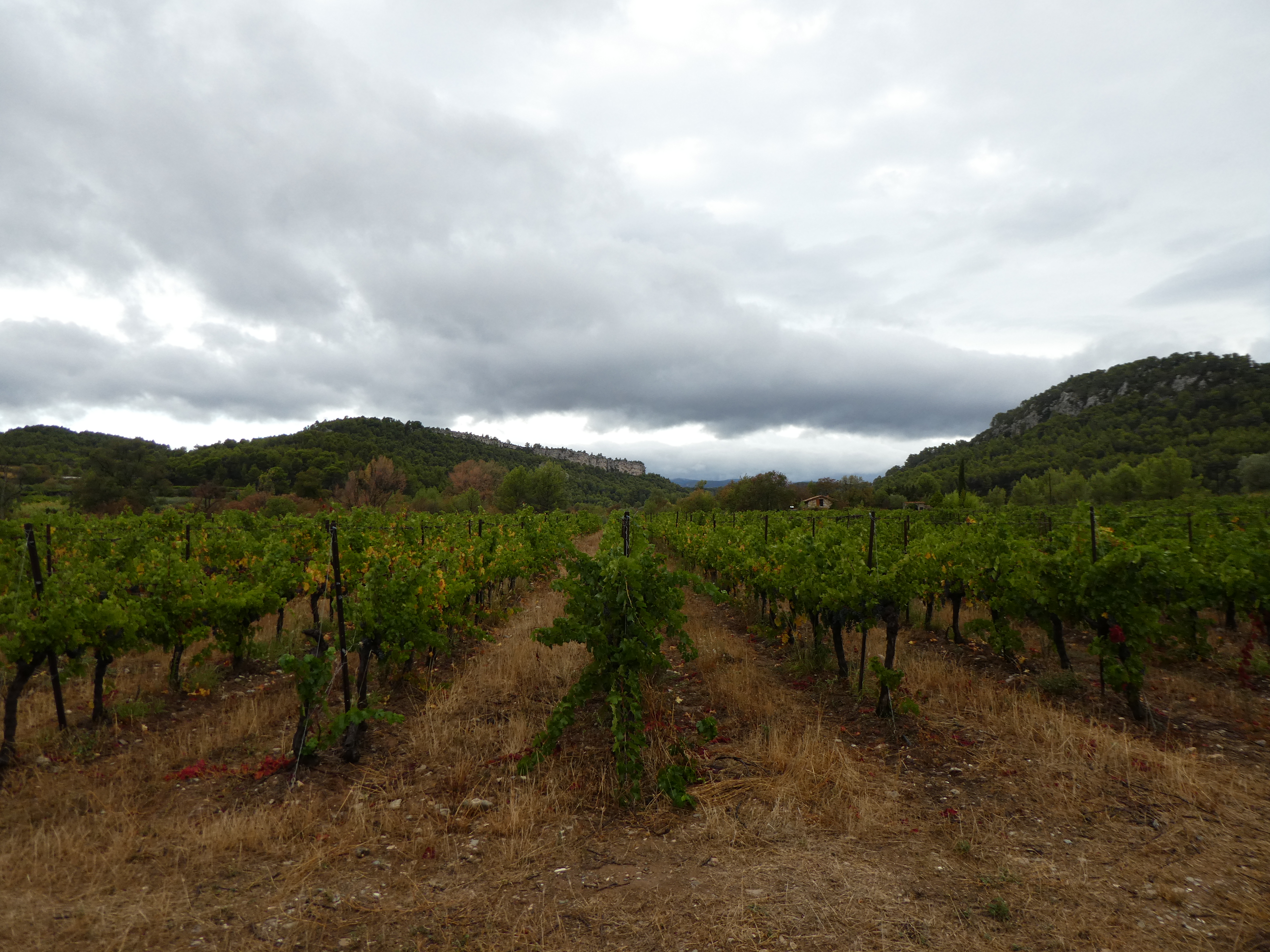 A ce croisement avec la piste longeant la propriété de Sainte-Lucie (50 mètres après le précédent), suivre cette dernière sur la gauche direction Bize-Minervois