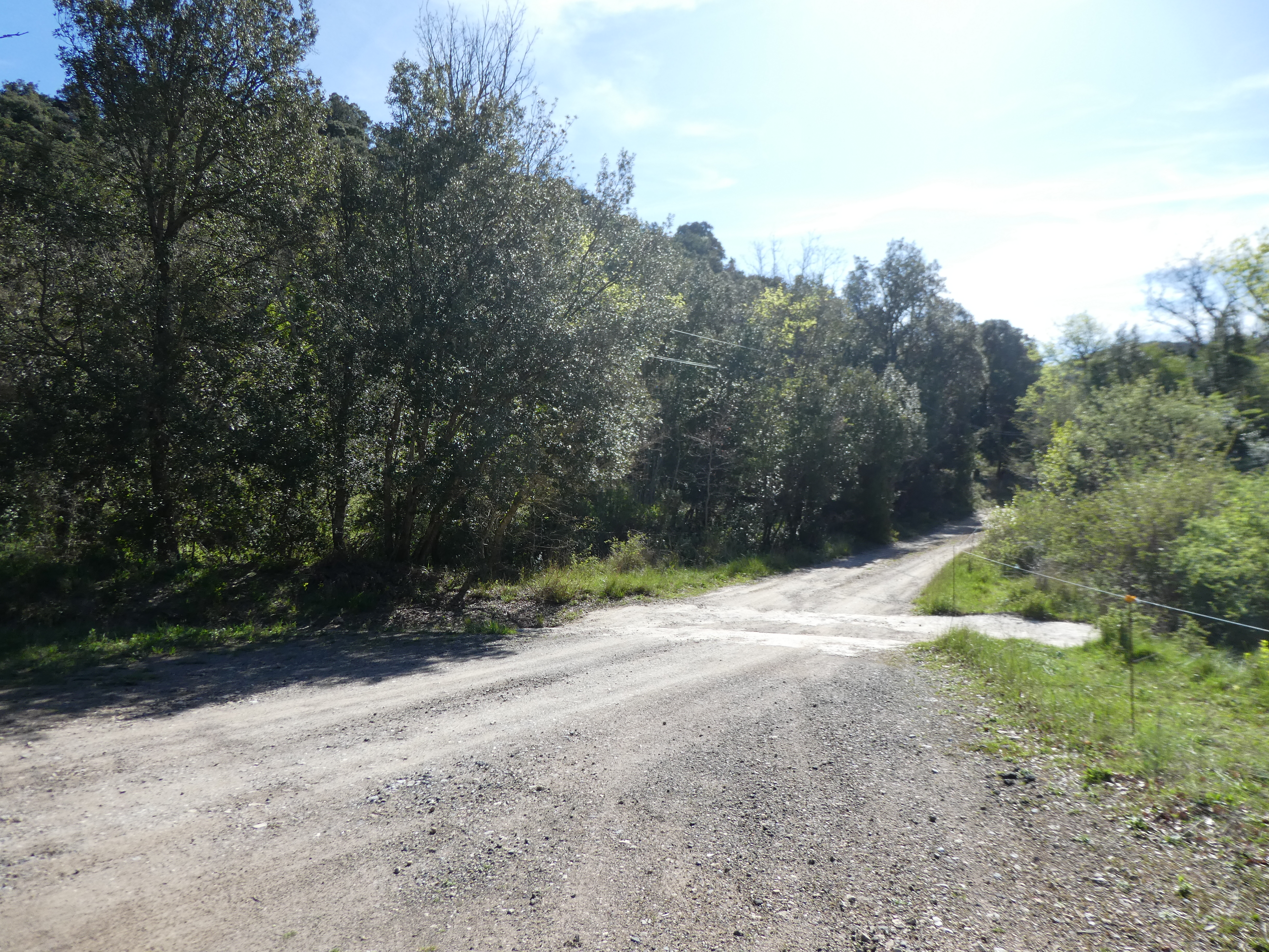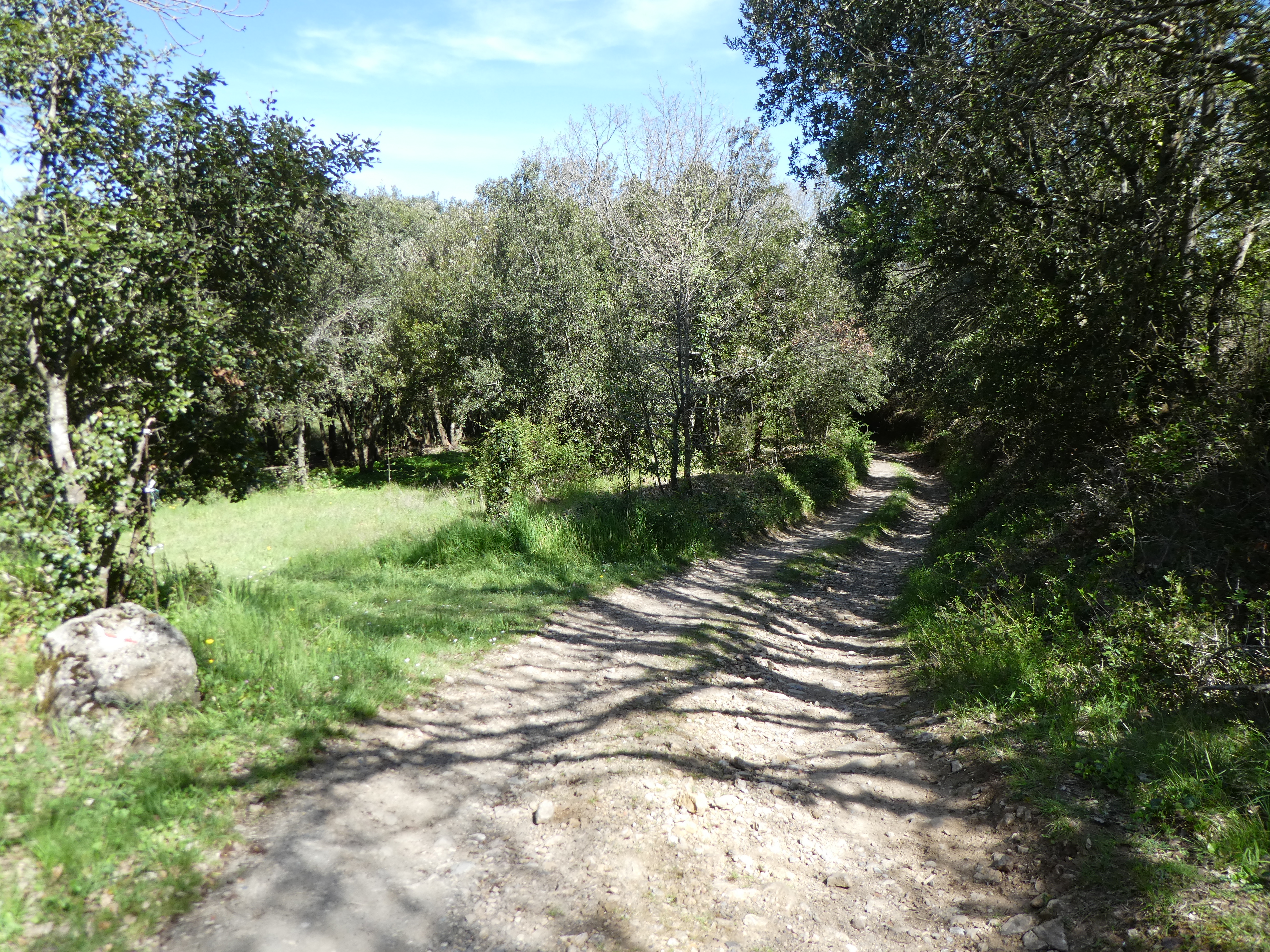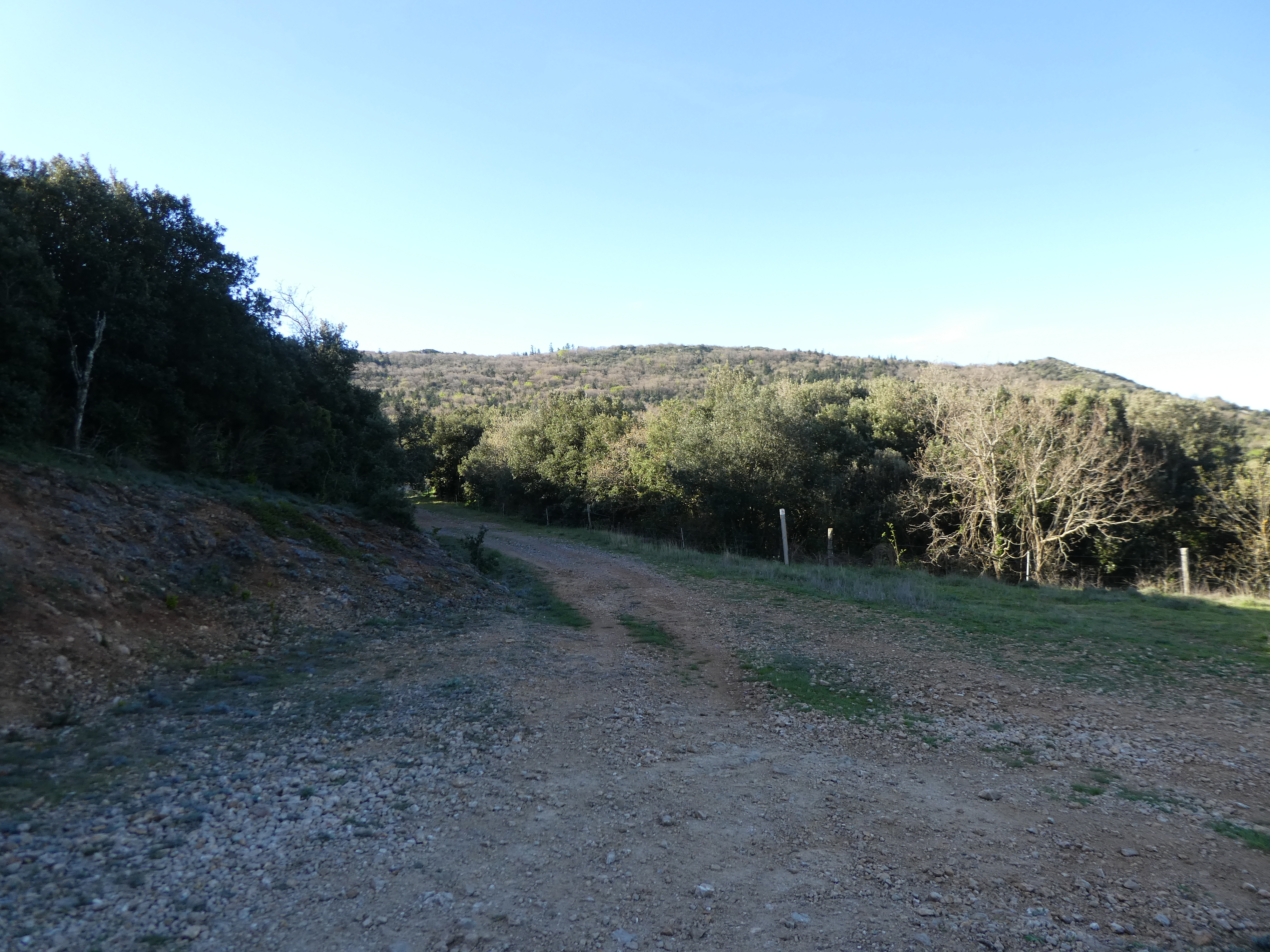 A ce croisement où l'itinéraire balisé en jaune part sur la droite (1000 mètres après la précédente intersection) (522 m), suivre le chemin partant tout droit direction Col du Souleilla, aucun balisage dorénavant