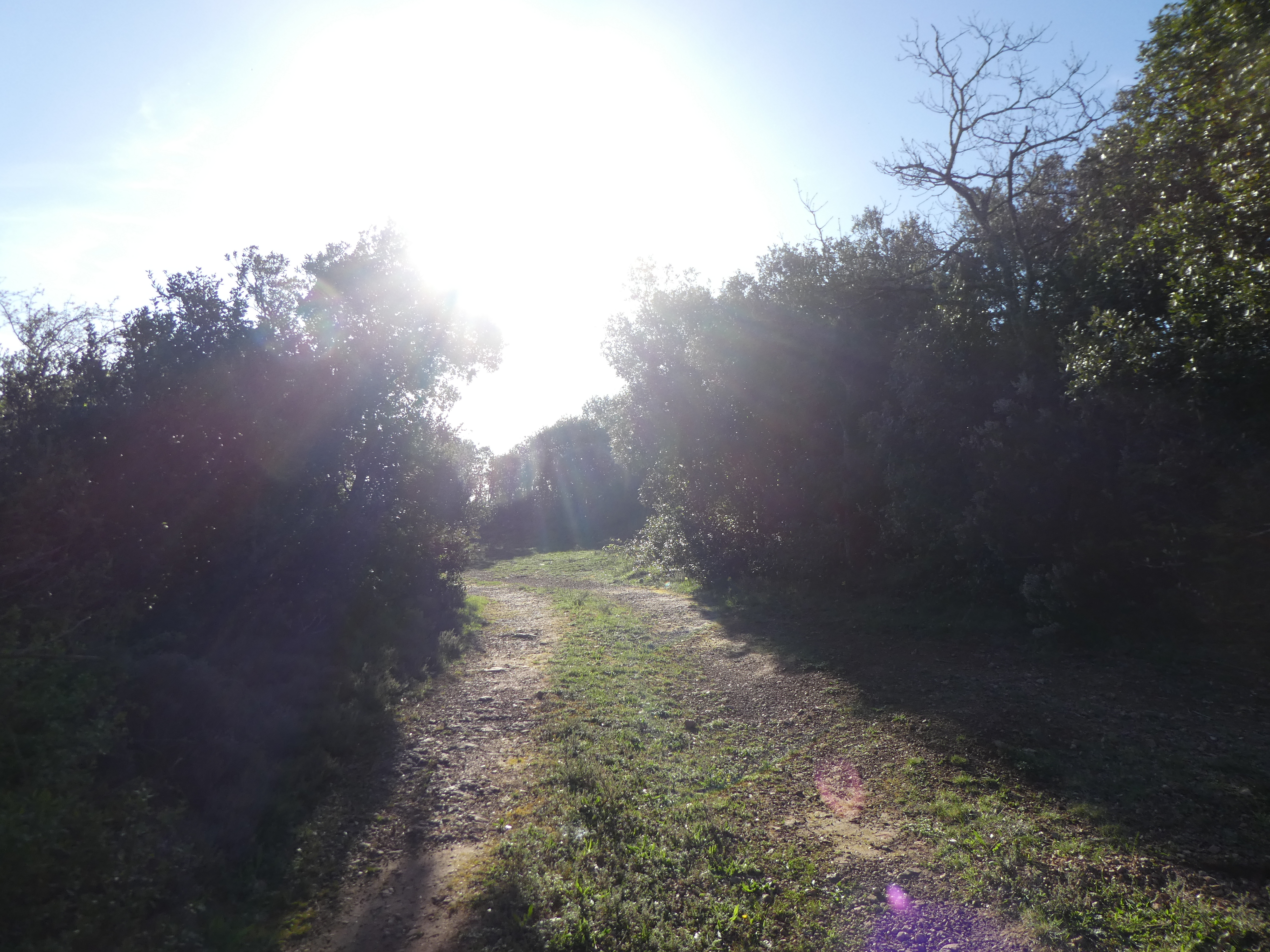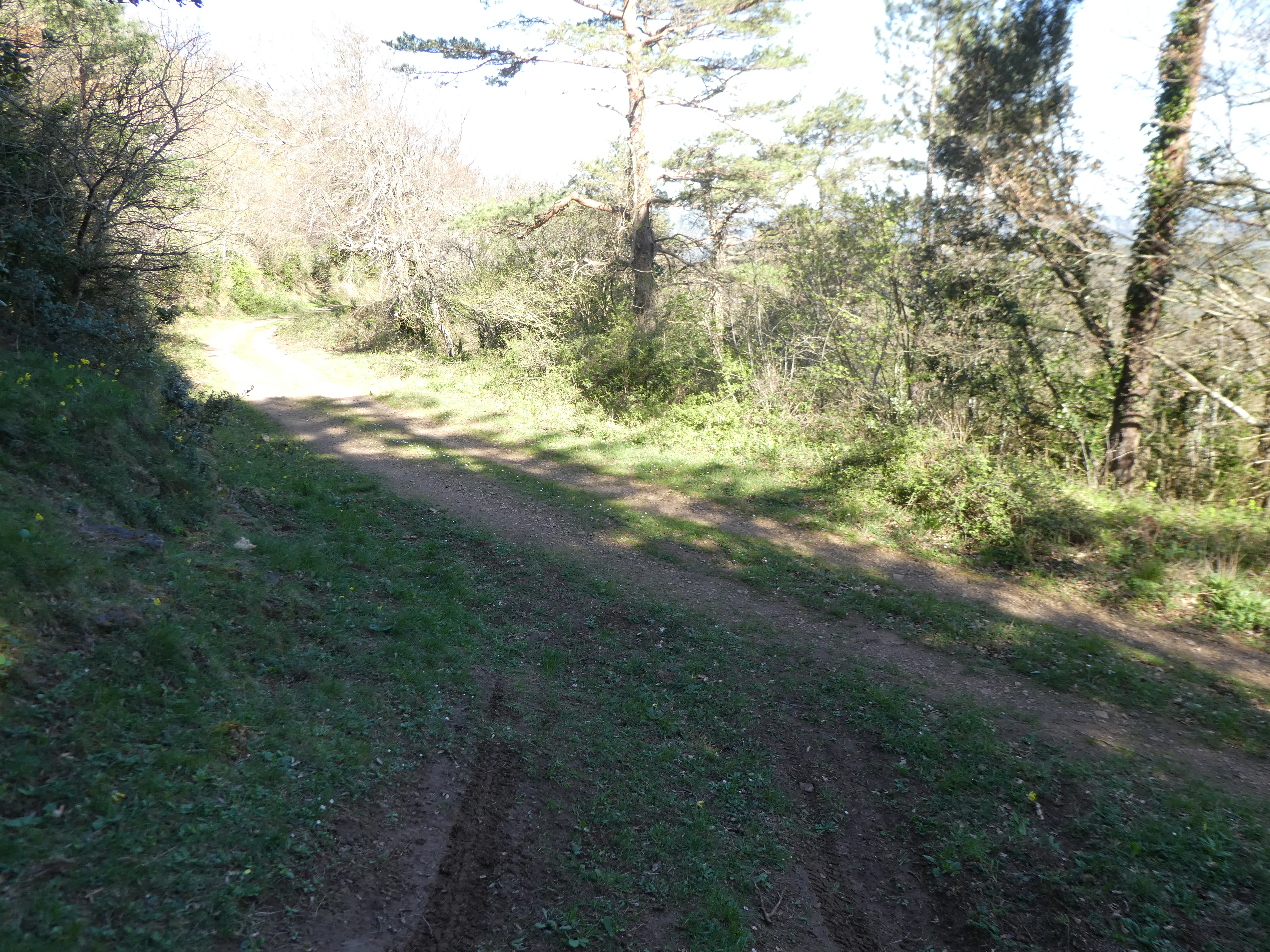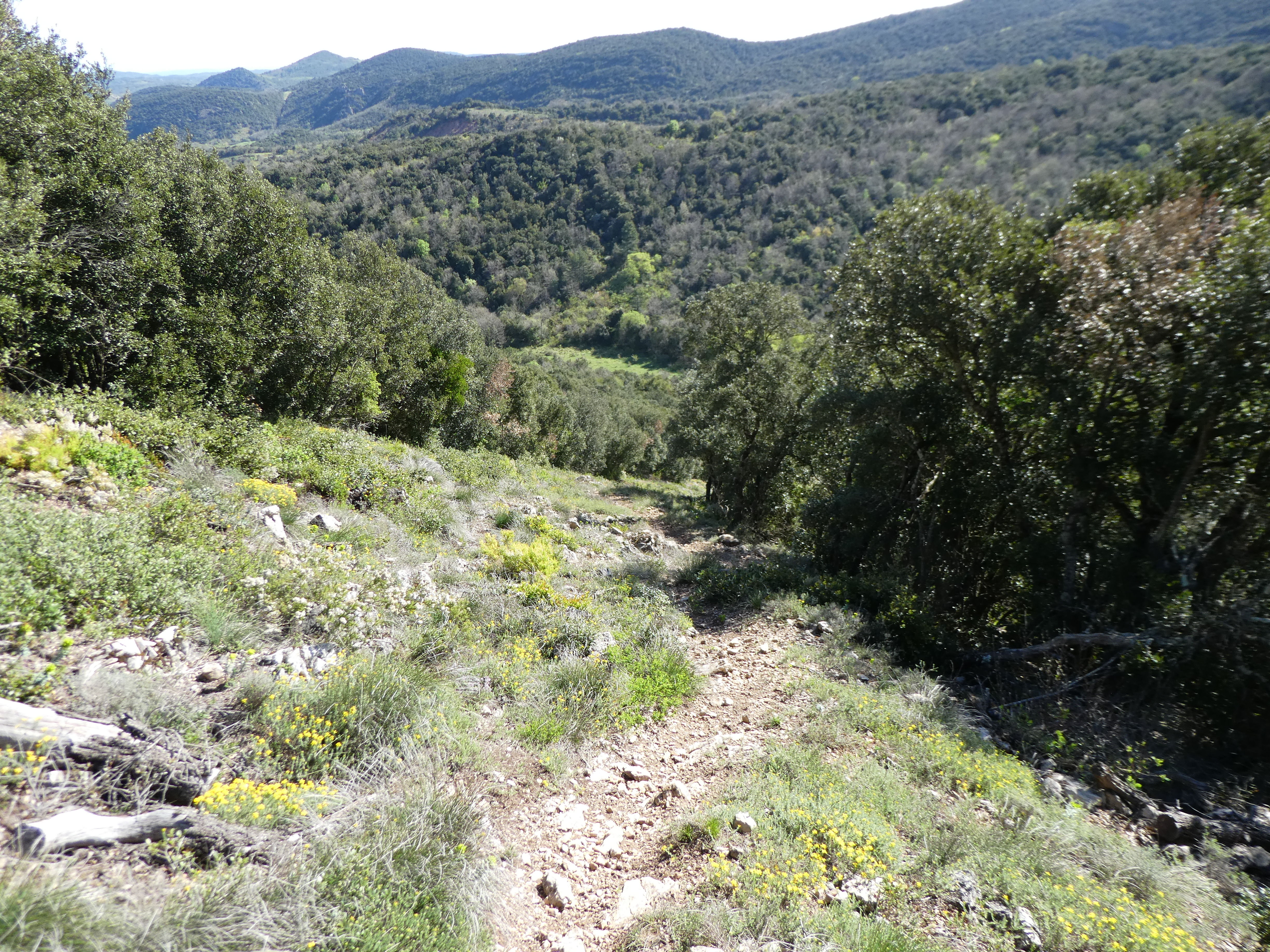 A ce croisement où l'itinéraire balisé en jaune part sur la droite (1000 mètres après la précédente intersection) (522 m), suivre le chemin partant tout droit direction Col du Souleilla, aucun balisage dorénavant