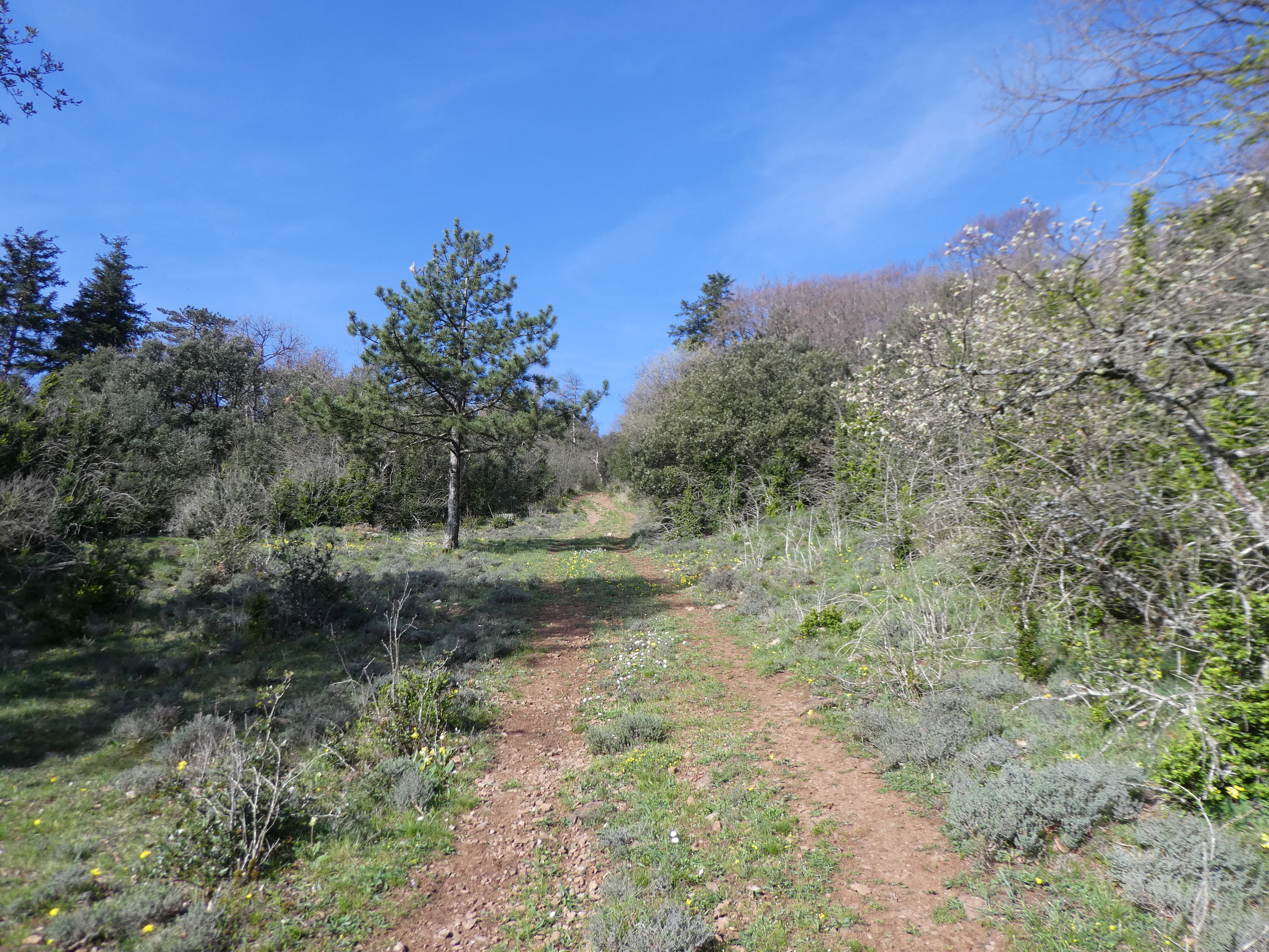 A ce croisement avec le sentier du Serre Mijane (25 mètres après le précédent), suivre ce dernier partant sur la gauche direction Mouthoumet, aucun balisage dorénavant
