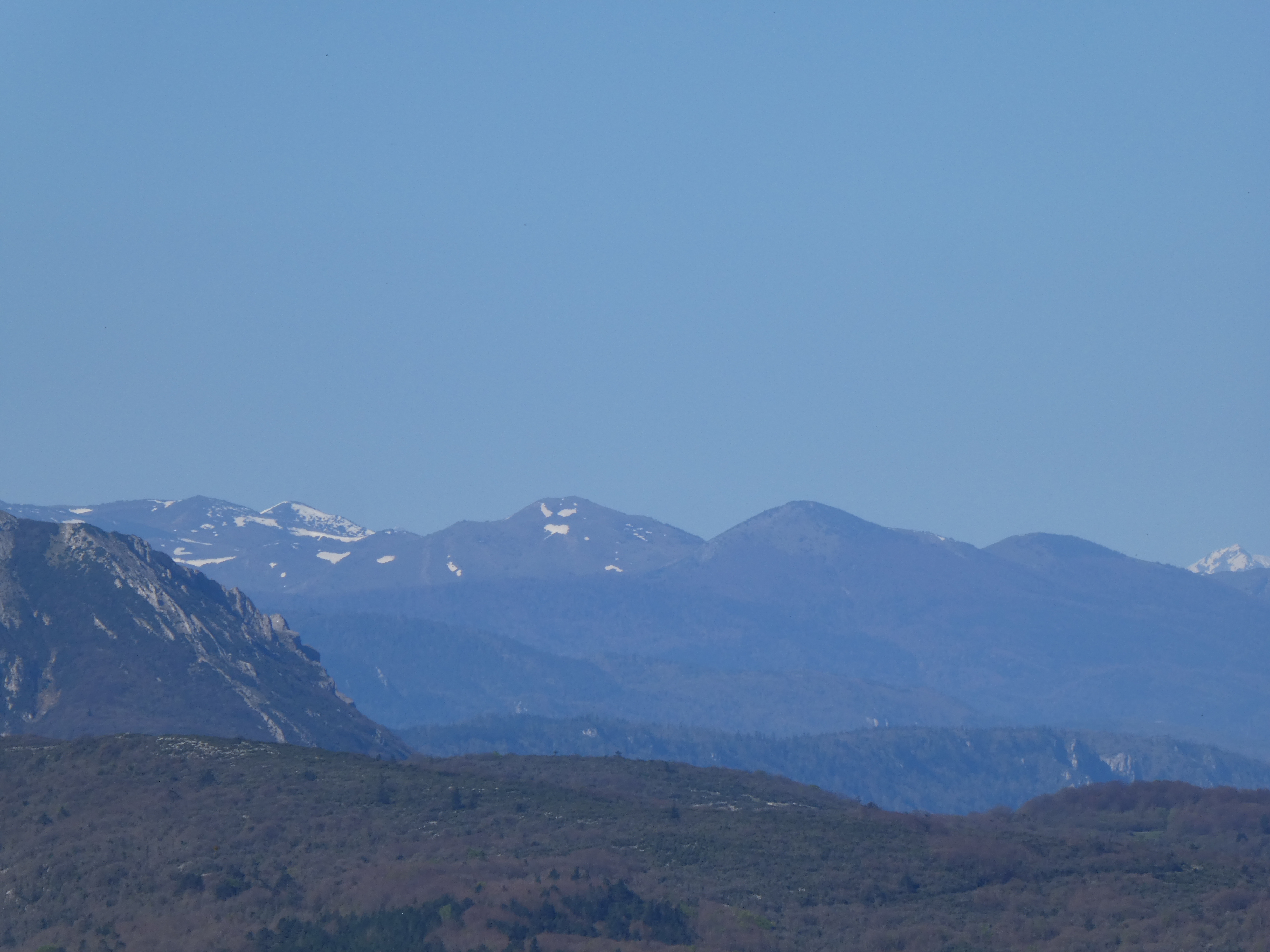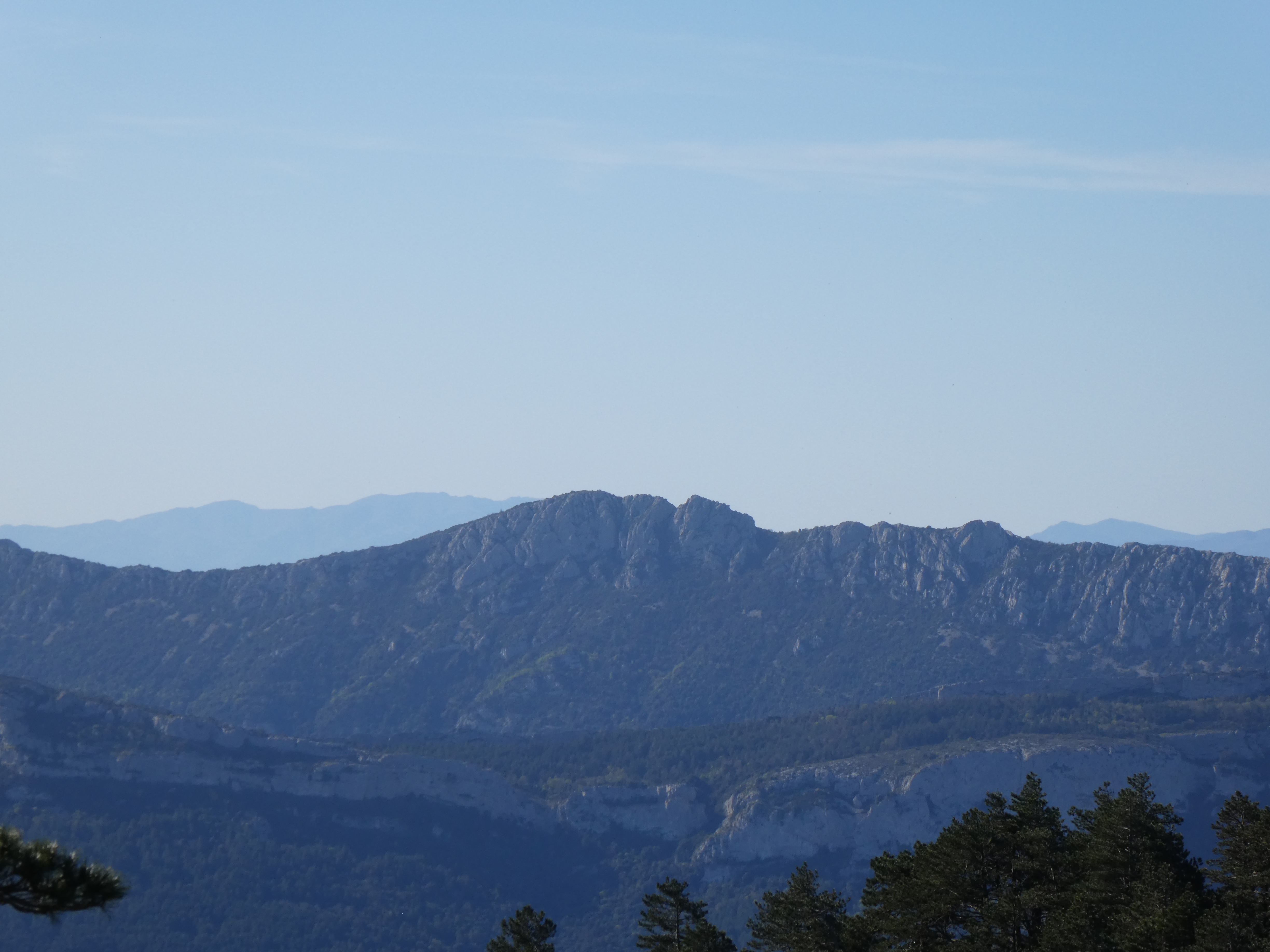 Zoom sur la crête du Col de l'Homme Mort (853 m) à gauche et le Milobre de Bouisse (875 m) à droite