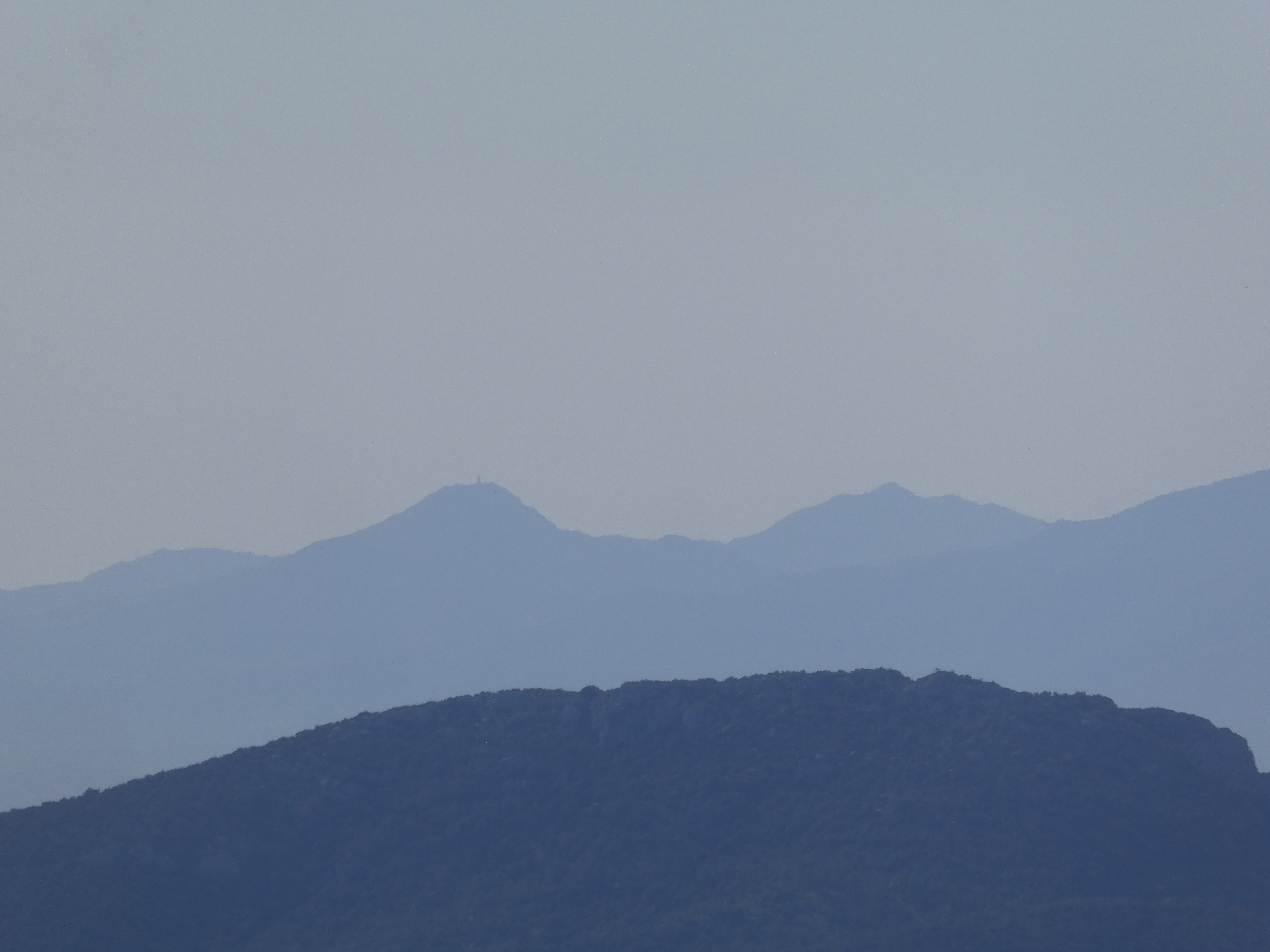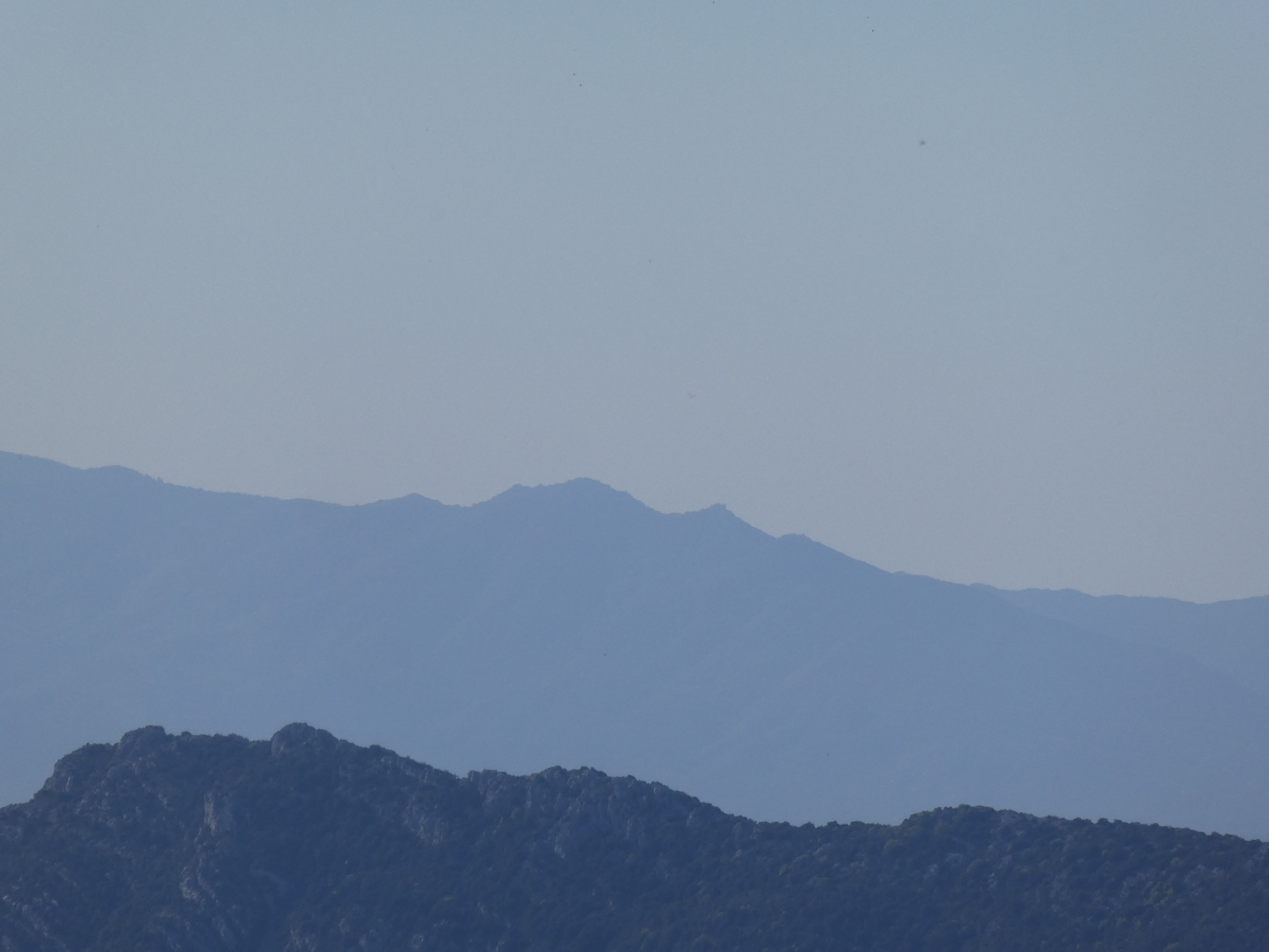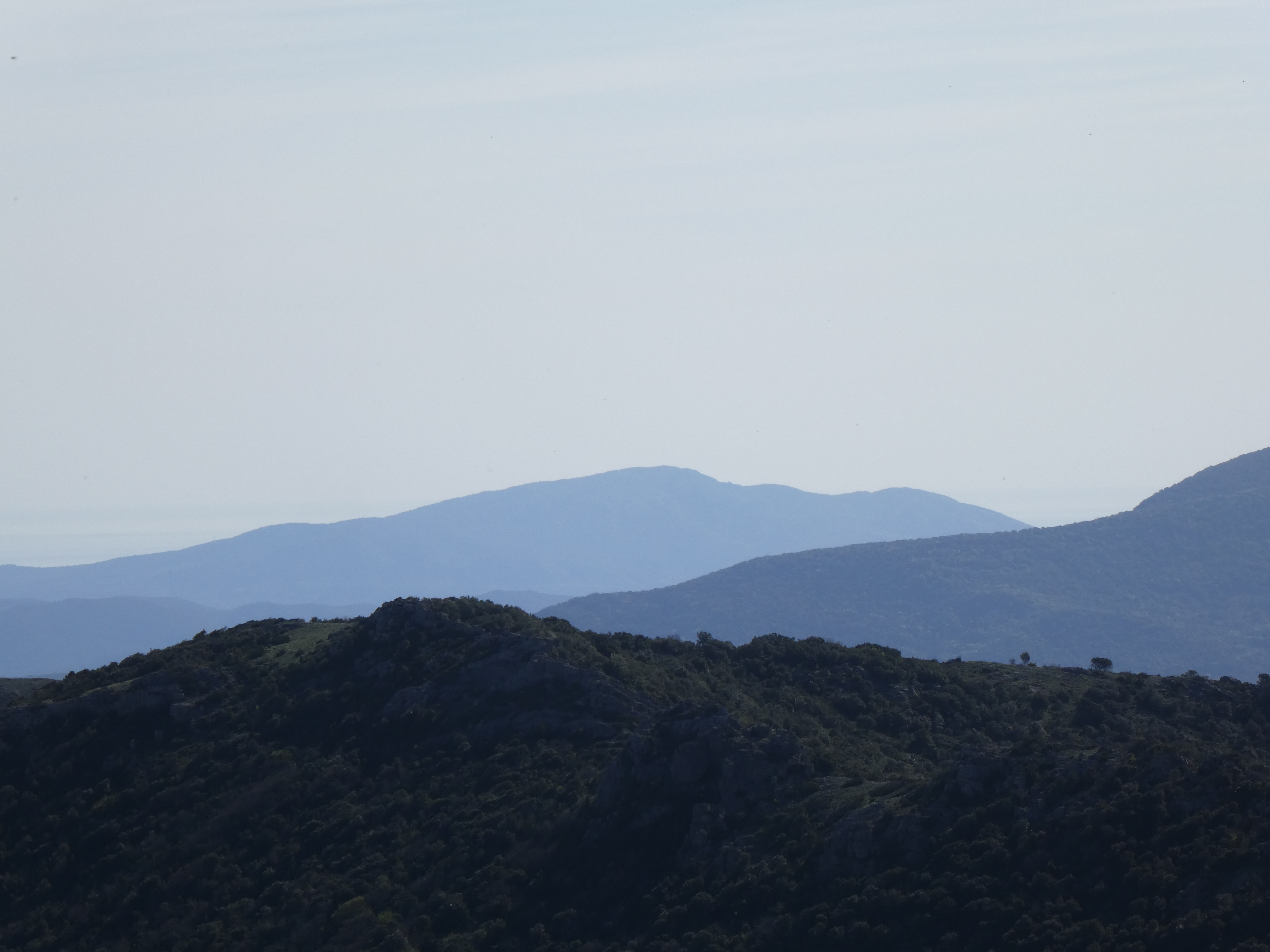 Zoom sur le Pic del Bolaric (1031 m) à gauche, et le Pic de les Salines (1333 m) et le Roc de Frausa (1450 m) au centre