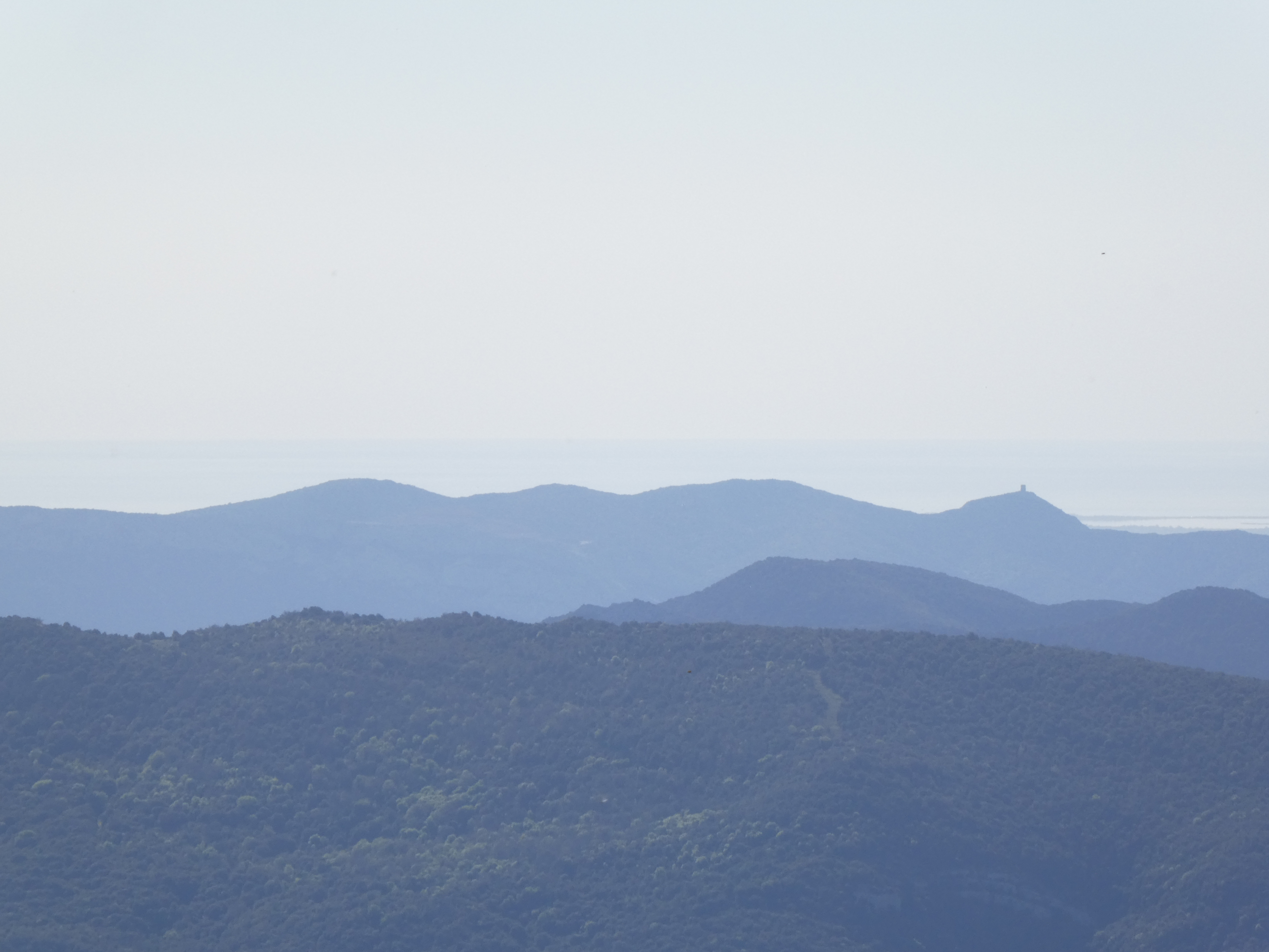 Zoom sur la Torre de Madeloc (656 m) à gauche et la Torre de Querroig (672 m) à droite