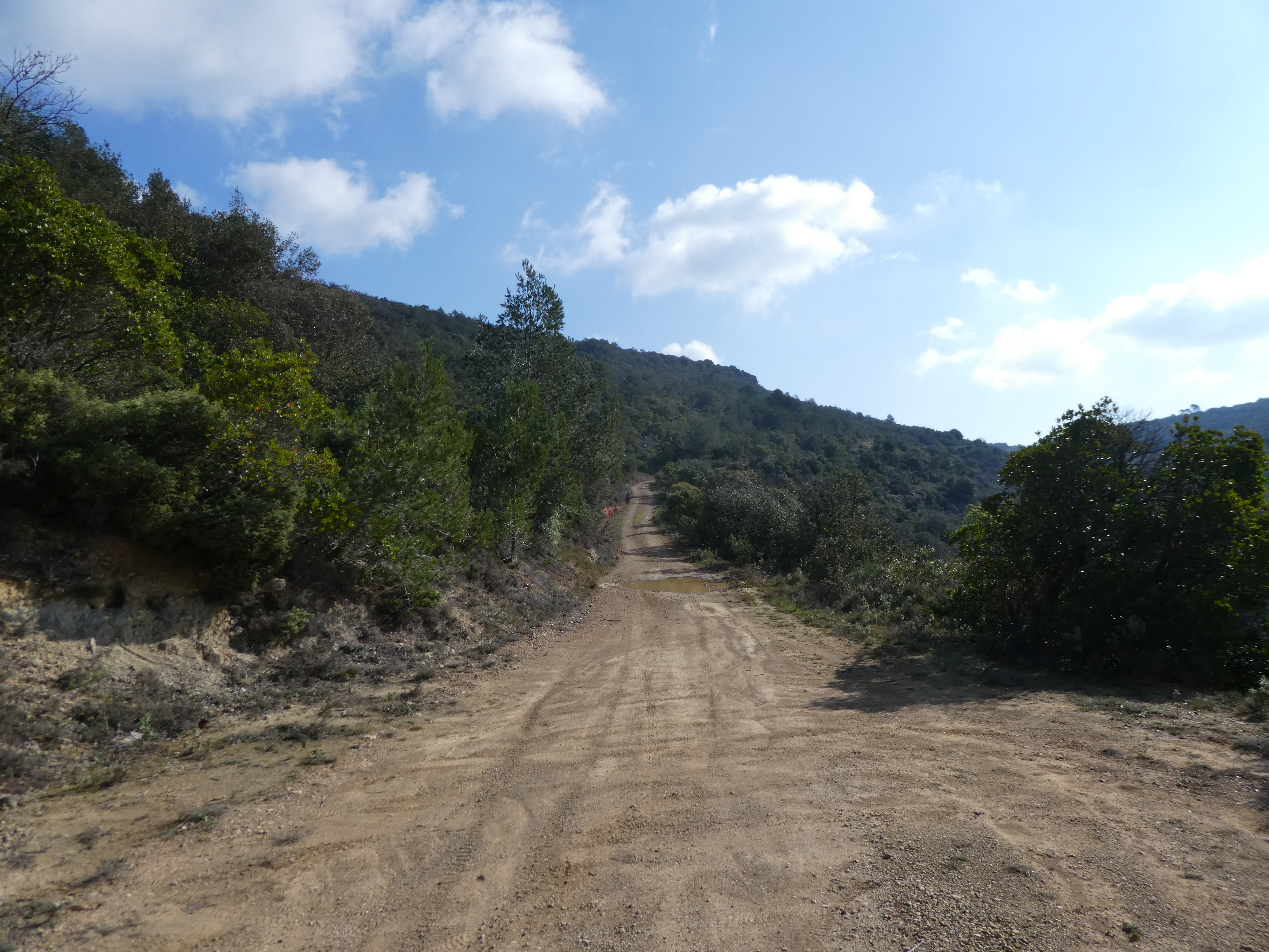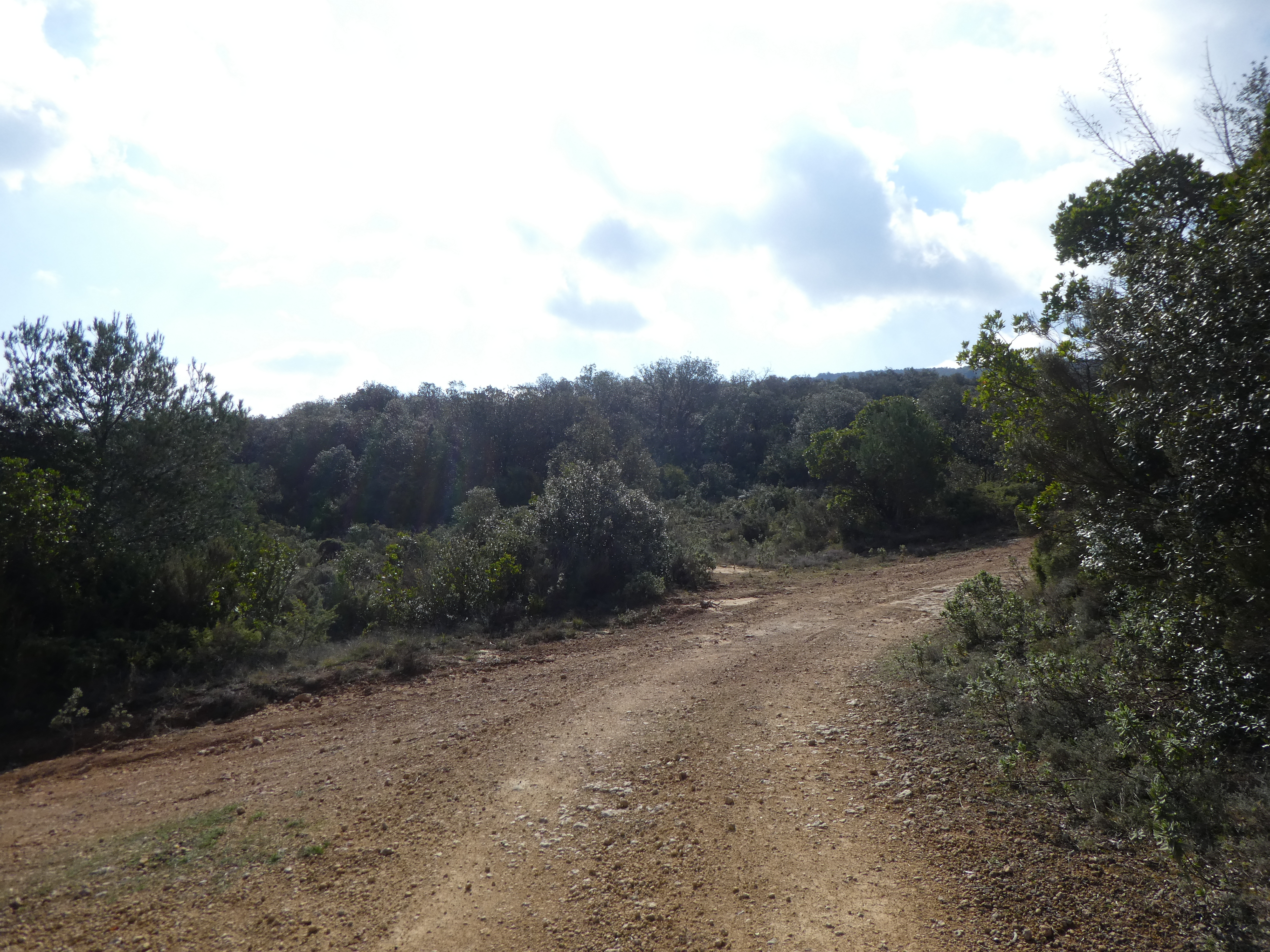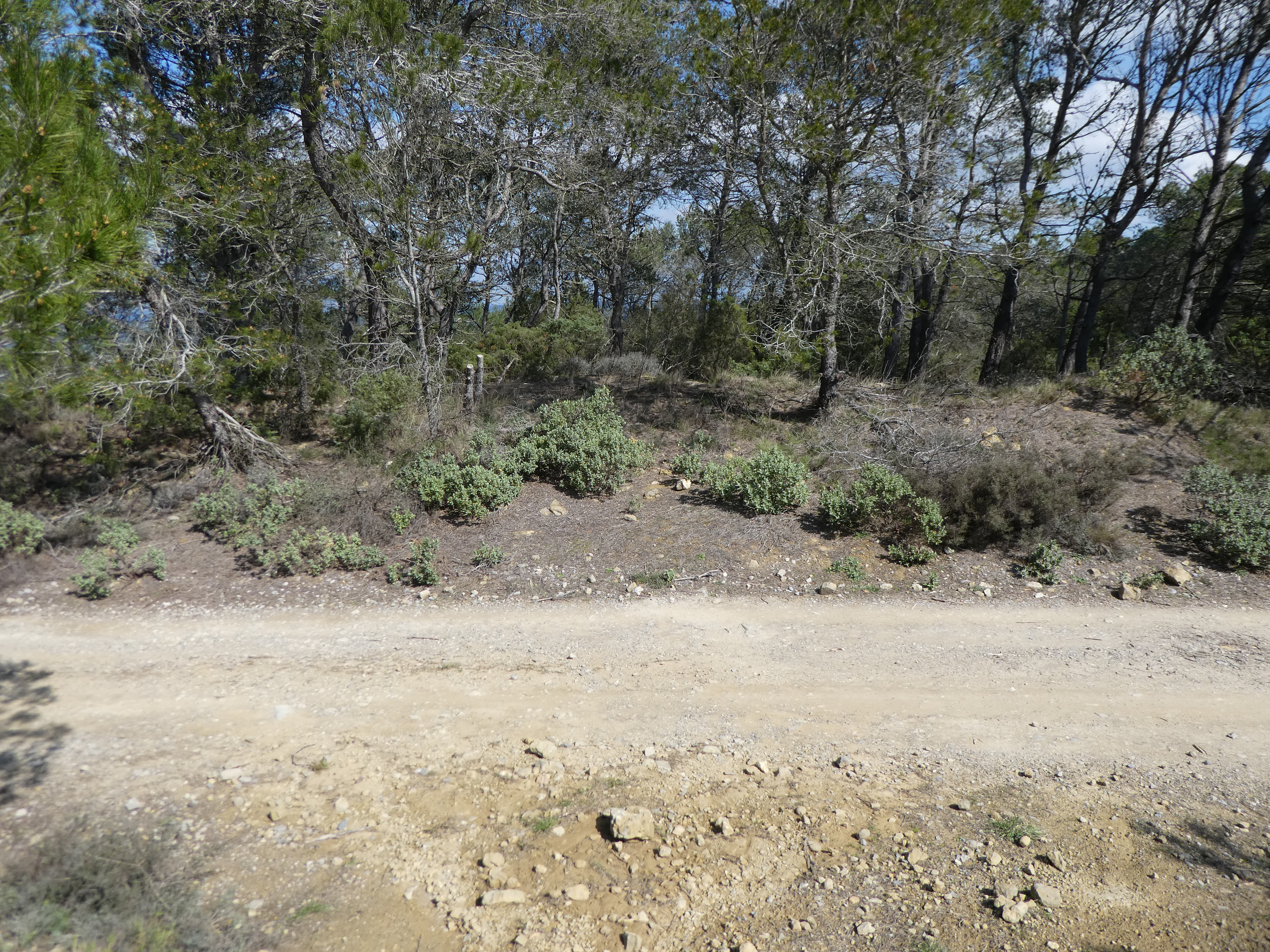 A ce croisement avec le sentier du Tour des Hautes Corbières marqué par la présence d'une citerne d'eau (2600 mètres après le précédent) (343 m), suivre la piste partant sur la gauche et longeant le Serrat de Mouillague direction Mont Major (par le Sentier de la Roche Sestière)