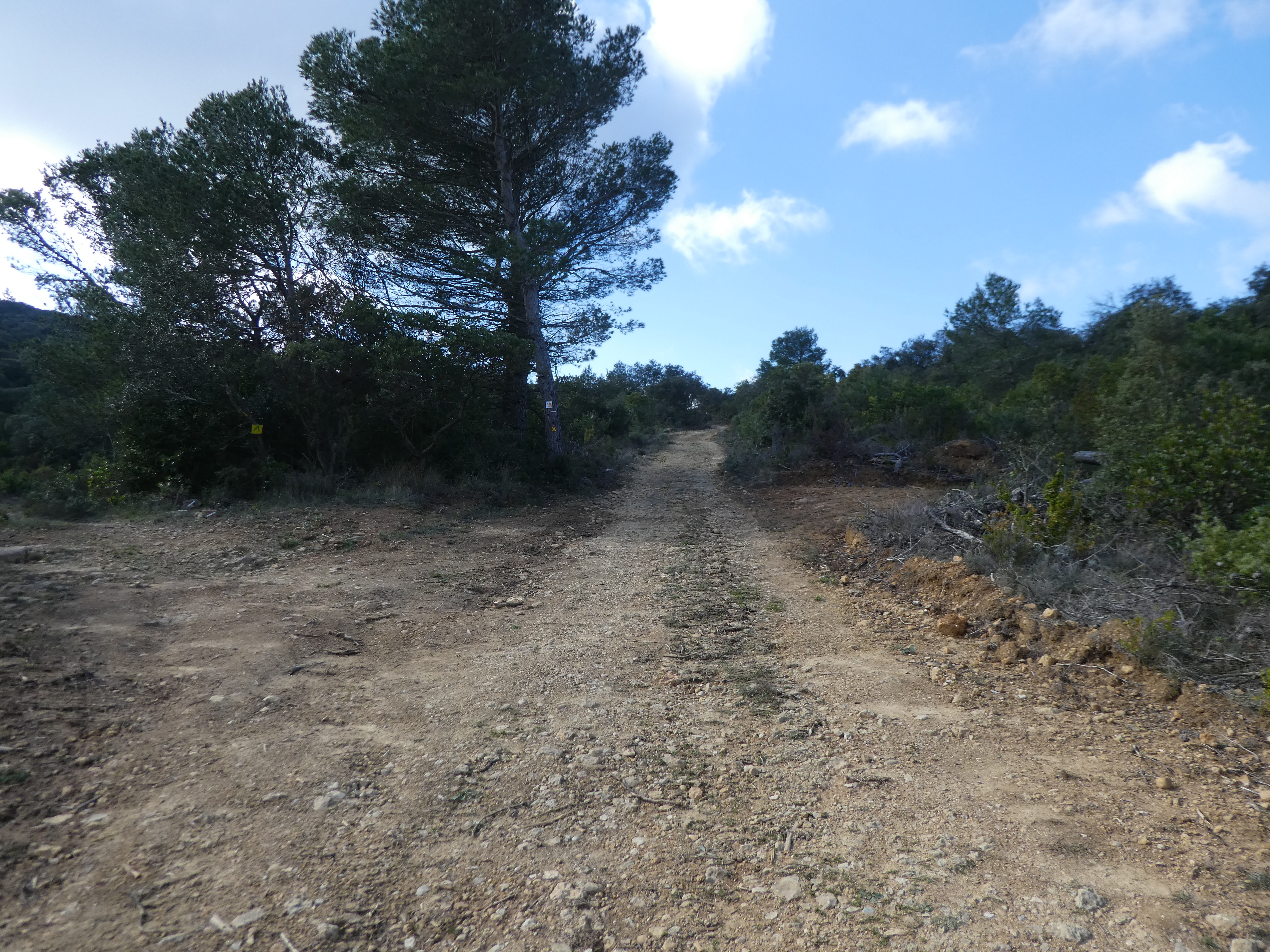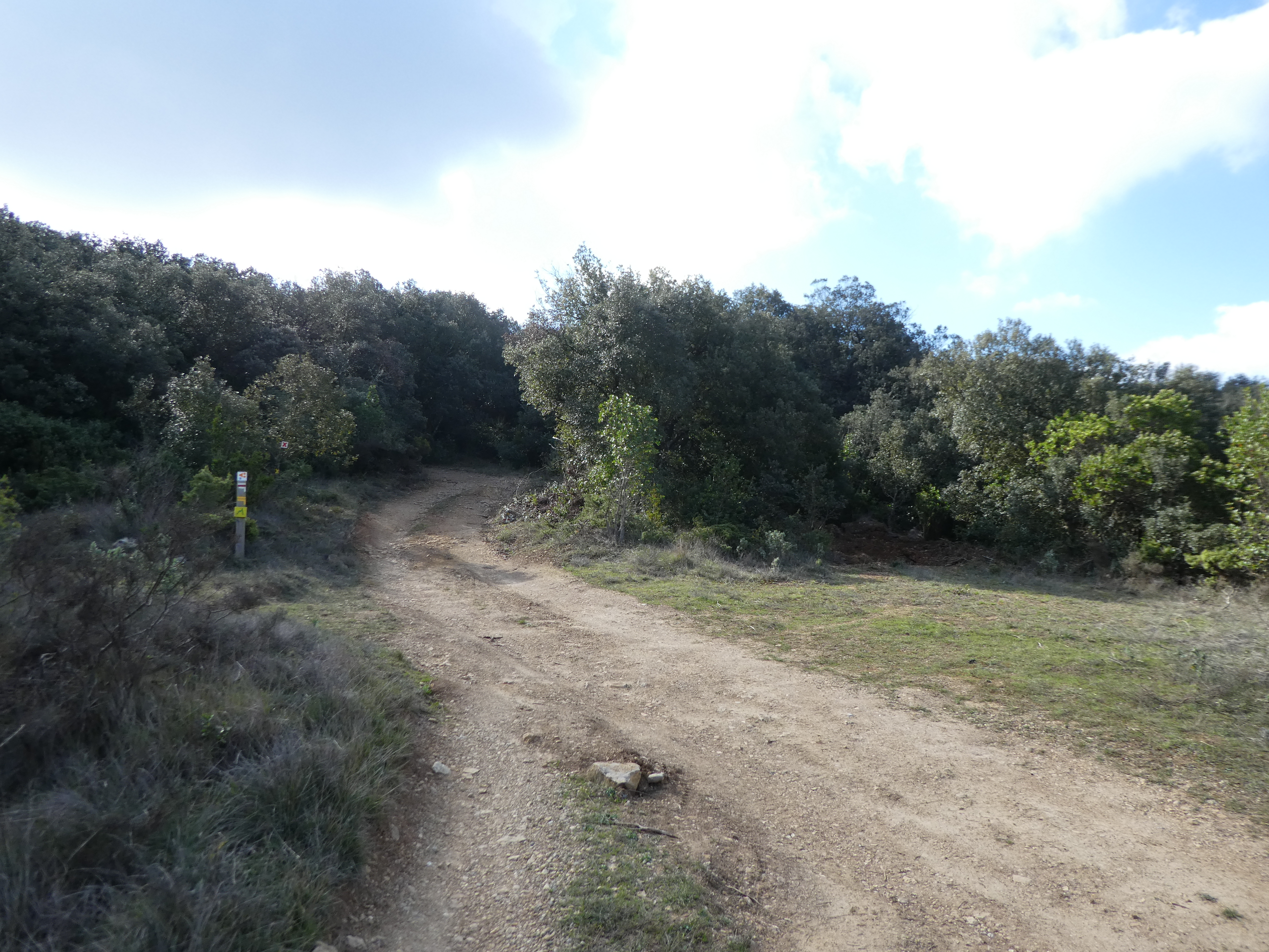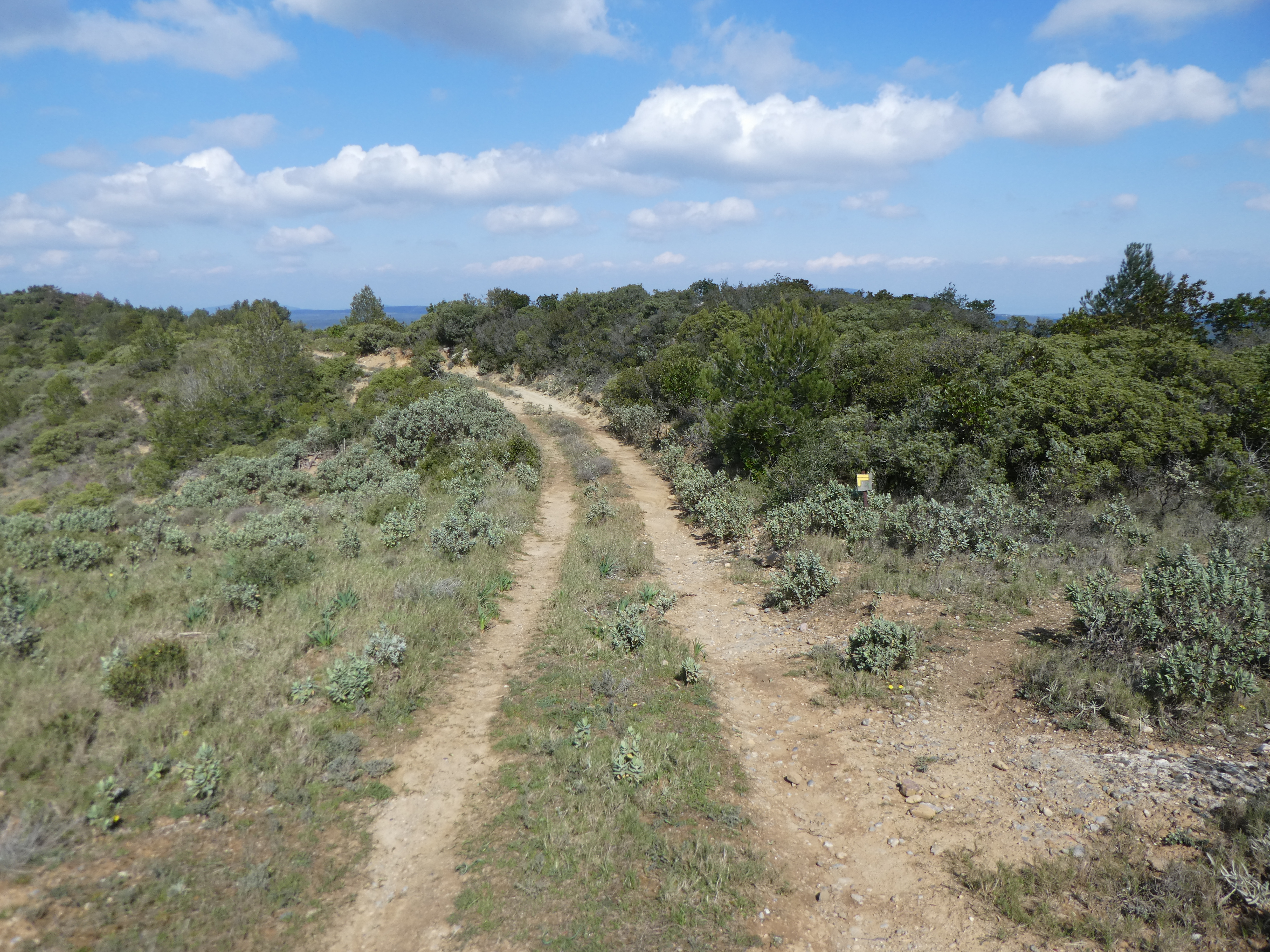 A ce croisement avec le sentier balisé en jaune venant du Mont Major (300 mètres après le précédent), suivre ce dernier partant tout droit direction Saint-Pierre-des-Champs, balisé en jaune dorénavant (ceux qui auraient suivi le sentier balisé en jaune après le Mont Major sans passer par le Pech de Blanes devraient se retrouver ici)