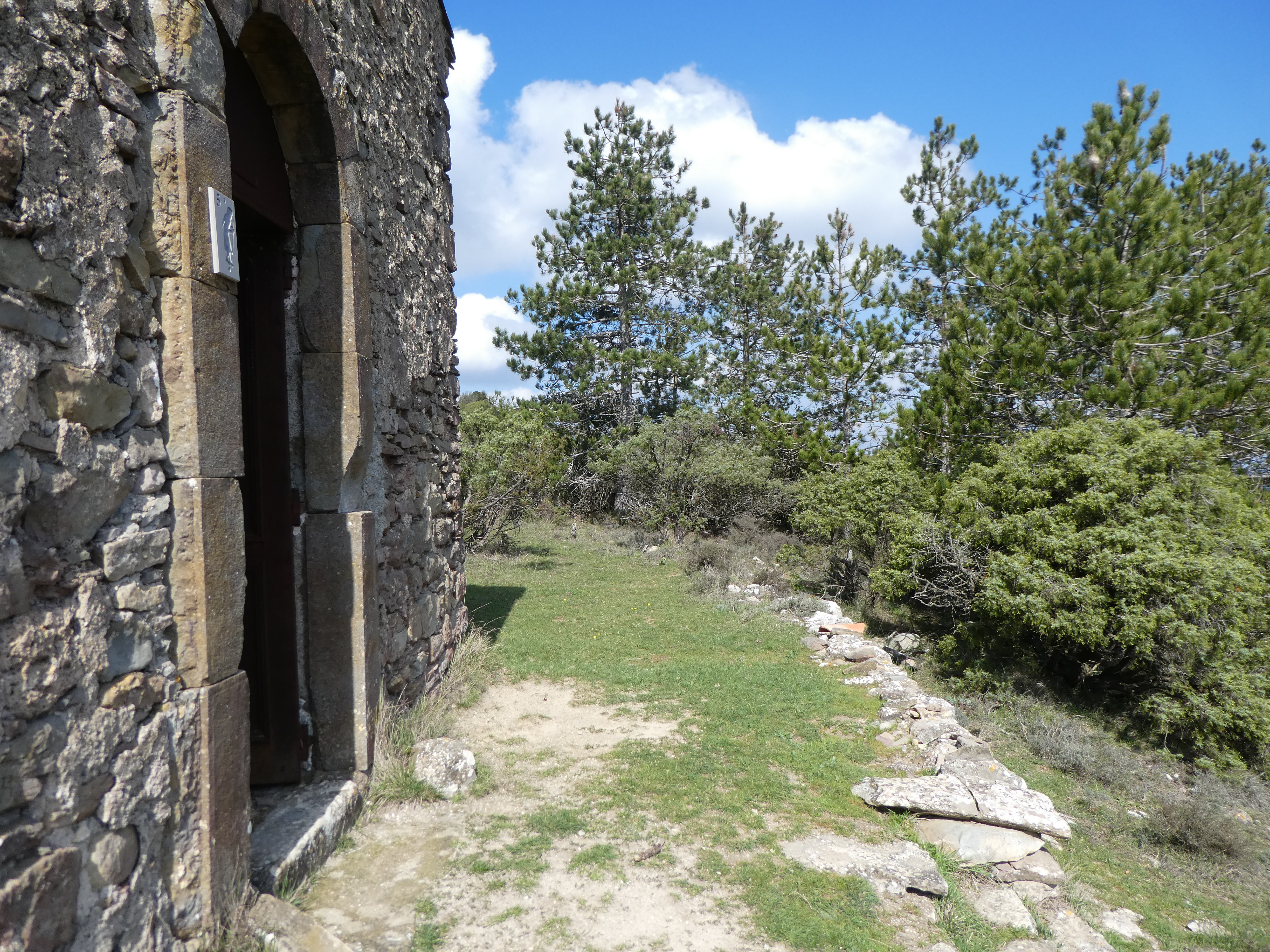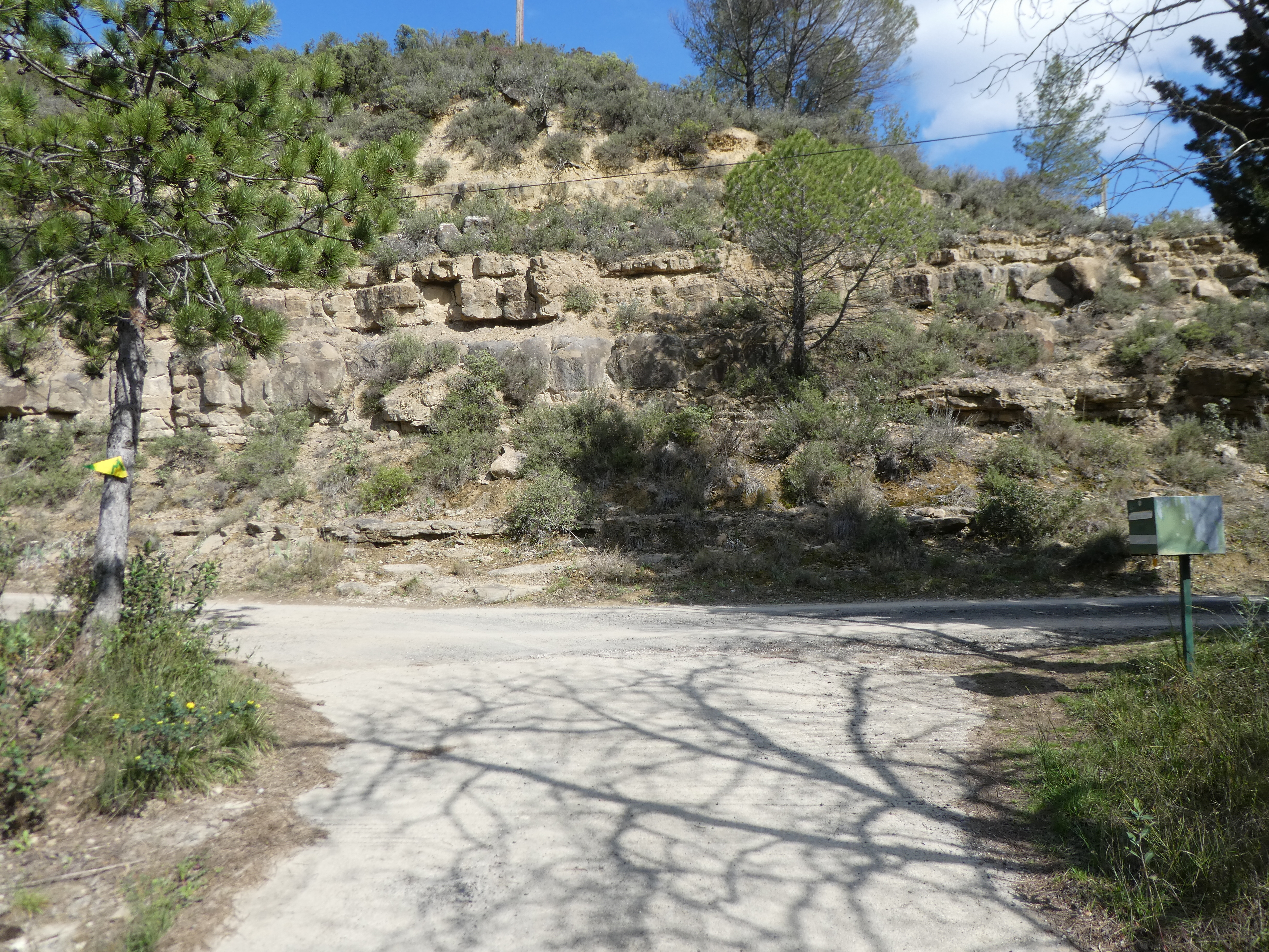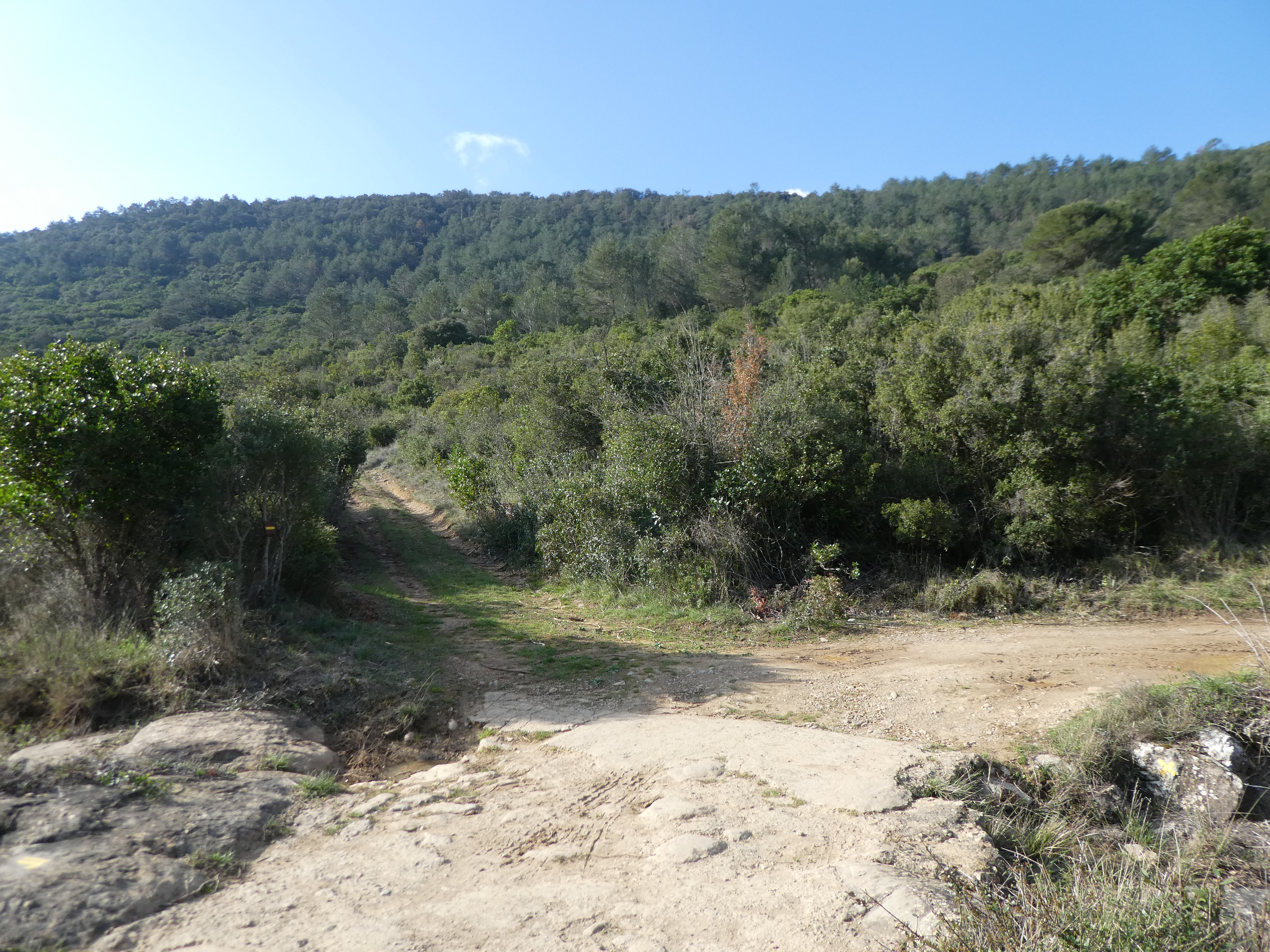A ce croisement avec le sentier balisé en jaune venant du Mont Major (300 mètres après le précédent), suivre ce dernier partant tout droit direction Saint-Pierre-des-Champs, balisé en jaune dorénavant (ceux qui auraient suivi le sentier balisé en jaune après le Mont Major sans passer par le Pech de Blanes devraient se retrouver ici)
