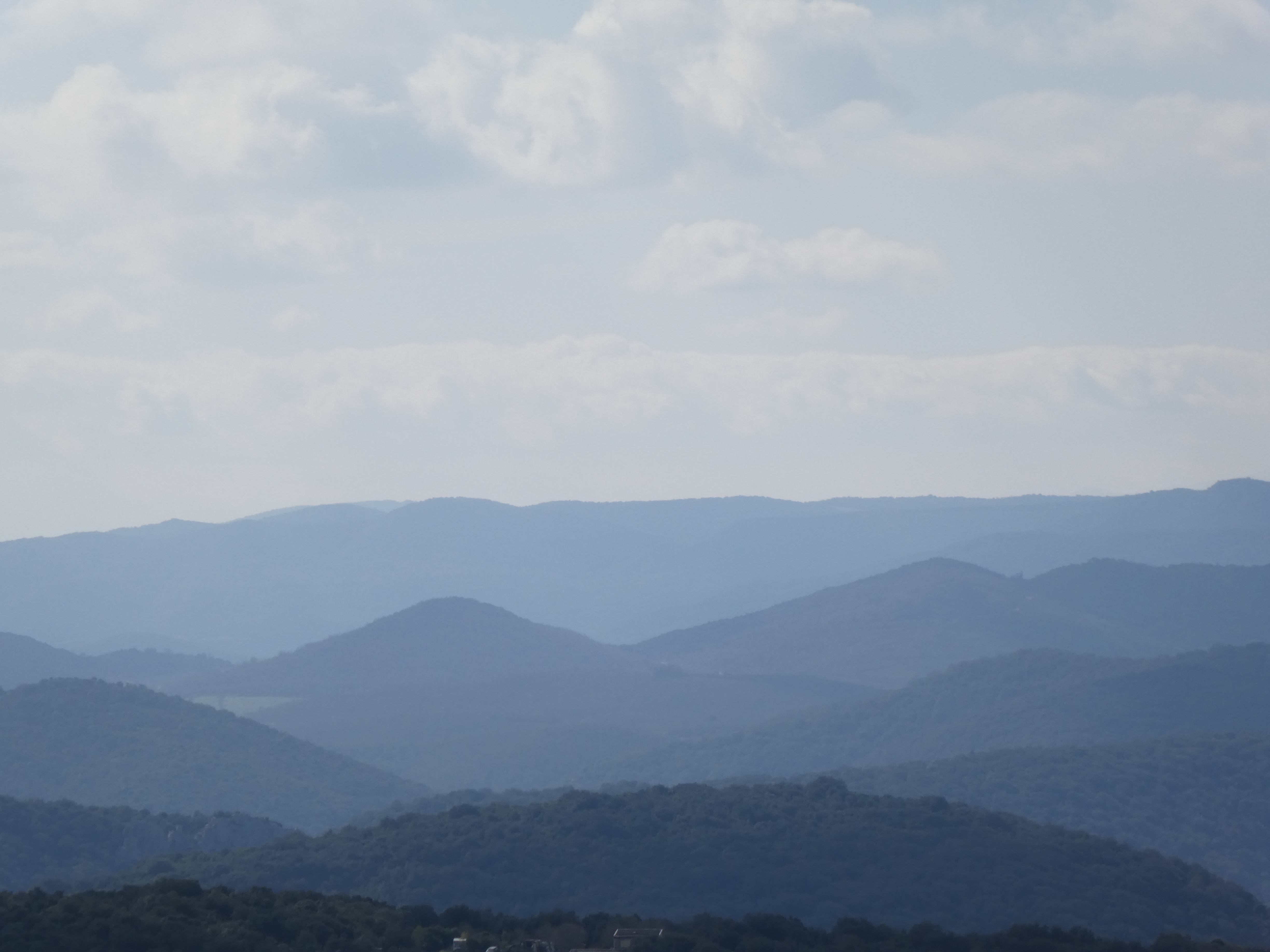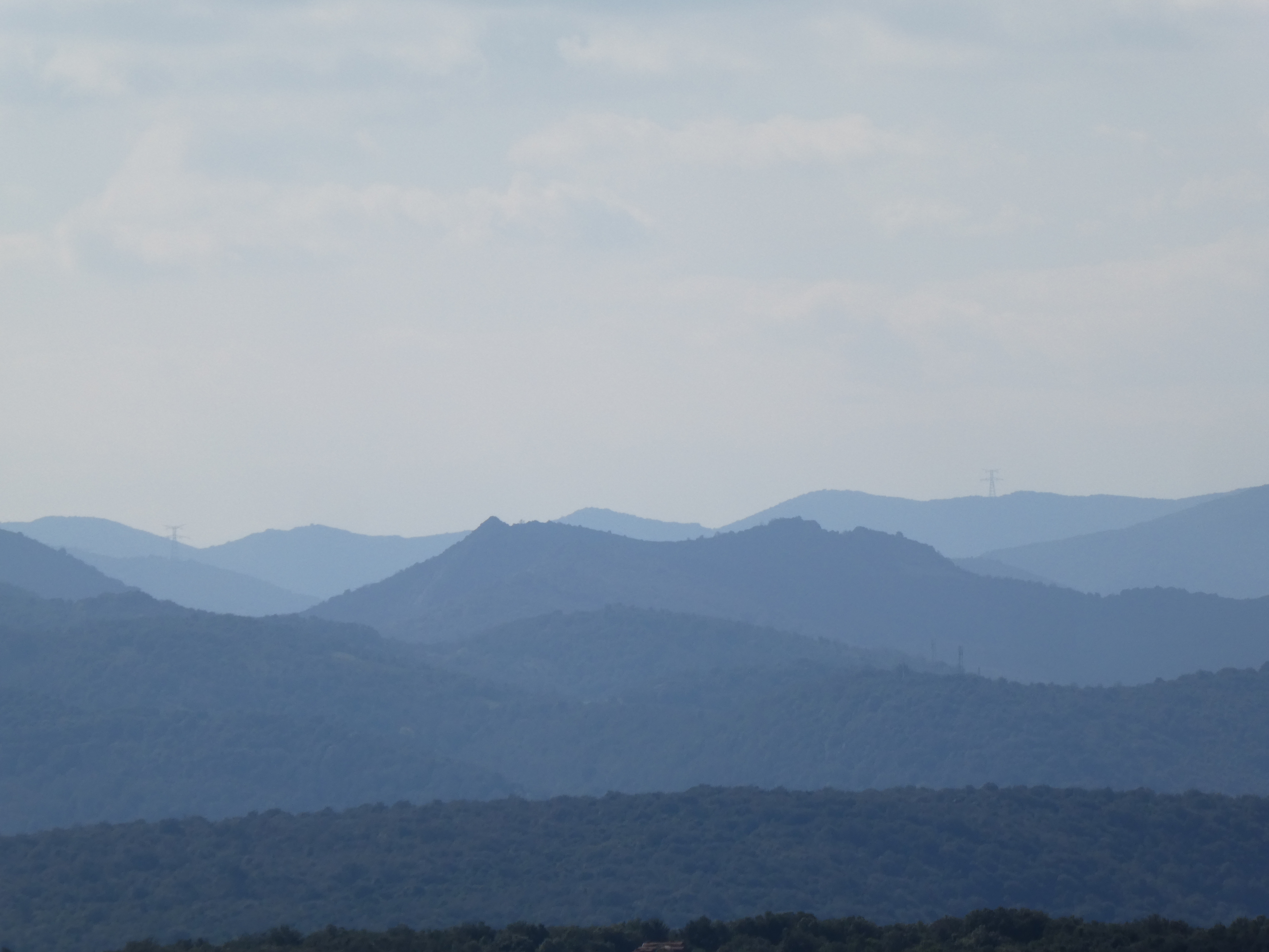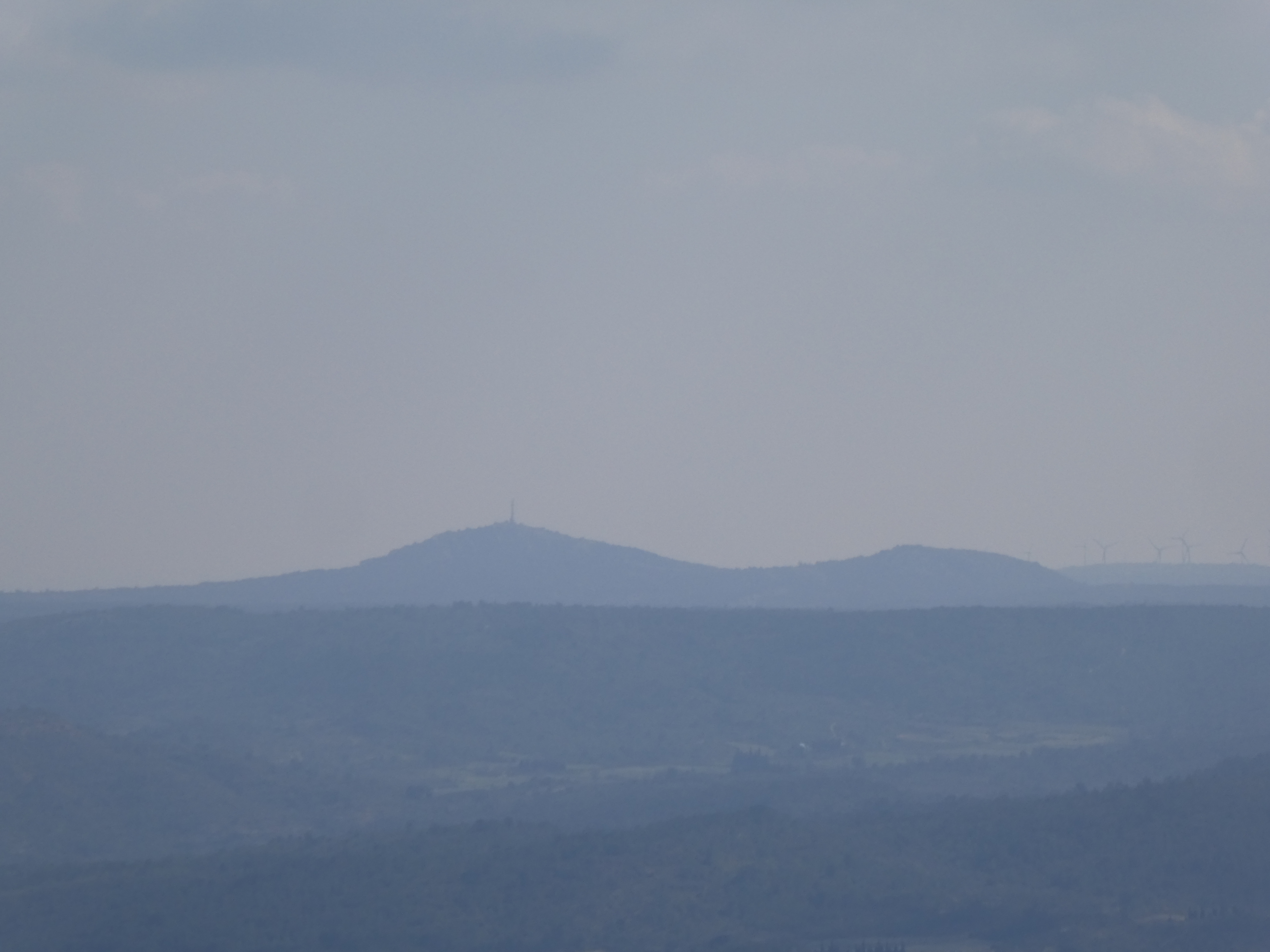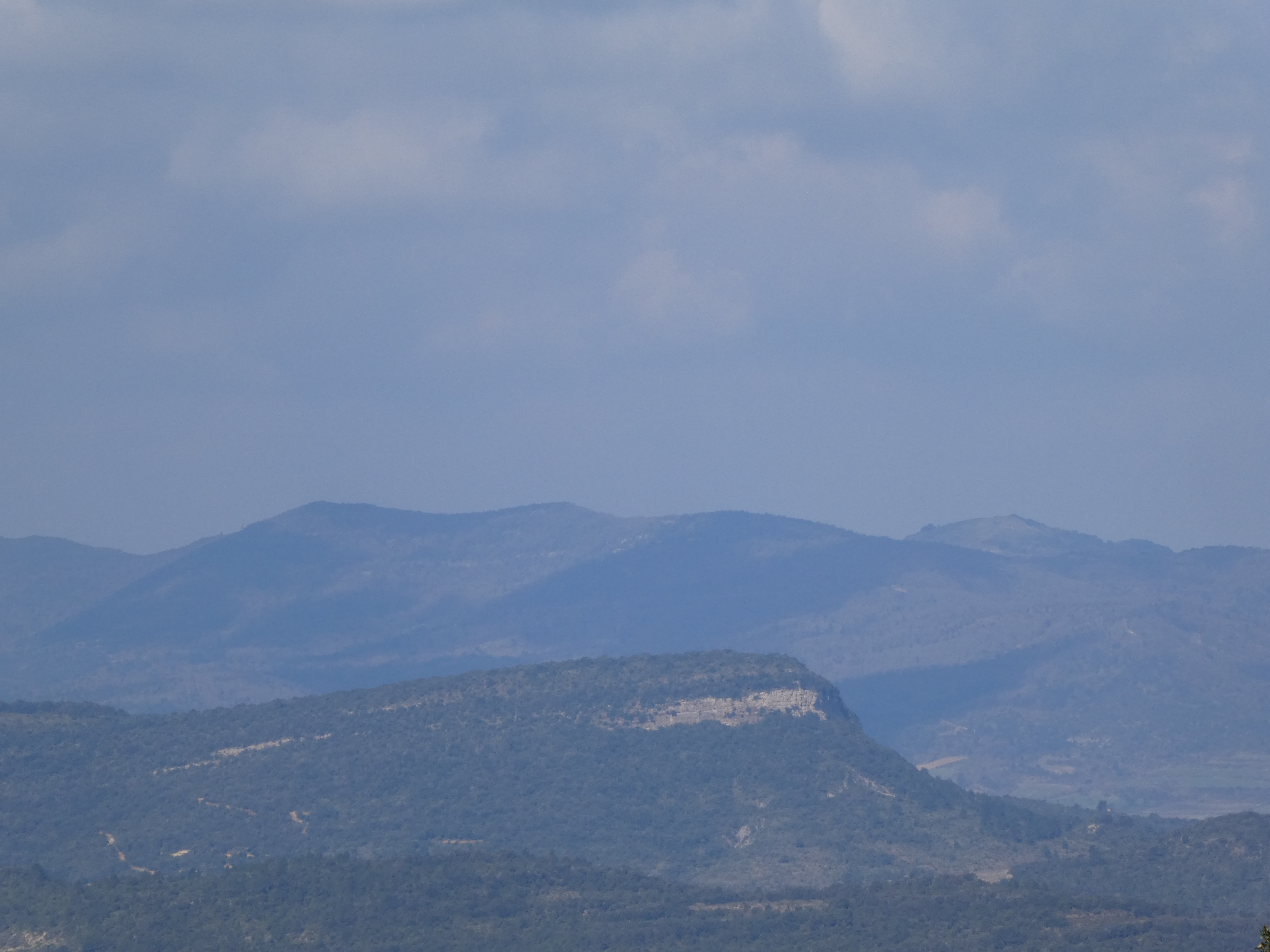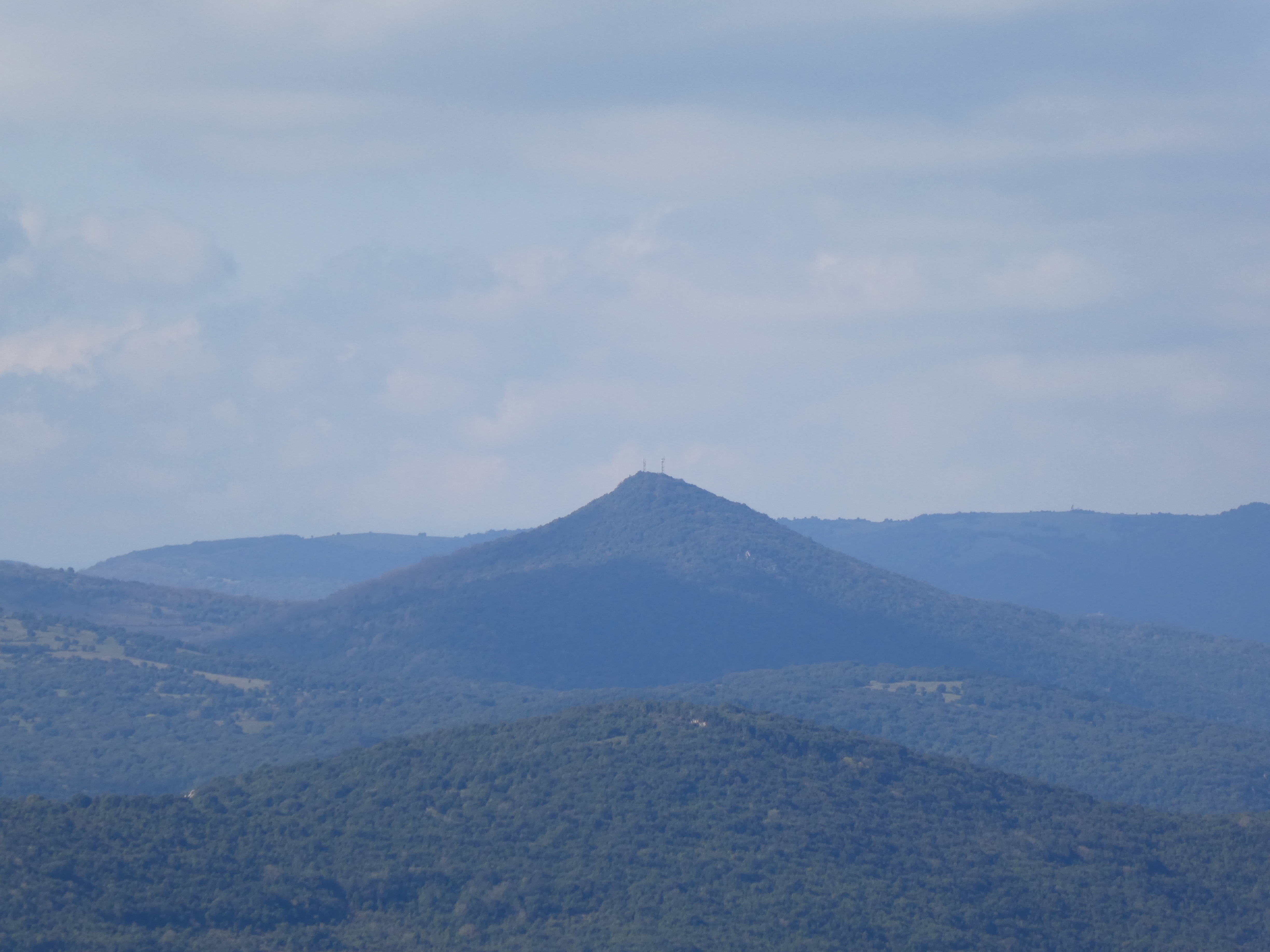 Zoom sur la Serre (586 m) à gauche et le sommet de Montaut (596 m) à droite