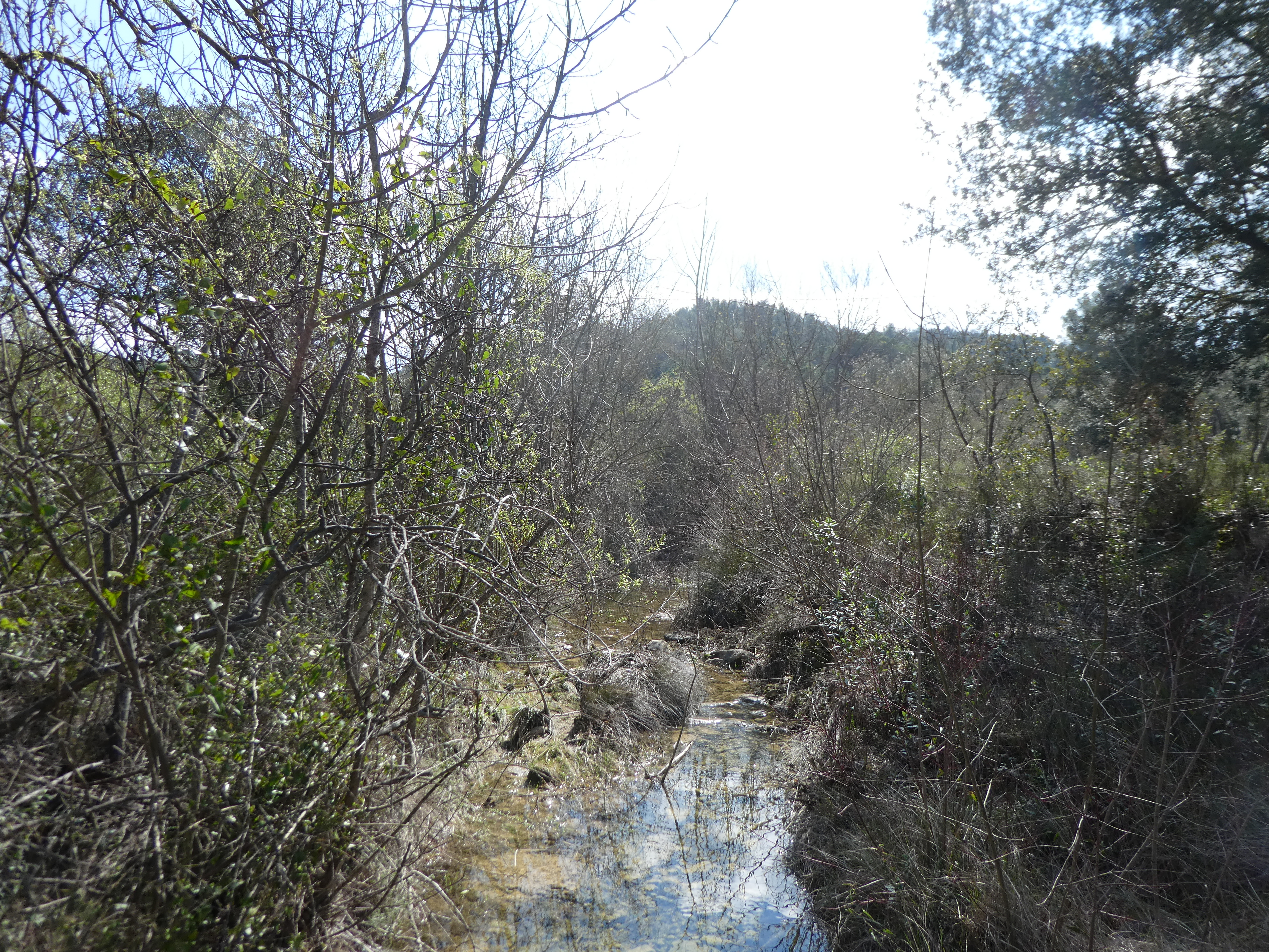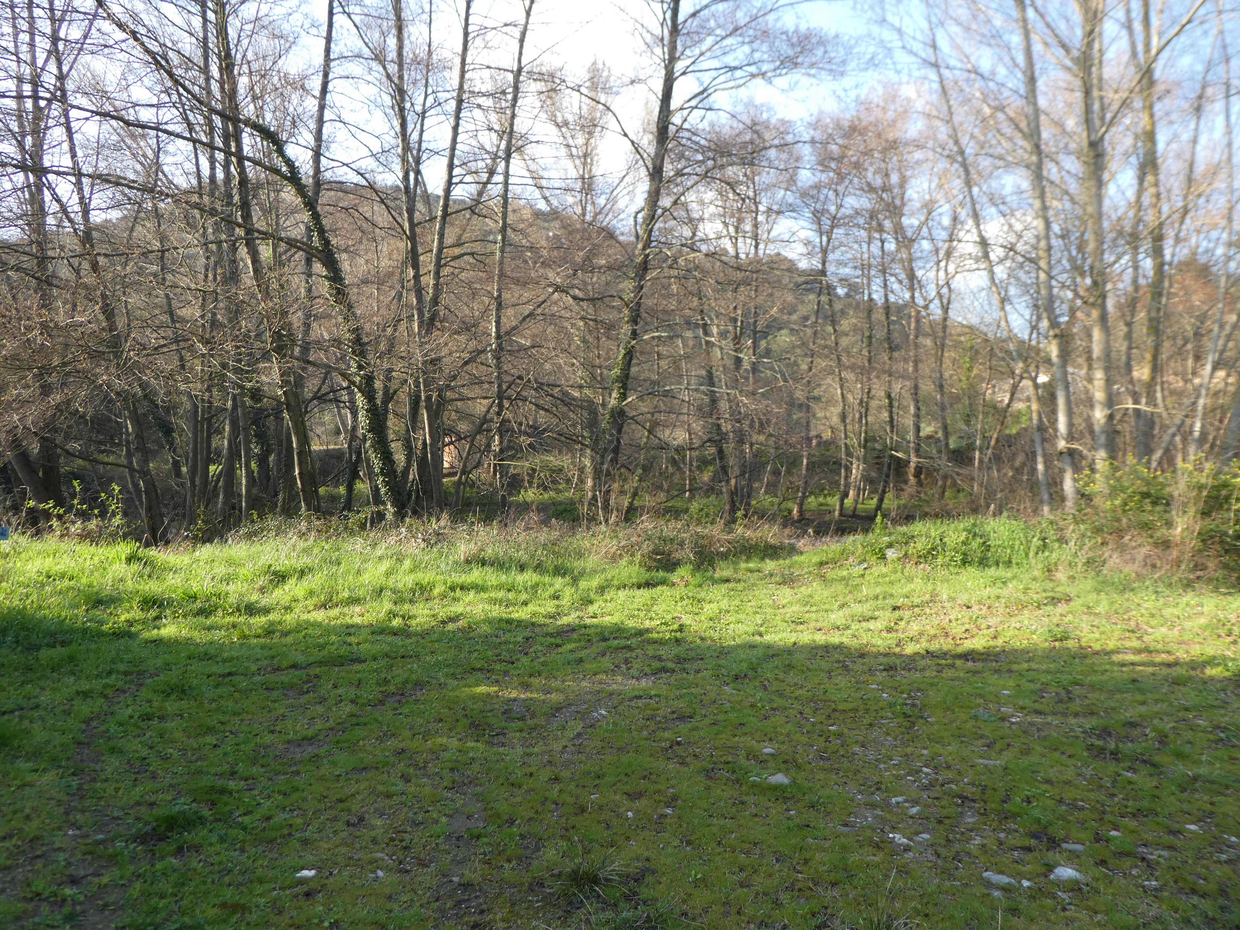 A ce croisement où le sentier longeant les berges de l'Orbieu disparaît (1600 mètres après le précédent), suivre le chemin mal tracé partant sur la gauche et continuant à longer l'Orbieu direction Col des Maures (par les berges de l'Orbieu), balisé sporadiquement en jaune