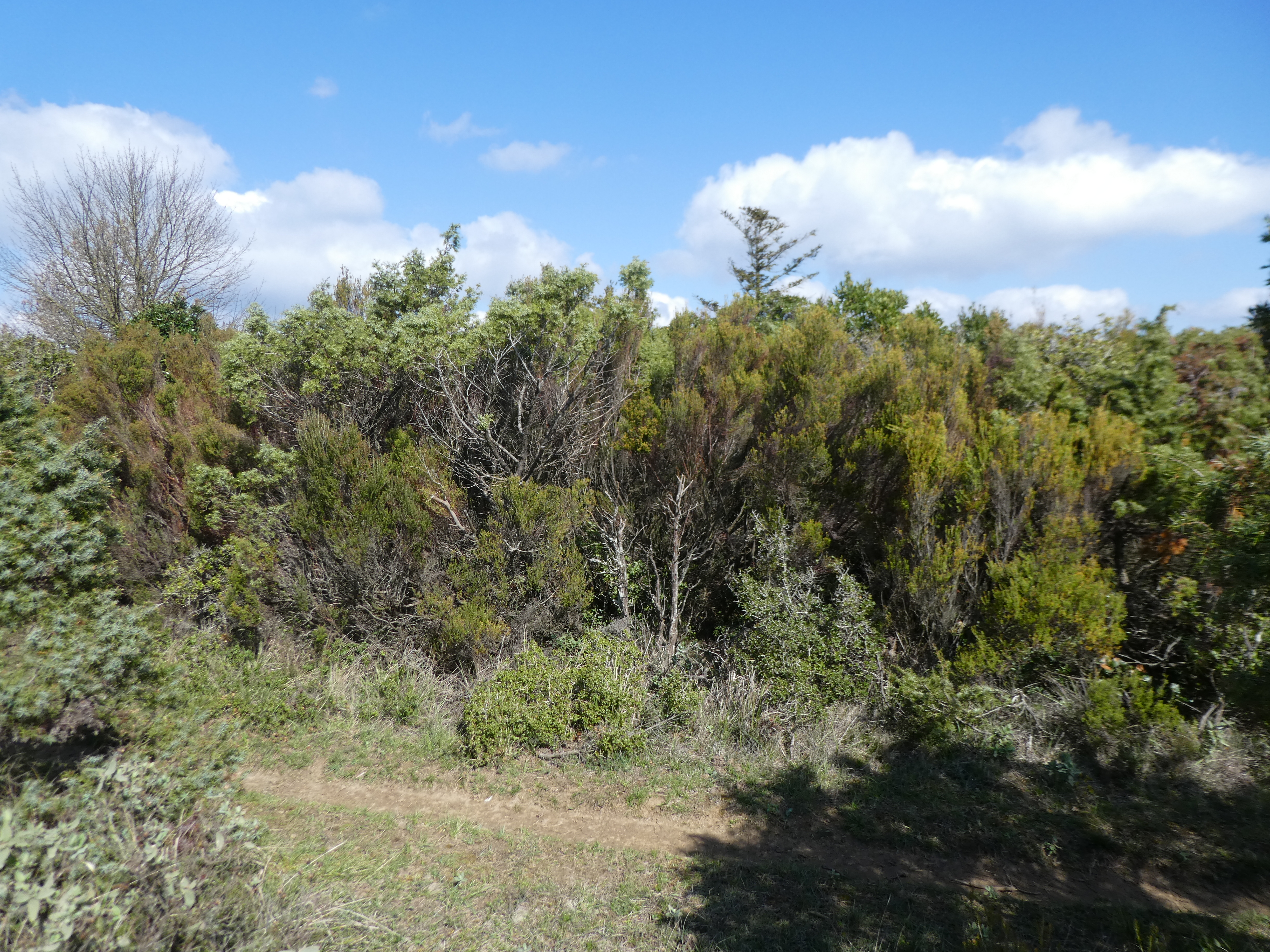 A ce croisement avec le chemin menant au Mont Redon (650 mètres après le précédent), suivre ce dernier partant tout droit direction Mont Redon, aucun balisage dorénavant (ceux qui voudraient revenir directement sur Saint-Pierre-des-Champs, continuer à suivre le sentier balisé en jaune partant sur la droite)