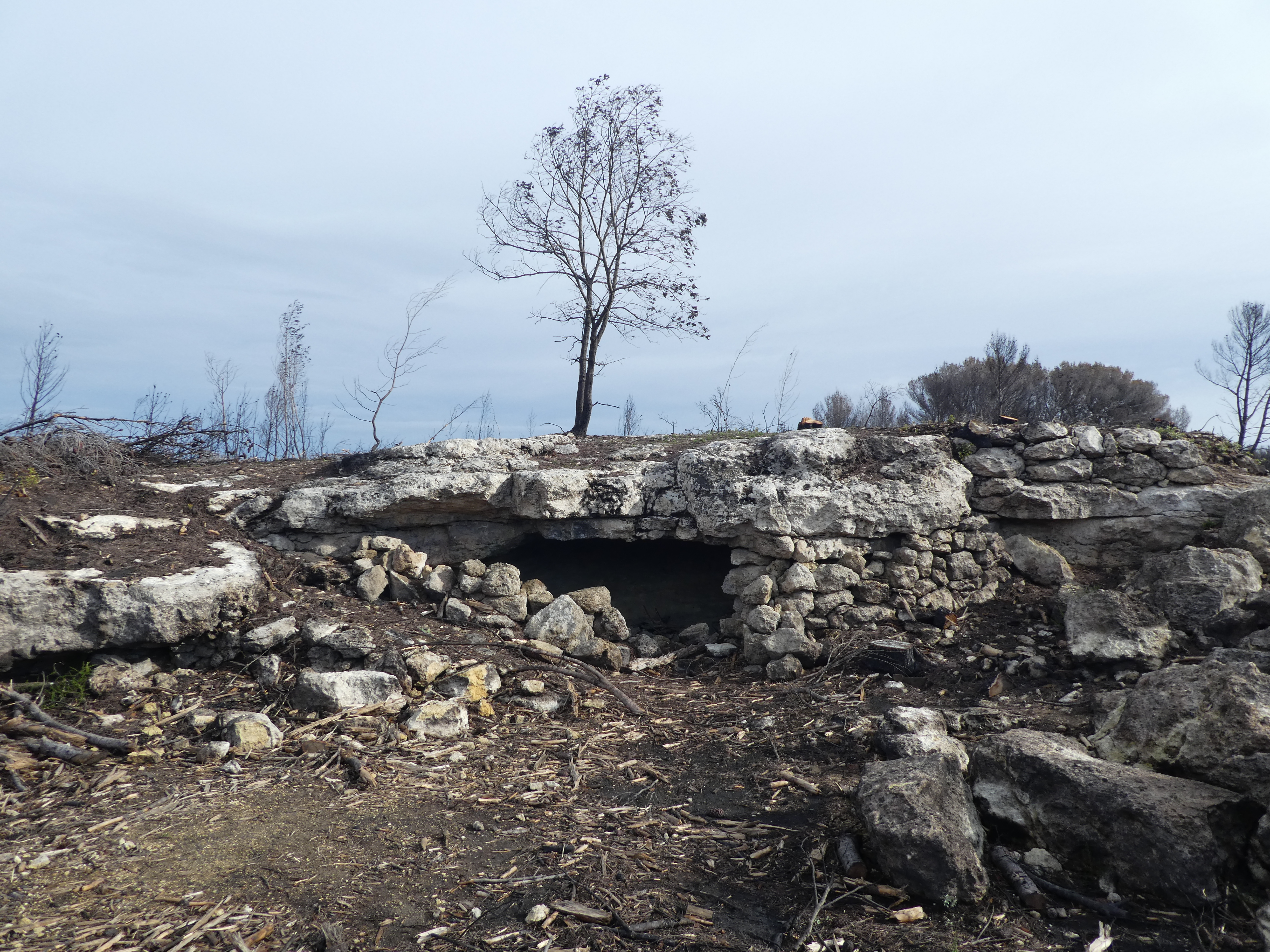 A ce croisement avec le GRP (50 mètres après avoir quitté le site de Saint-Blaise), suivre ce dernier sur la droite direction Port-de-Bouc, aucun balisage dorénavant (absence de balisage jaune et rouge en raison de l'abattage des arbres calcinés suite à l'incendie d'août 2020)