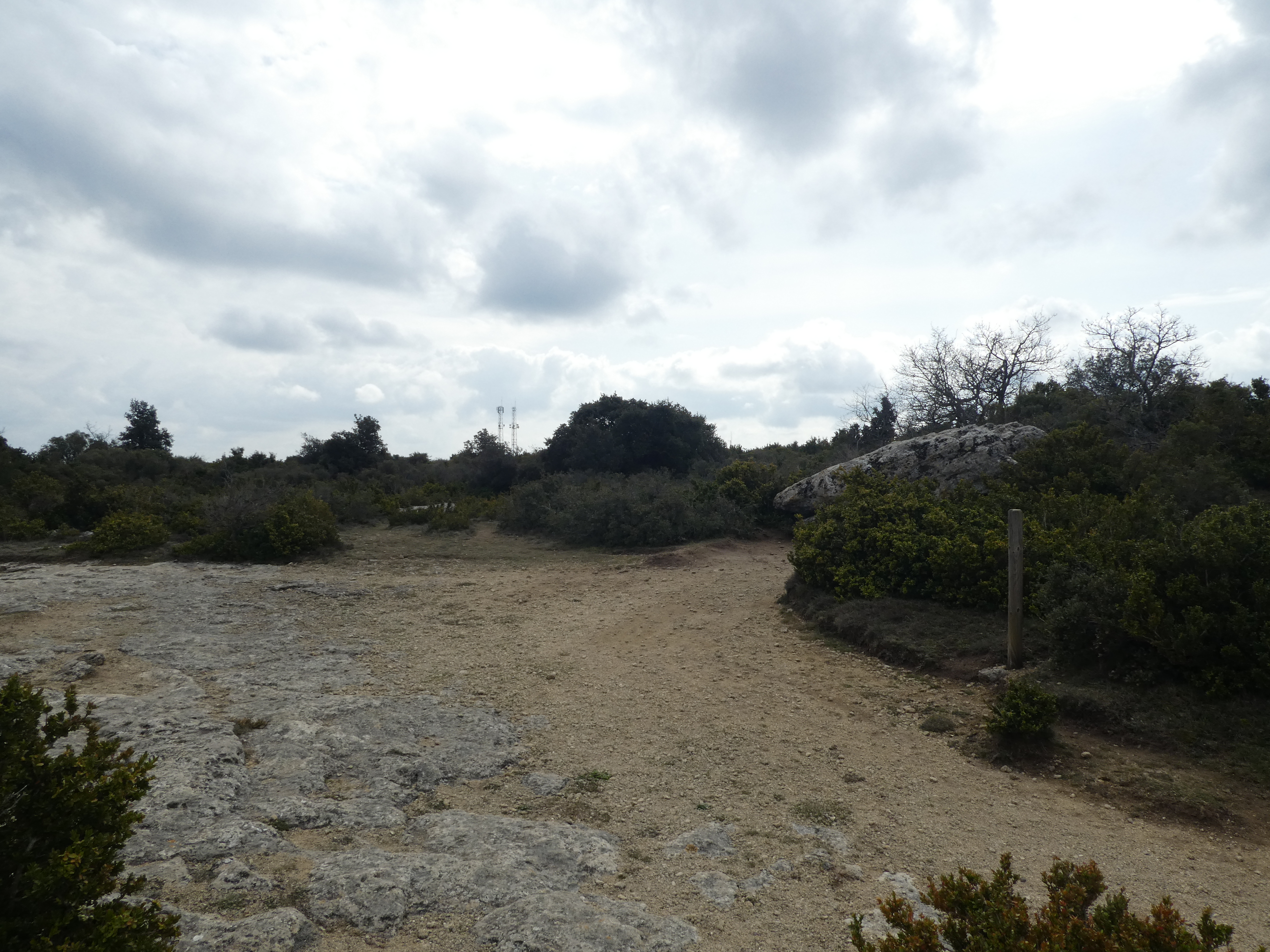 A ce croisement marqué par la présence d'un panneau directionnel (1000 mètres après avoir quitté la D22d), suivre le chemin montant sur la gauche direction Grand Puech, aucun balisage dorénavant