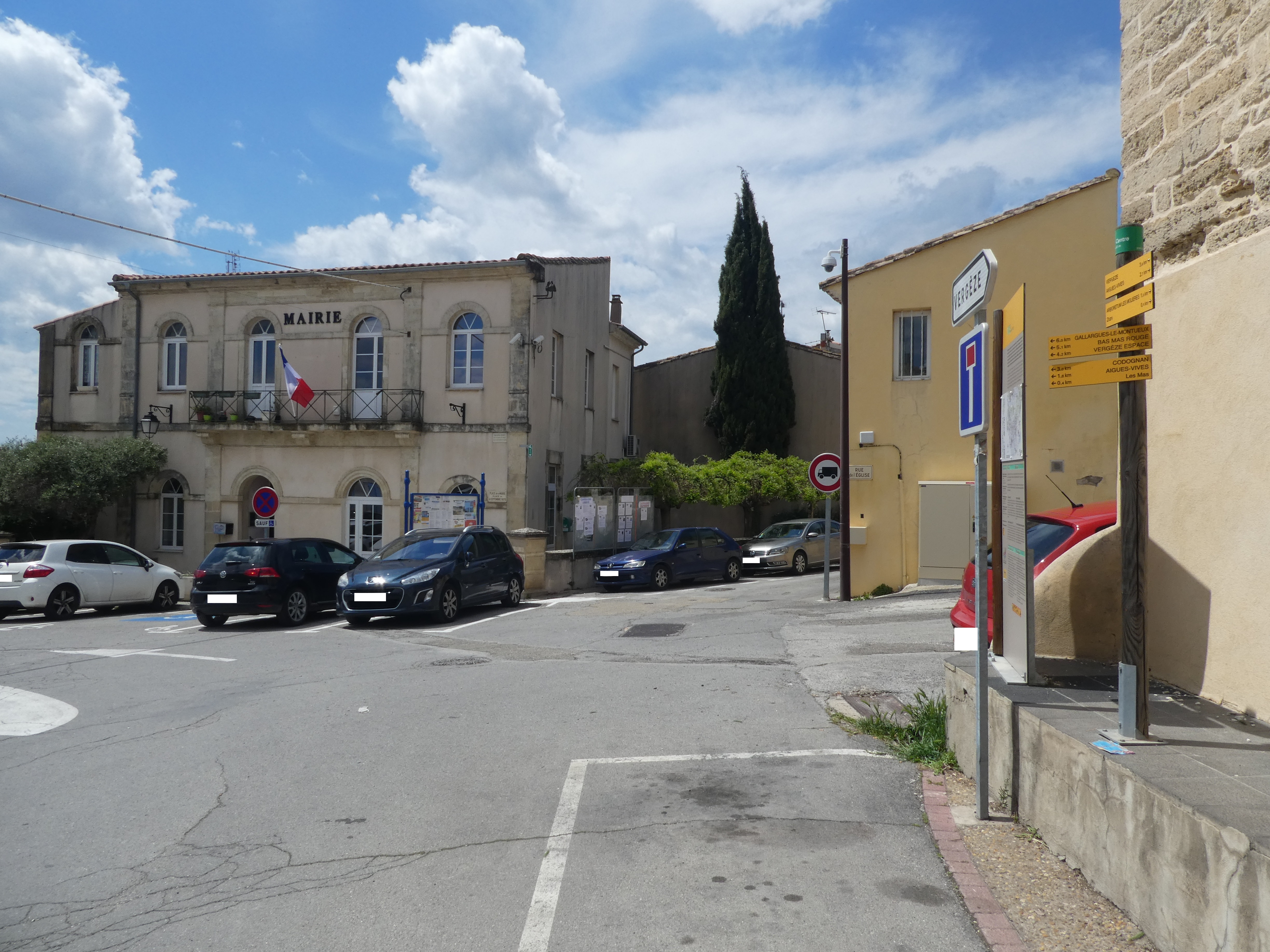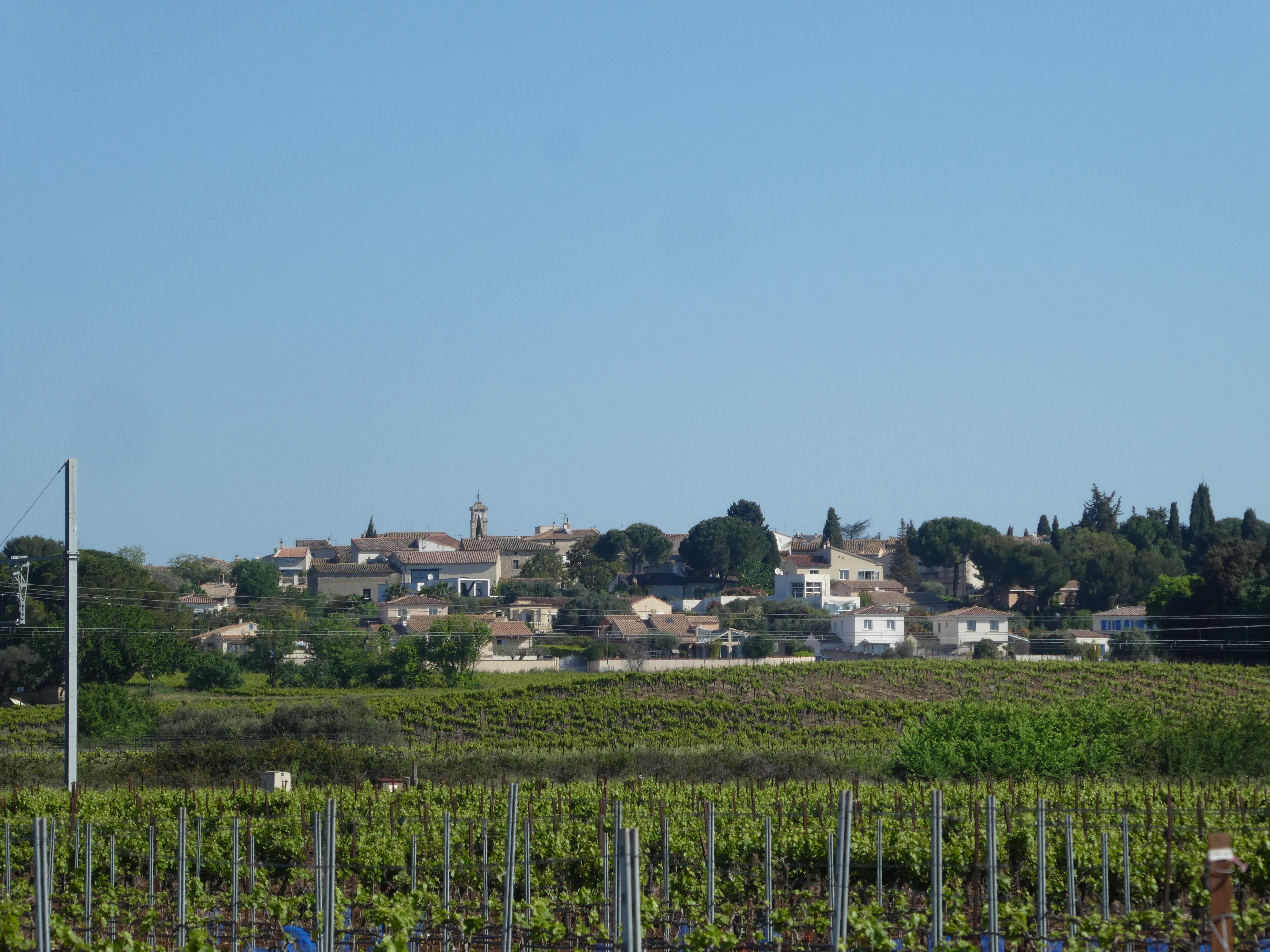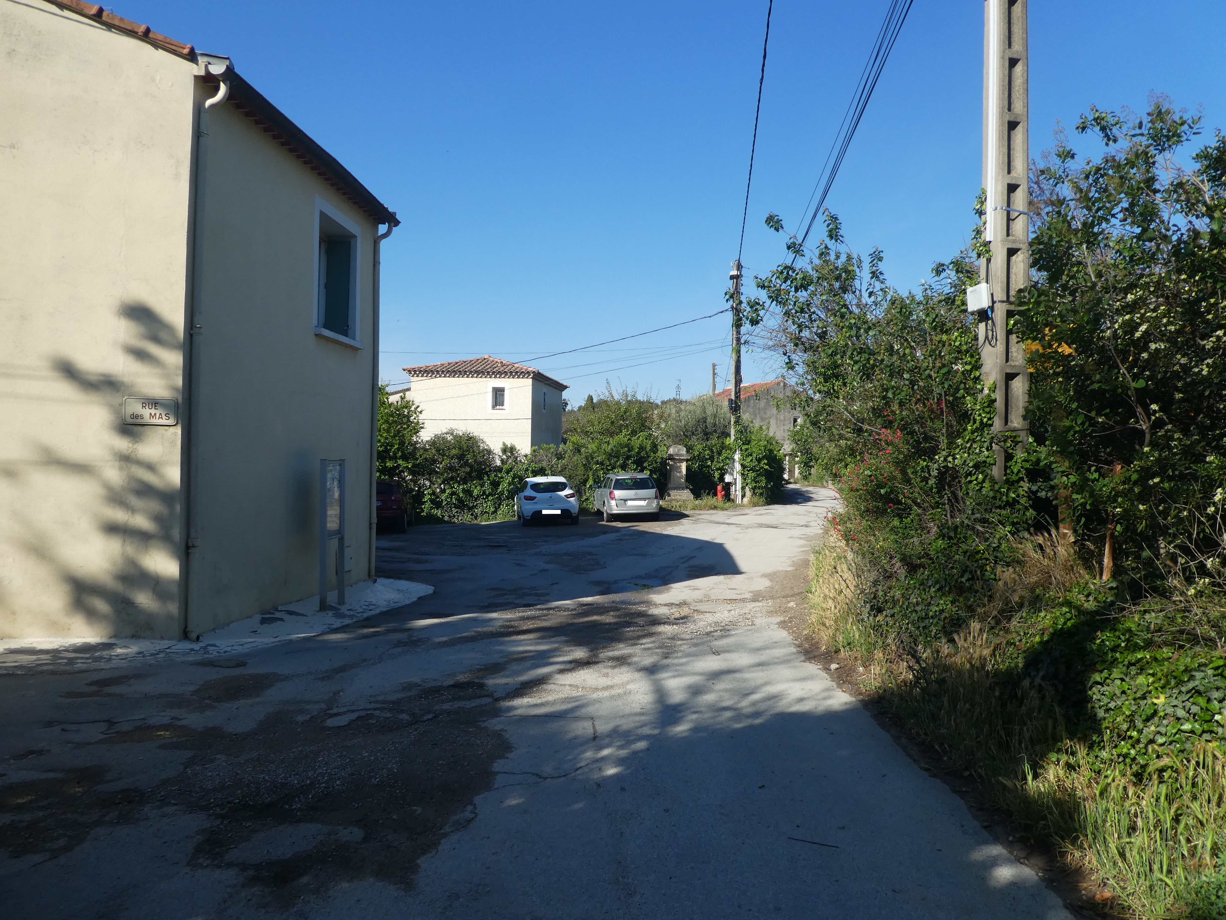 Les Mas (40 m) : suivre la rue partant sur la gauche direction Gallargues-le-Monteux, balisé en jaune