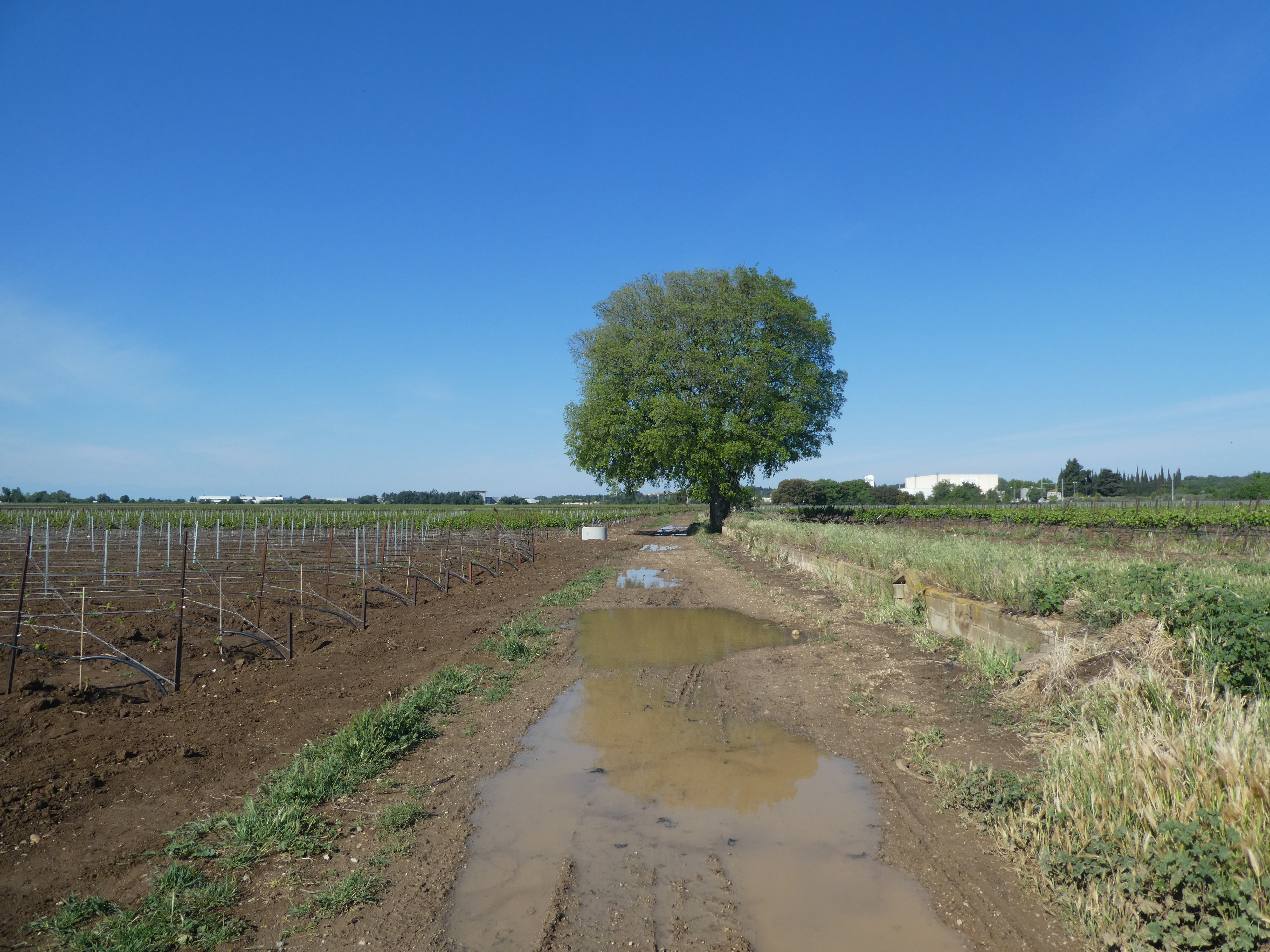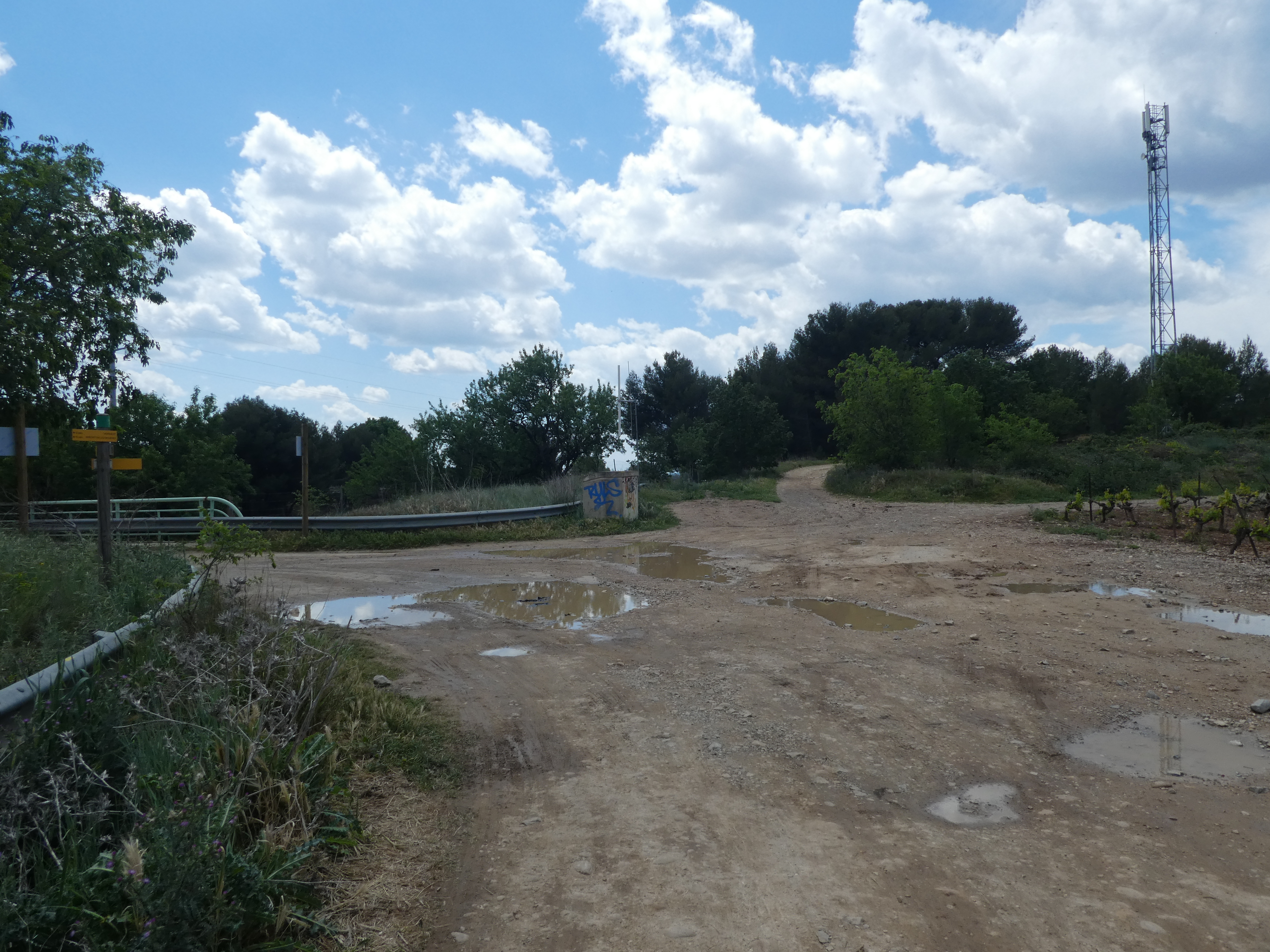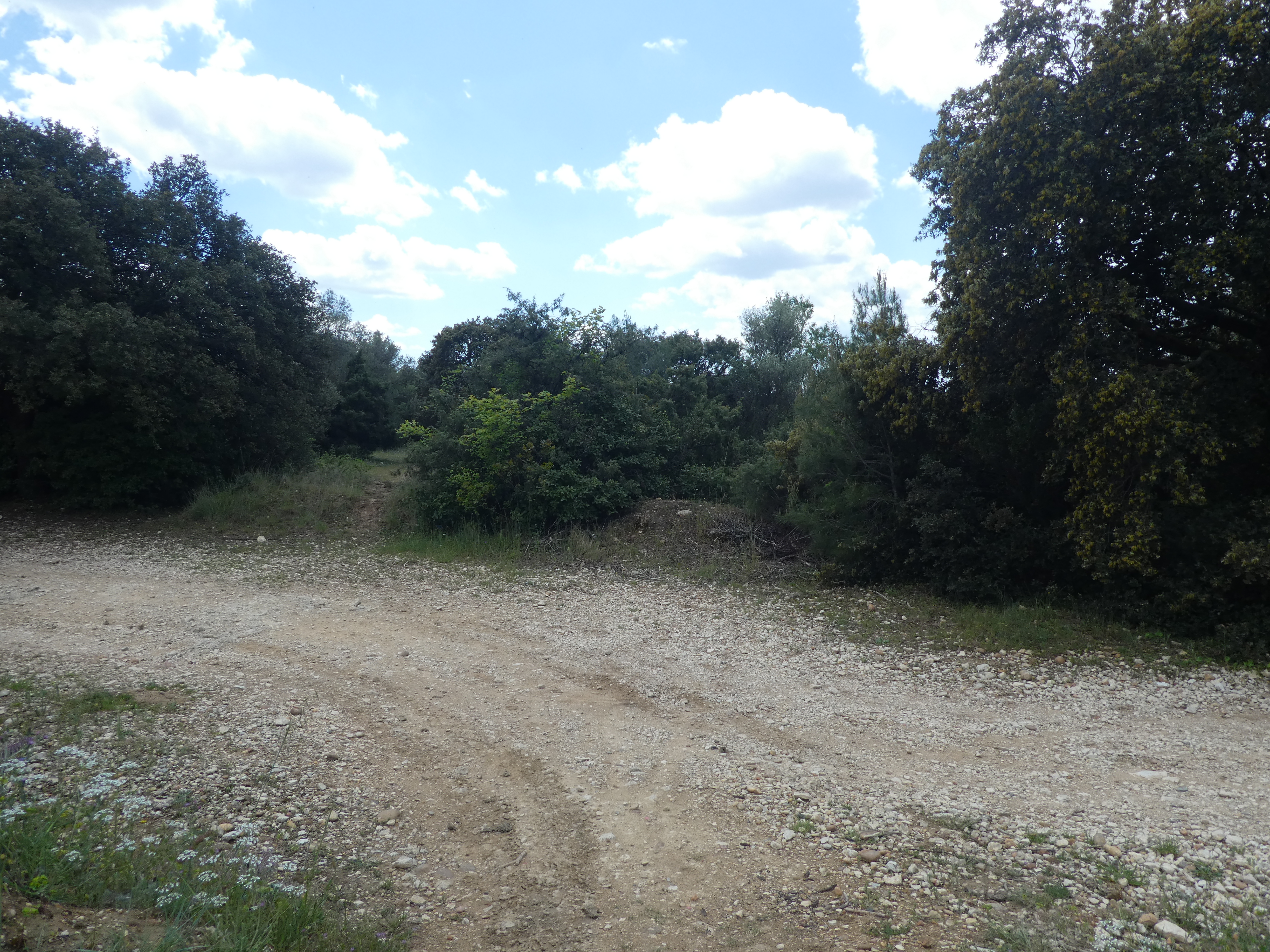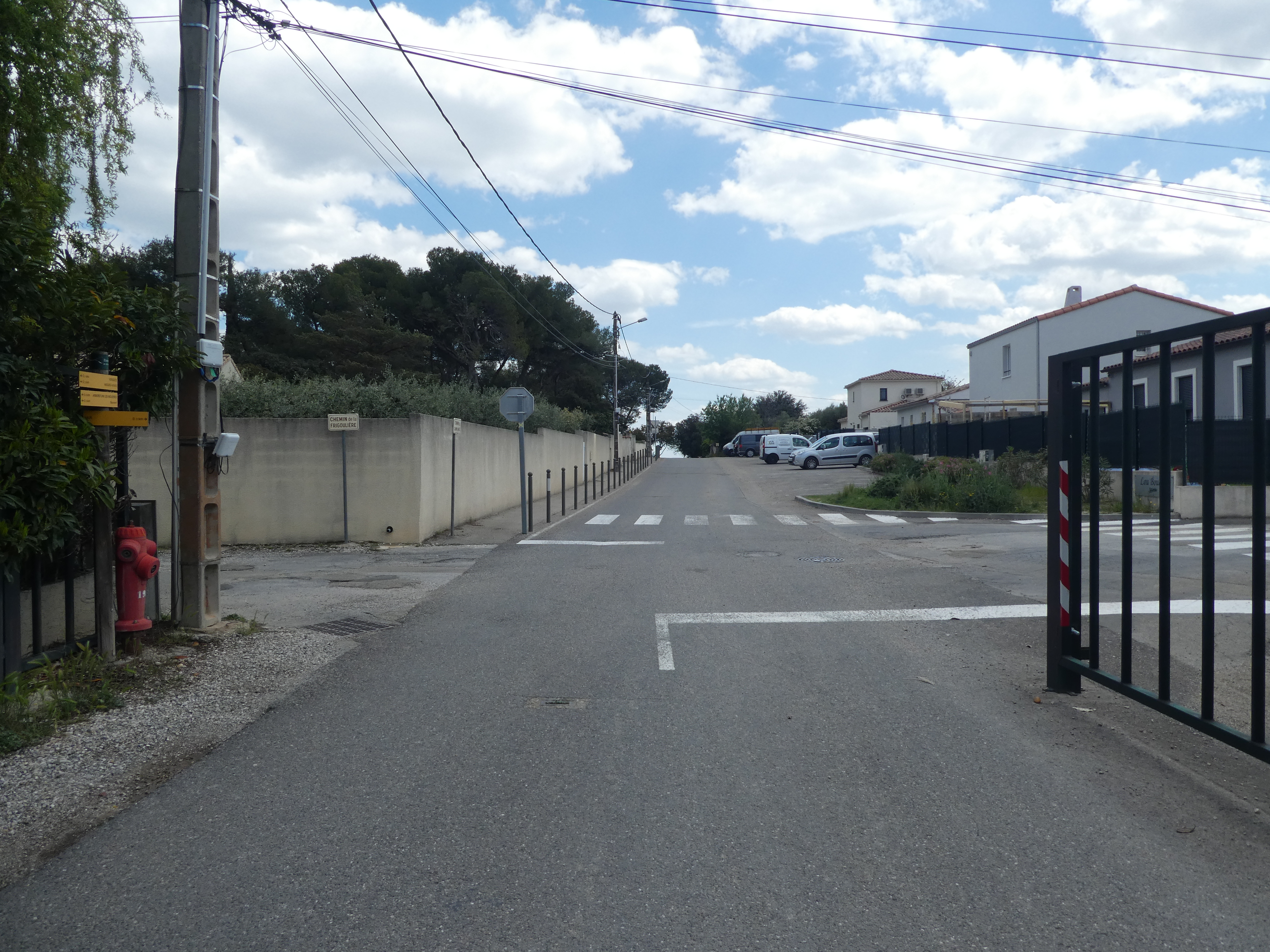 Les Oliviers (50 m) : continuer à suivre la route partant tout droit et longeant l'A9 direction Aigues-Vives, balisé en jaune (ceux qui auraient raccourci la boucle à Gallargues-le-Monteux devraient se retrouver à ce point-là avec 5 kilomètres de moins parcourus)