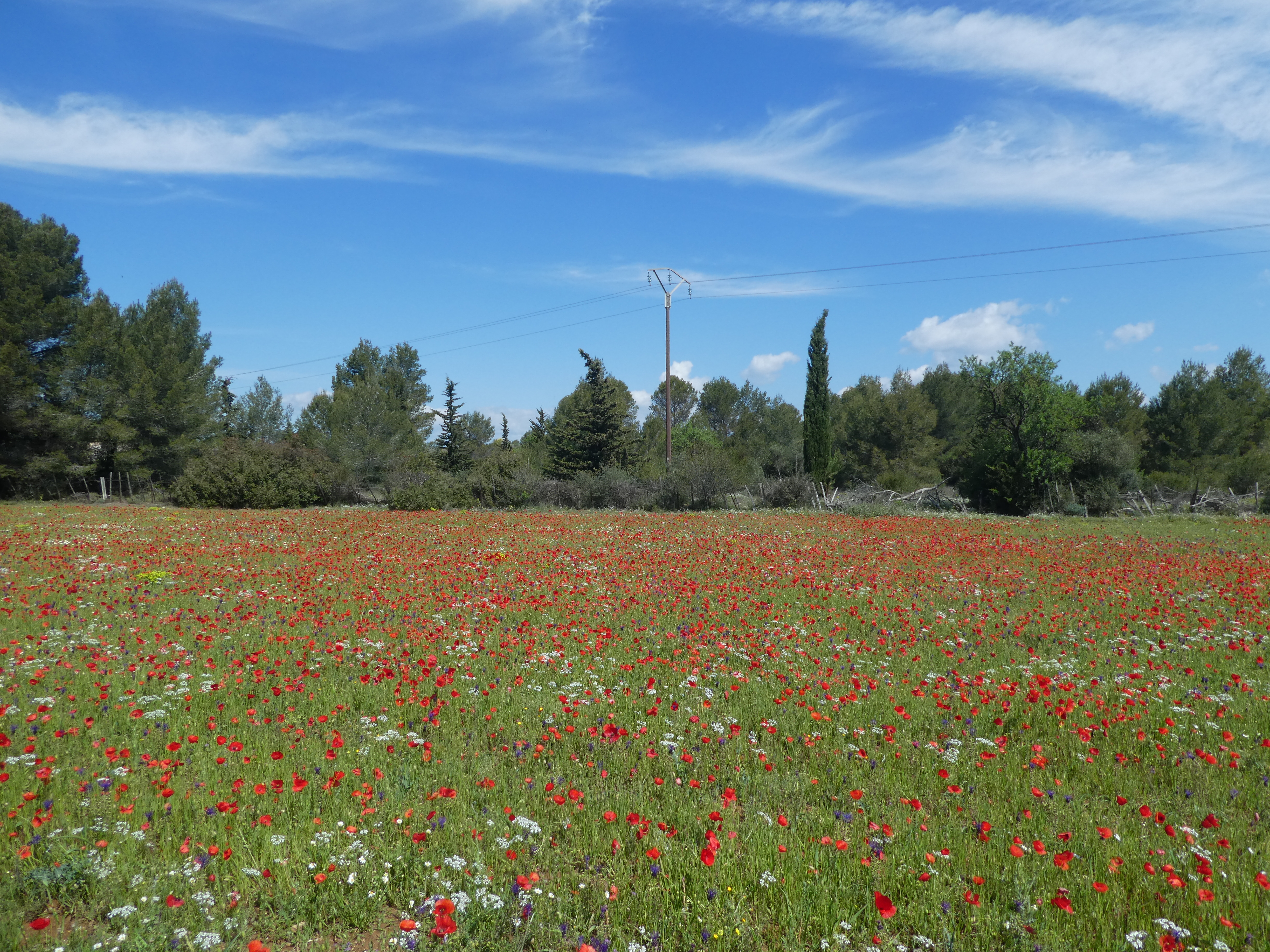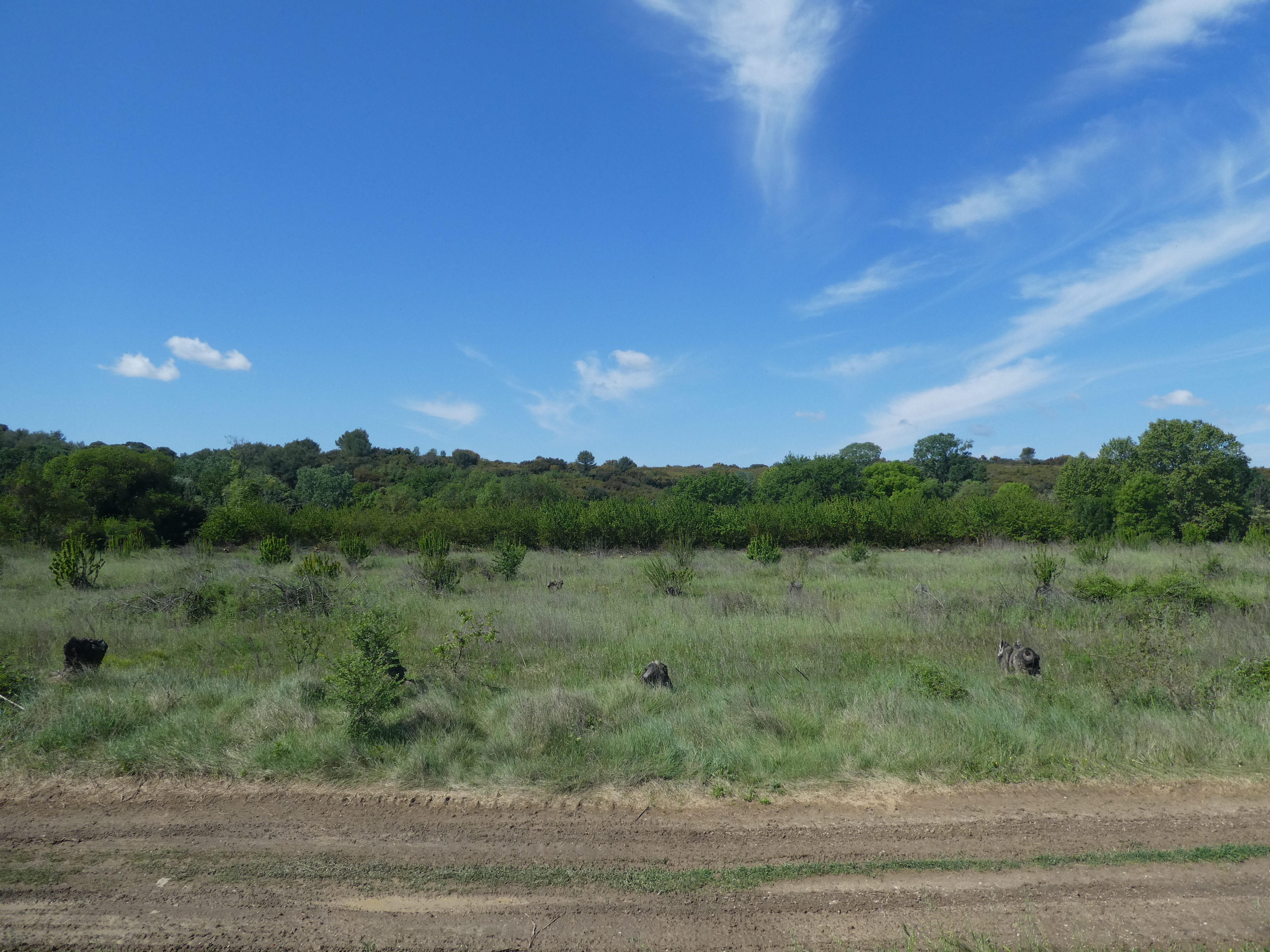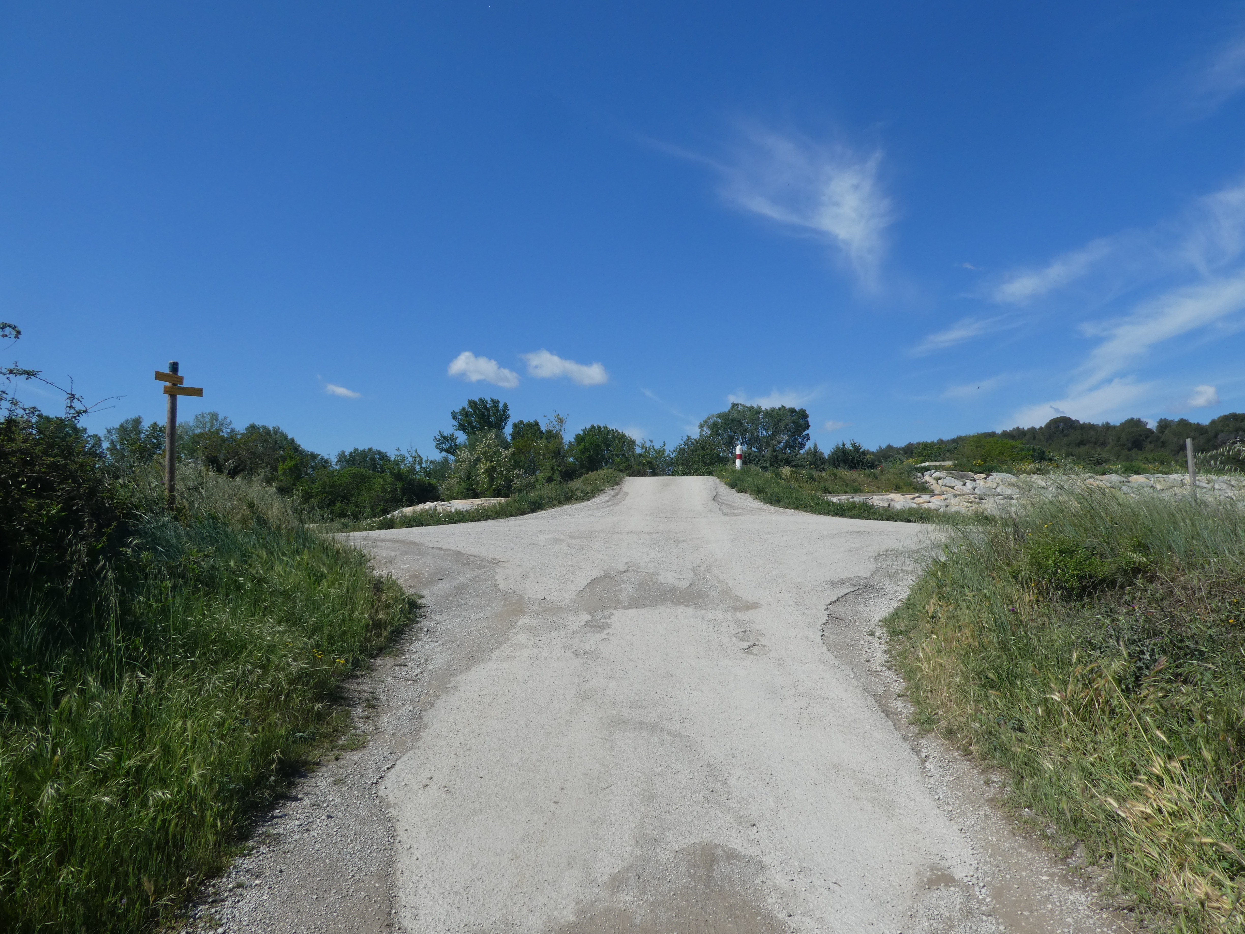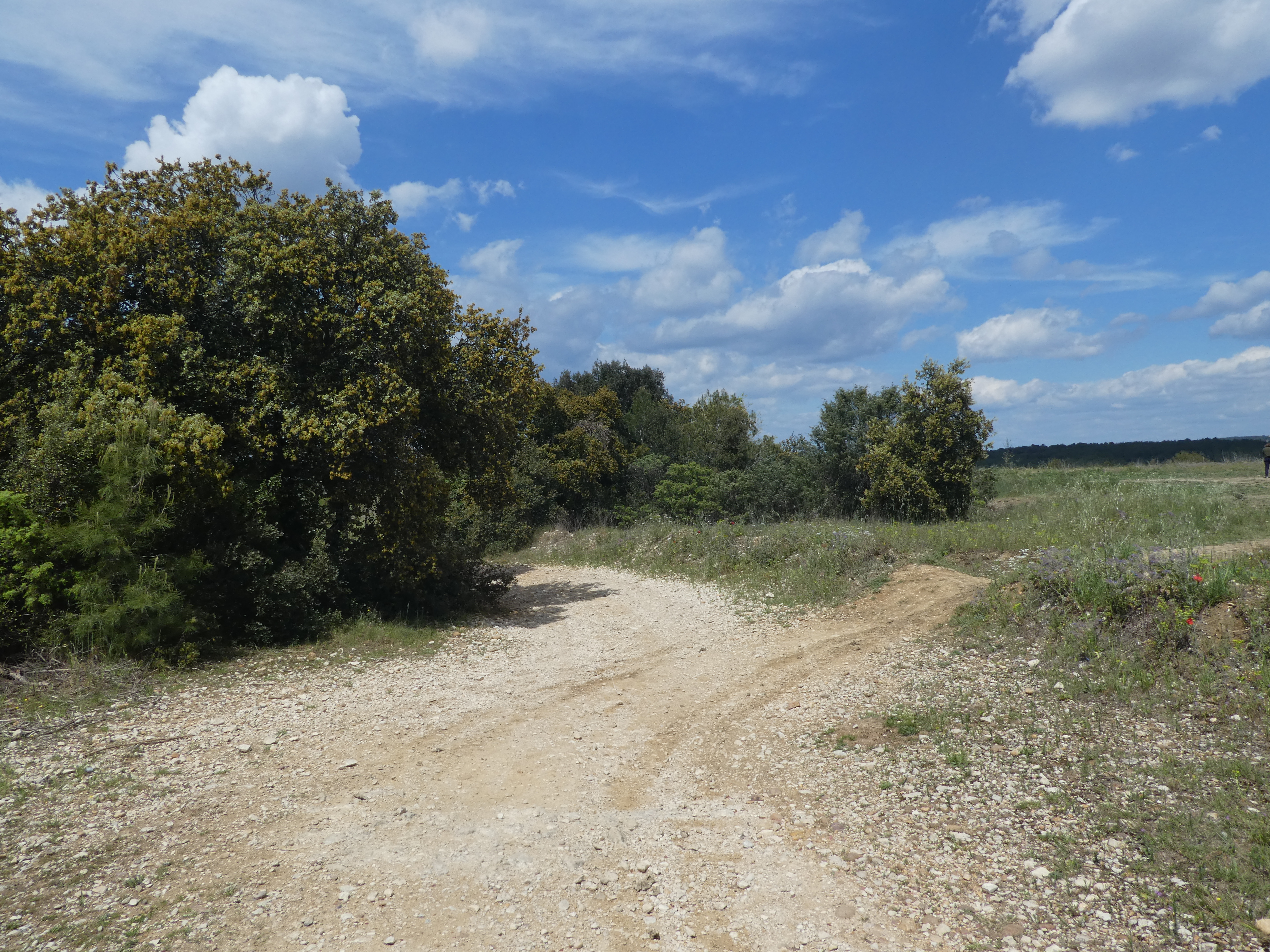 Les Oliviers (50 m) : continuer à suivre la route partant tout droit et longeant l'A9 direction Aigues-Vives, balisé en jaune (ceux qui auraient raccourci la boucle à Gallargues-le-Monteux devraient se retrouver à ce point-là avec 5 kilomètres de moins parcourus)