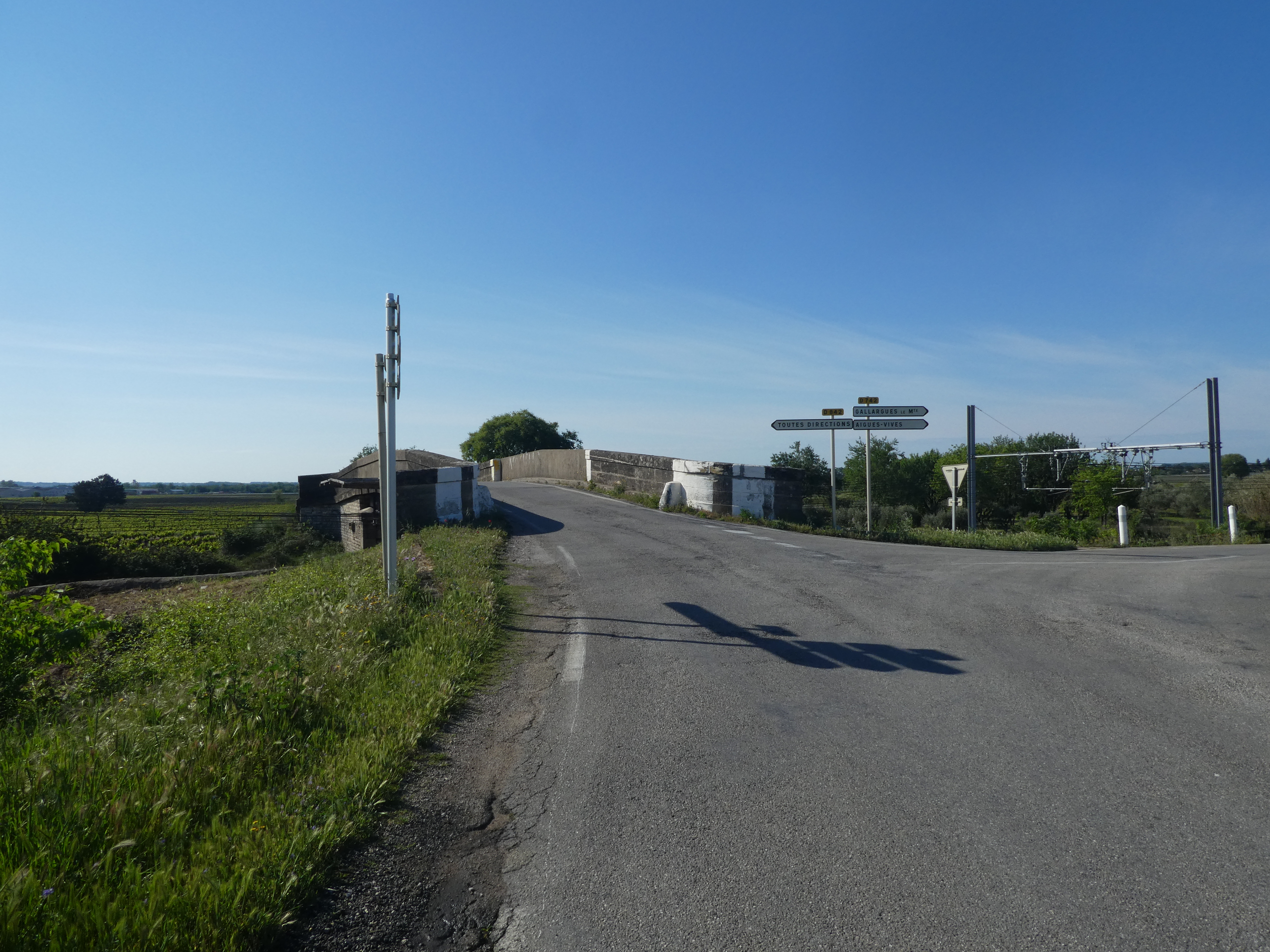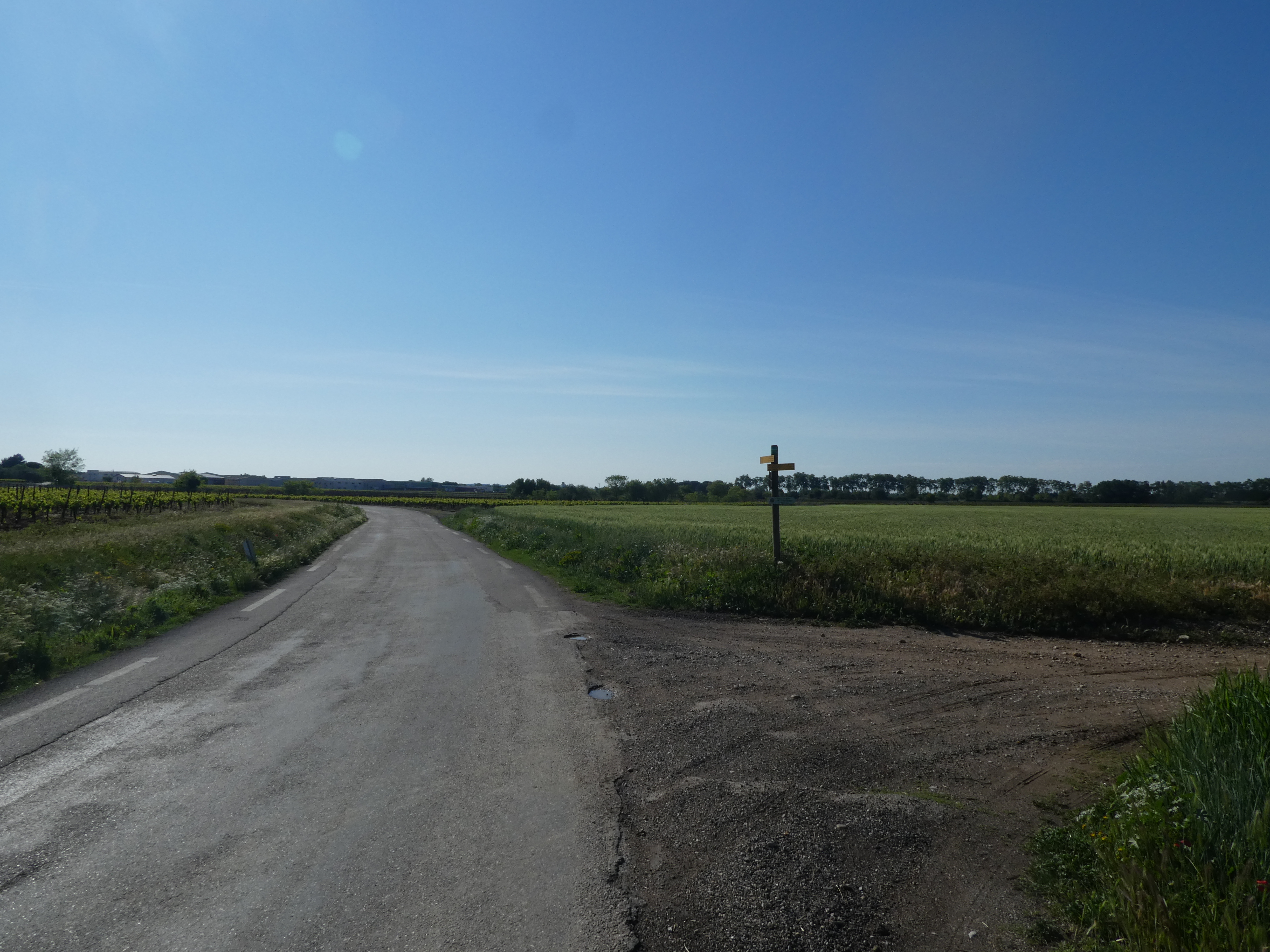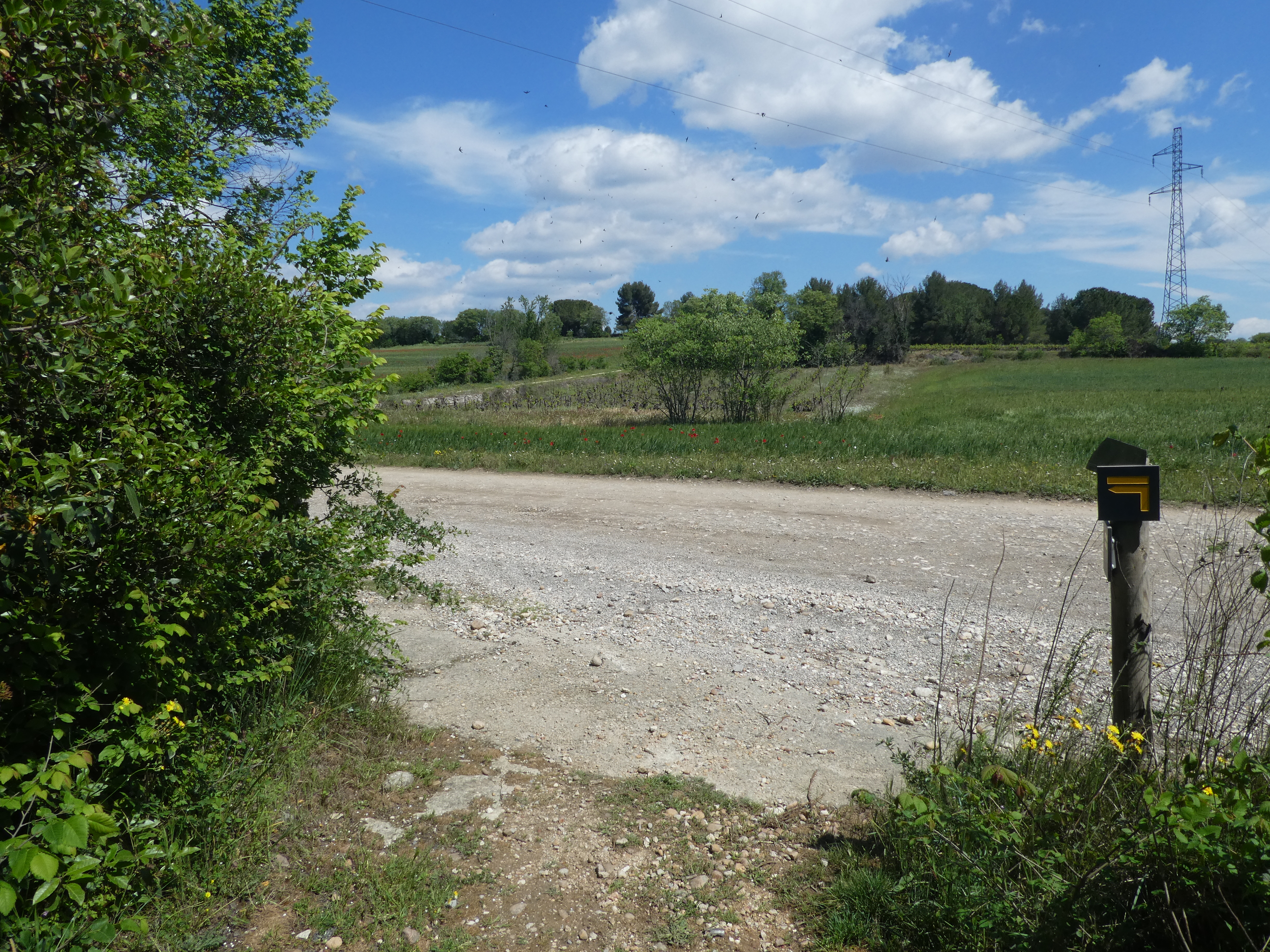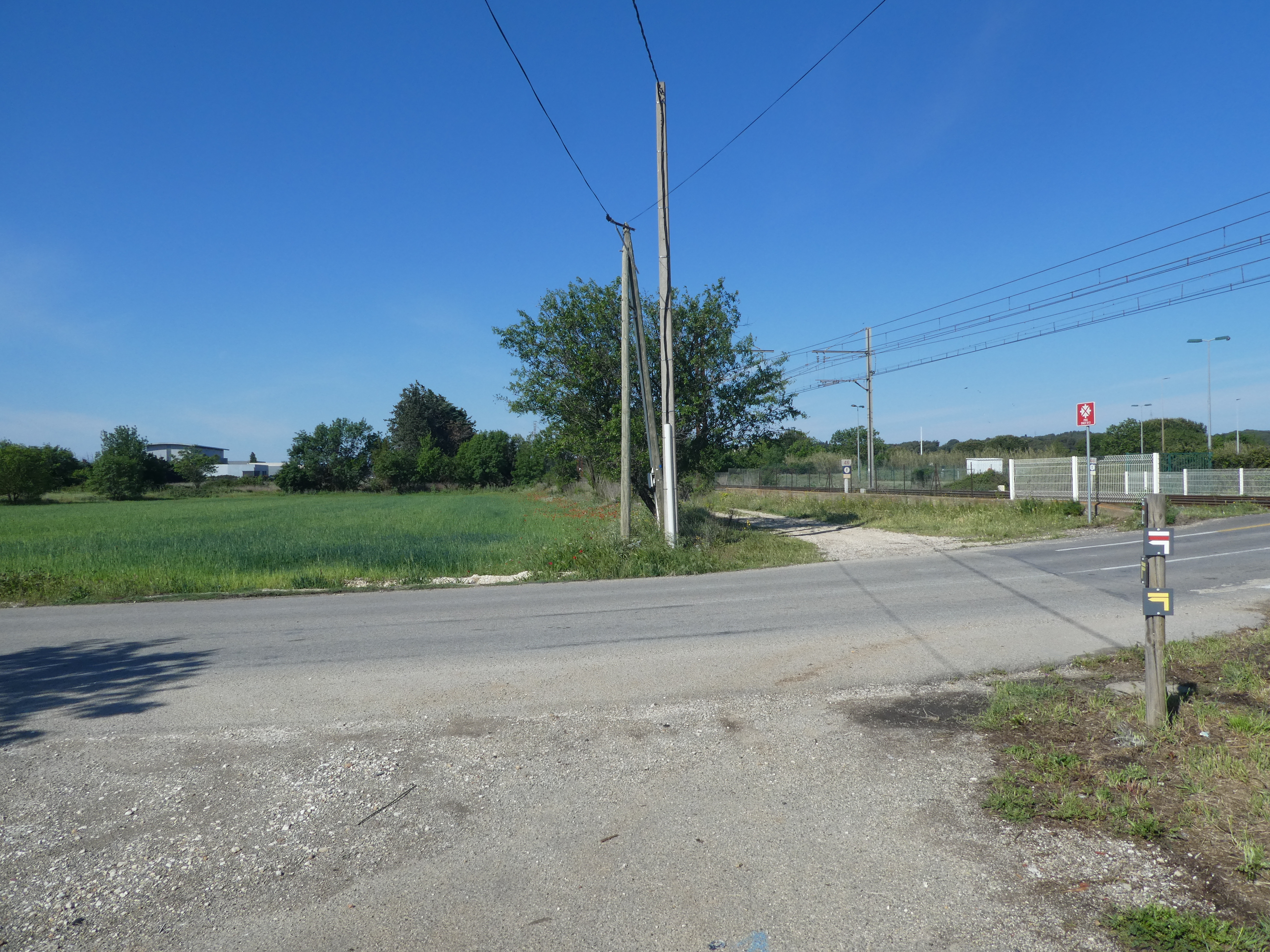 Jonny (25 m) : continuer à suivre la route partant tout droit et longeant l'A9 direction Gallargues-le-Monteux, balisé en jaune