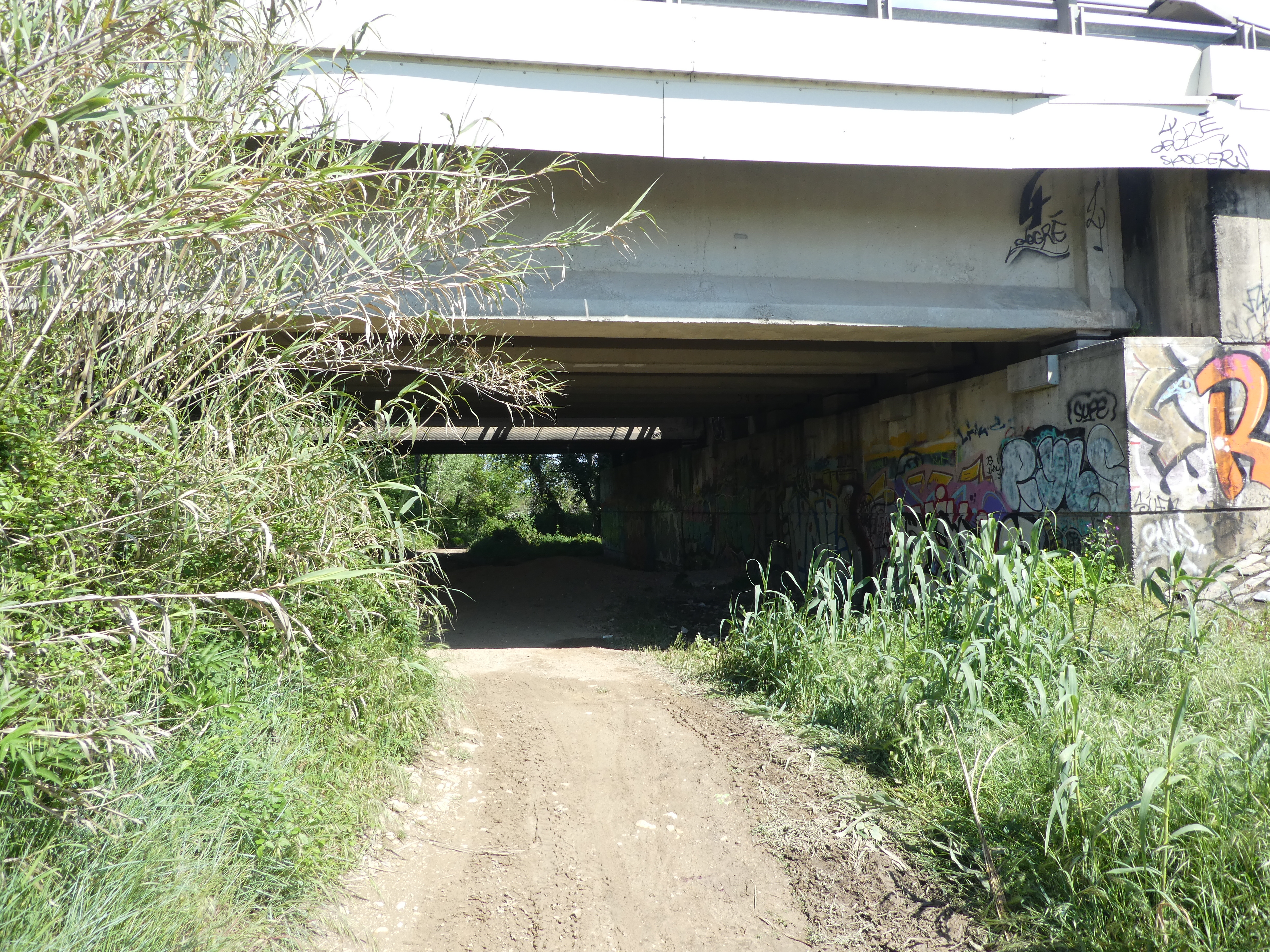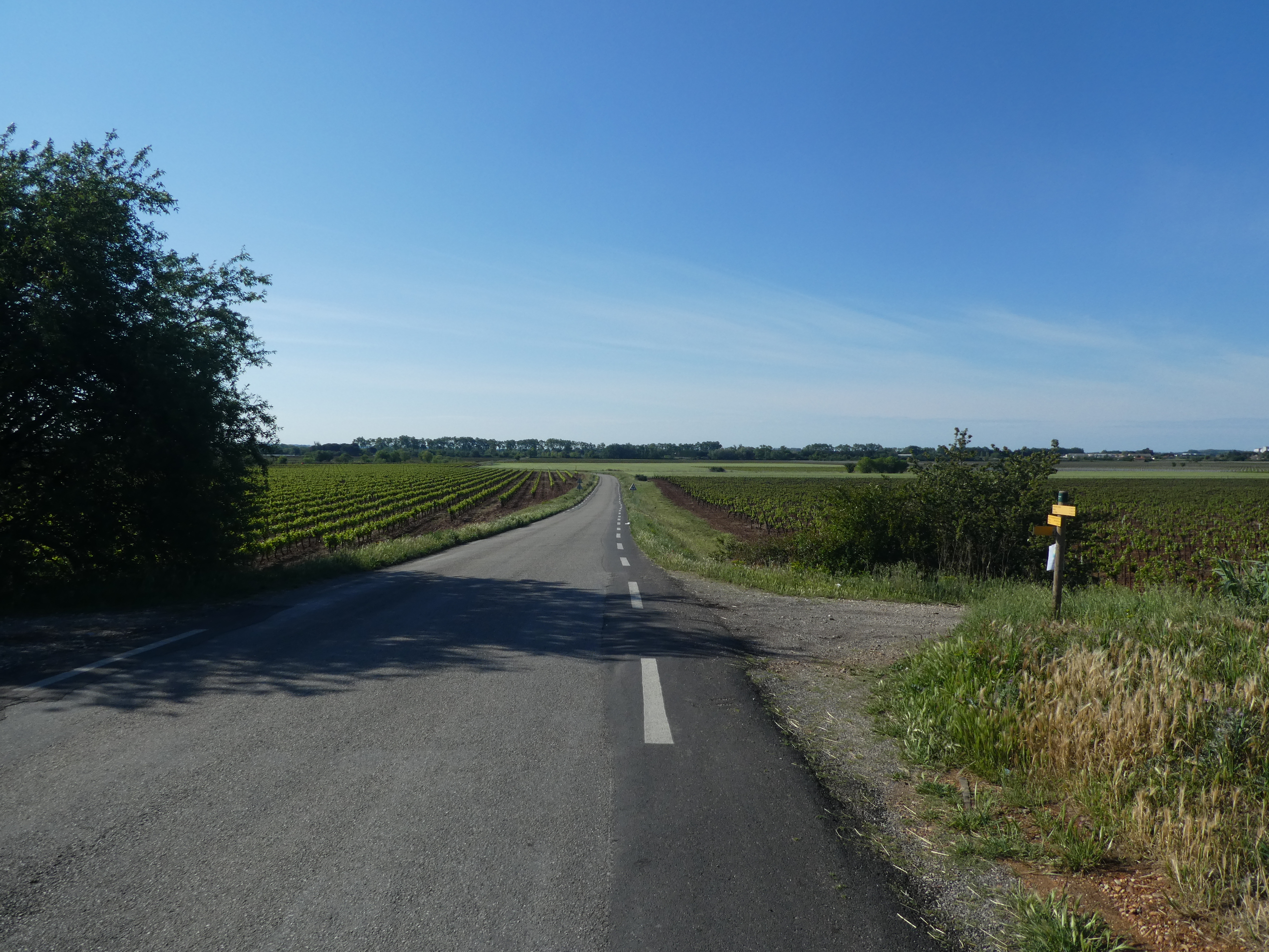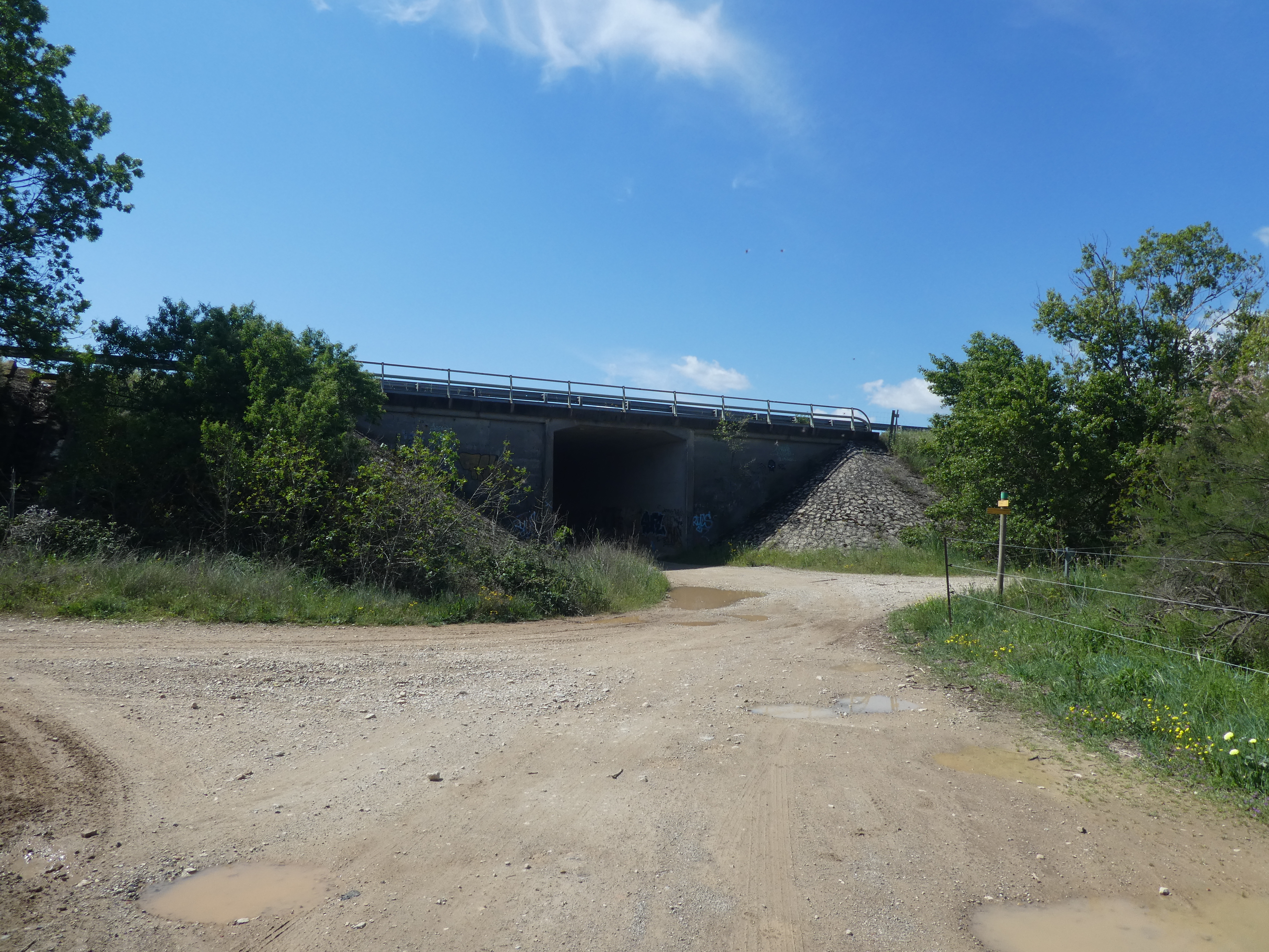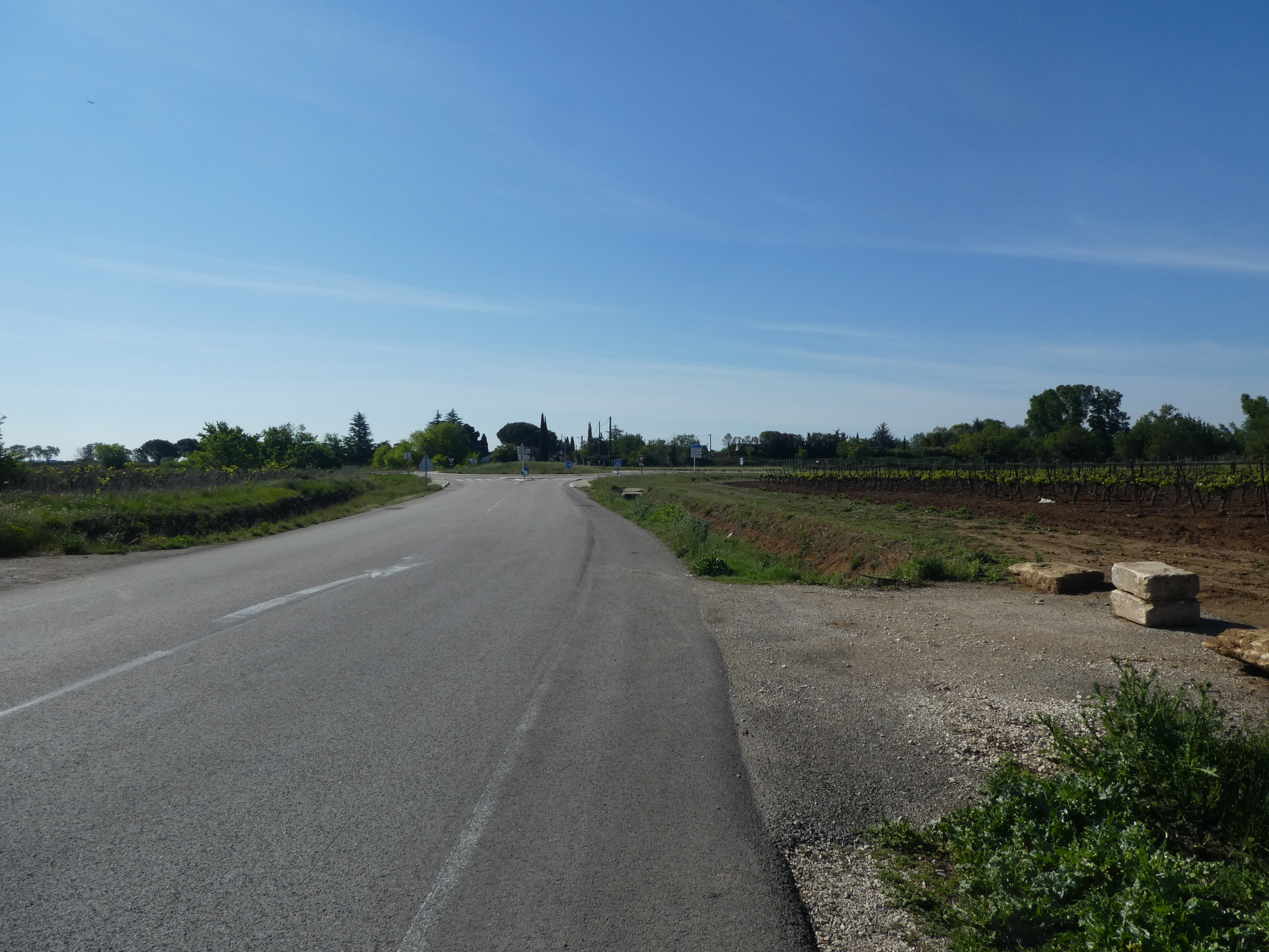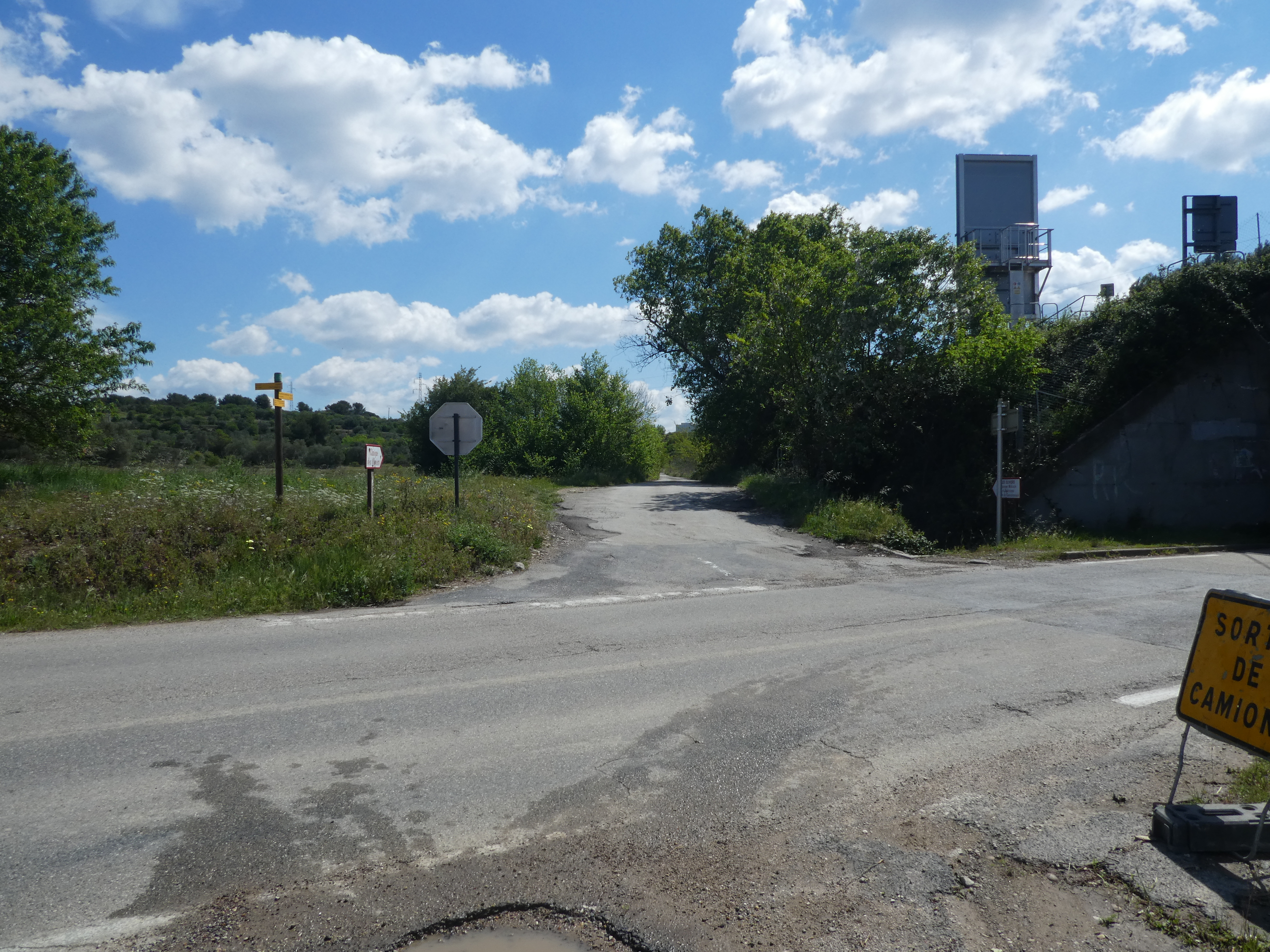 Jonny (25 m) : continuer à suivre la route partant tout droit et longeant l'A9 direction Gallargues-le-Monteux, balisé en jaune