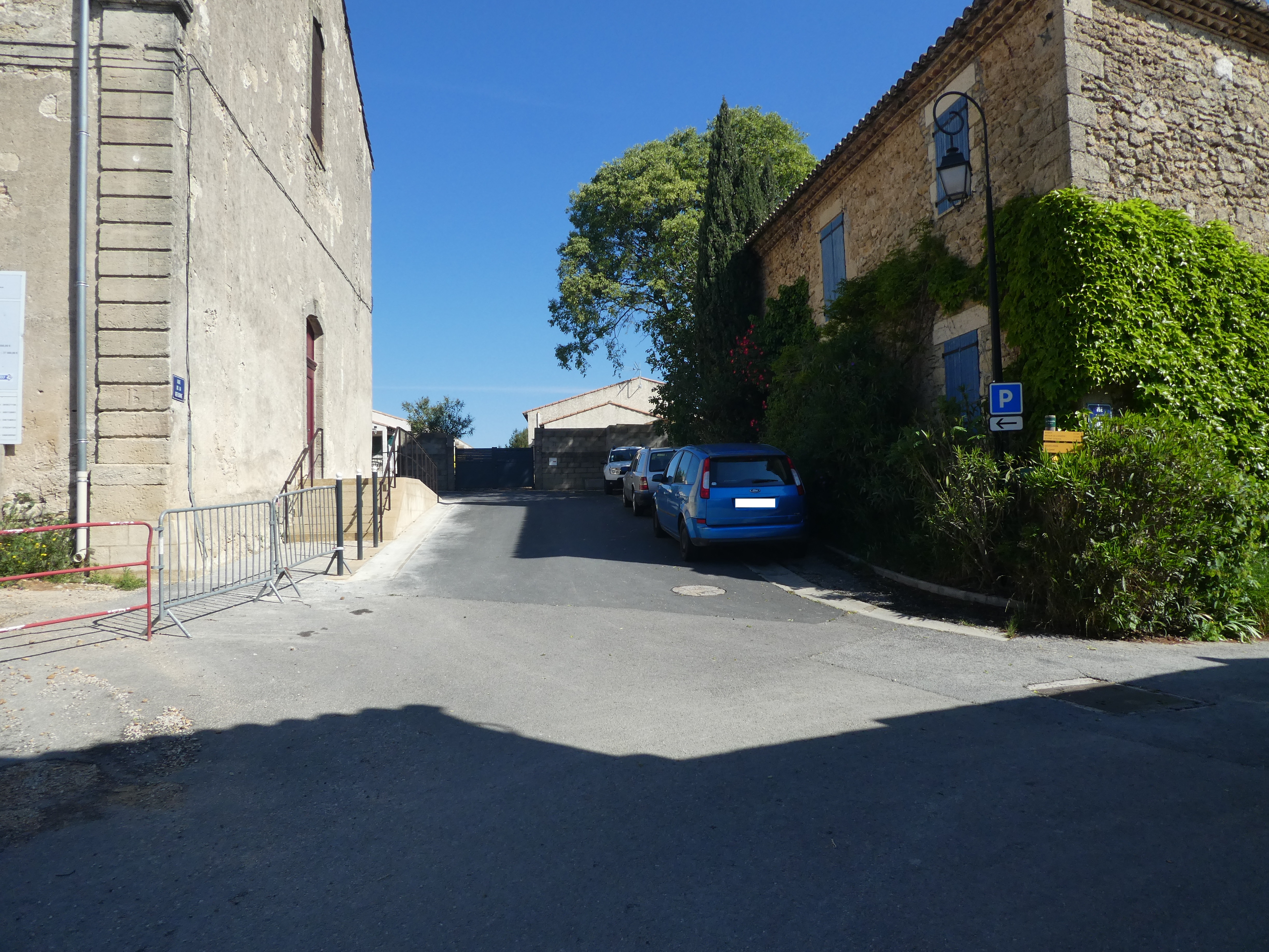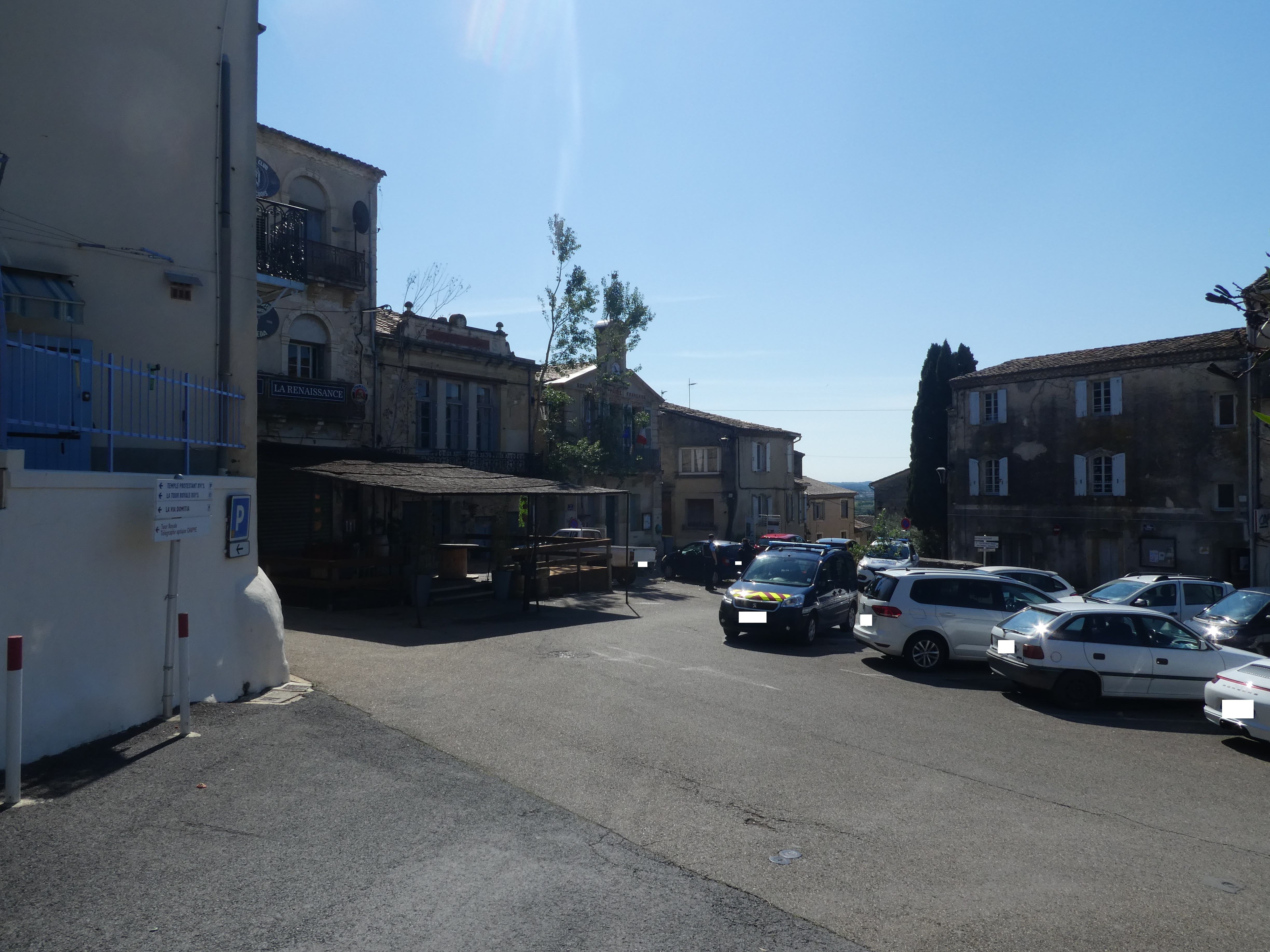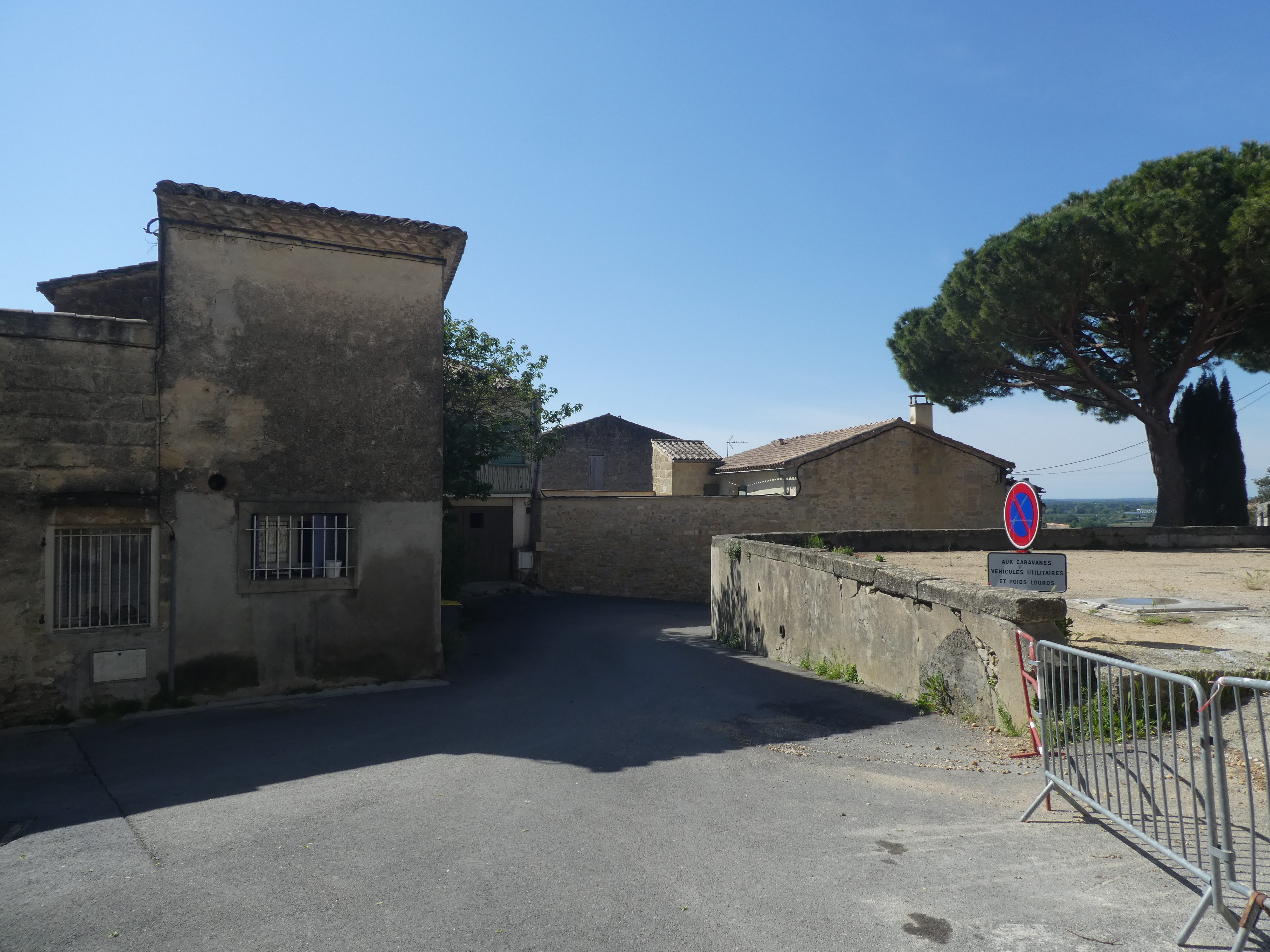 Gallargues-le-Monteux (55 m) : suivre la rue partant sur la droite pour faire un aller-retour vers le temple et la Tour Royale direction Tour Royale, balisé uniquement en jaune dorénavant