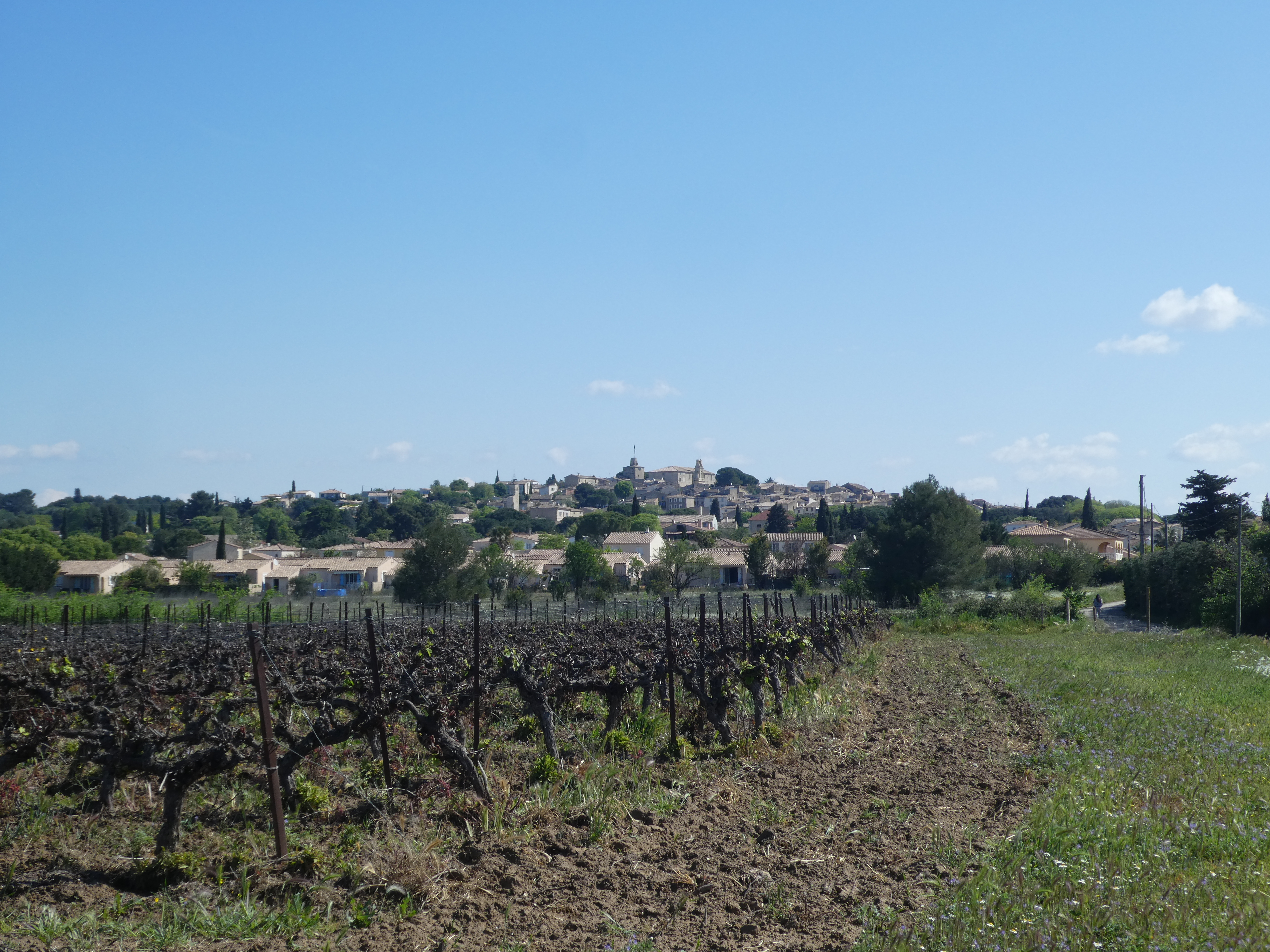 Vue sur la colline accueillant le village de Gallargues-le-Monteux