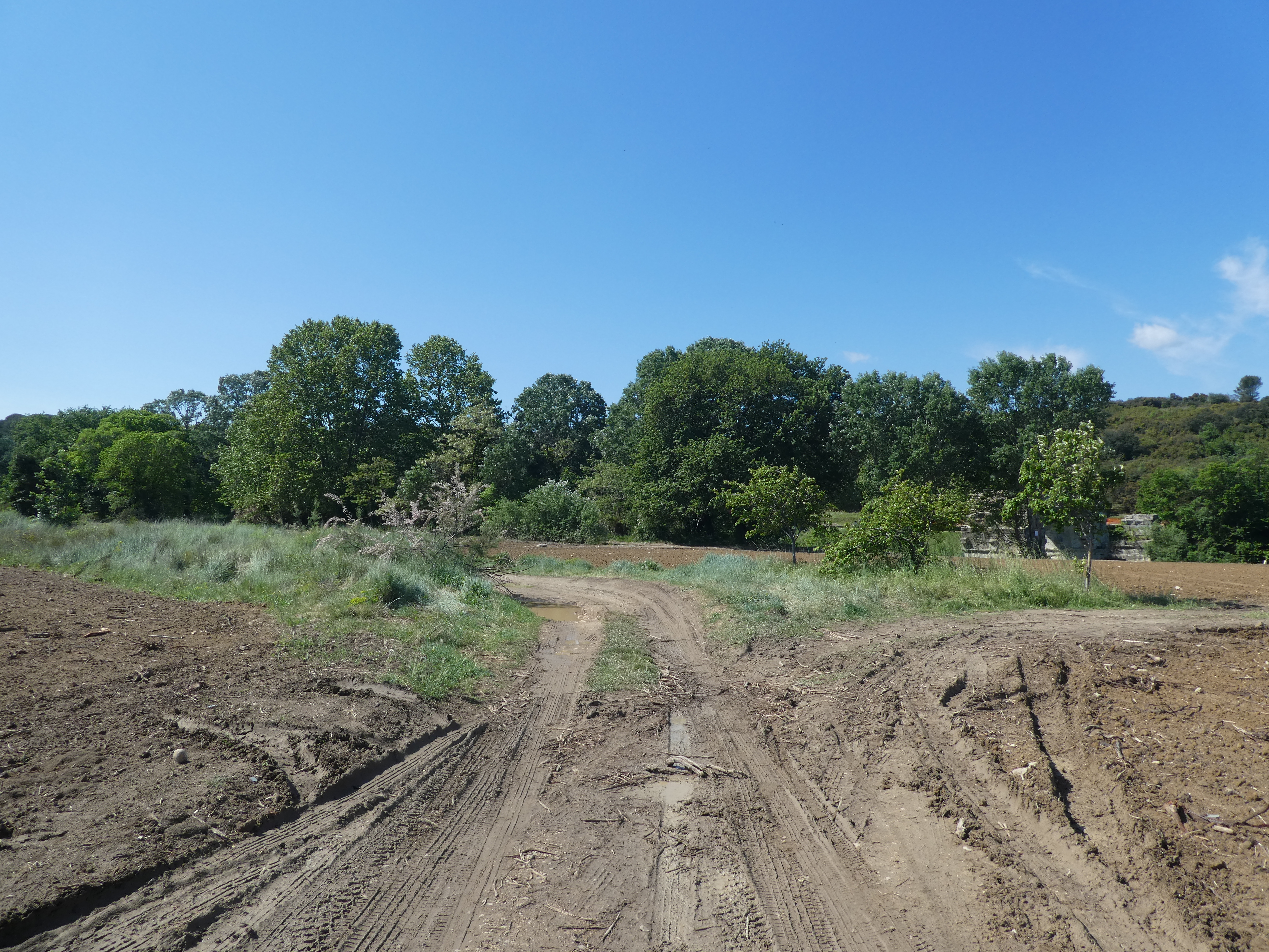A ce croisement (200 mètres après le lieu-dit "Patenbieu"), suivre le chemin partant tout droit puis celui partant sur la droite et longeant le Vidourle rive gauche direction le Pont Romain