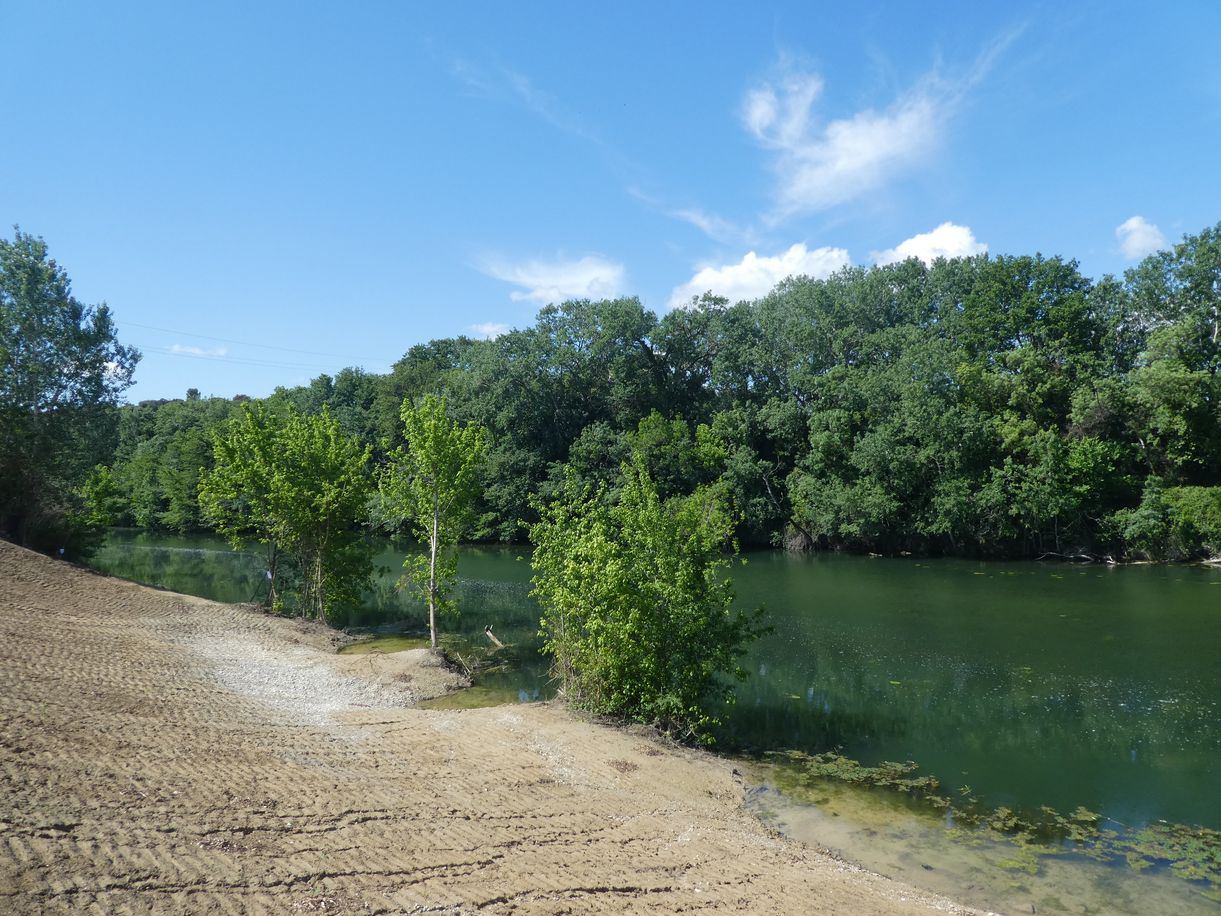 La digue de protection contre les crues violentes du Vidourle notamment lors d'épisodes cévenols en fin de saison estivale (septembre-octobre)