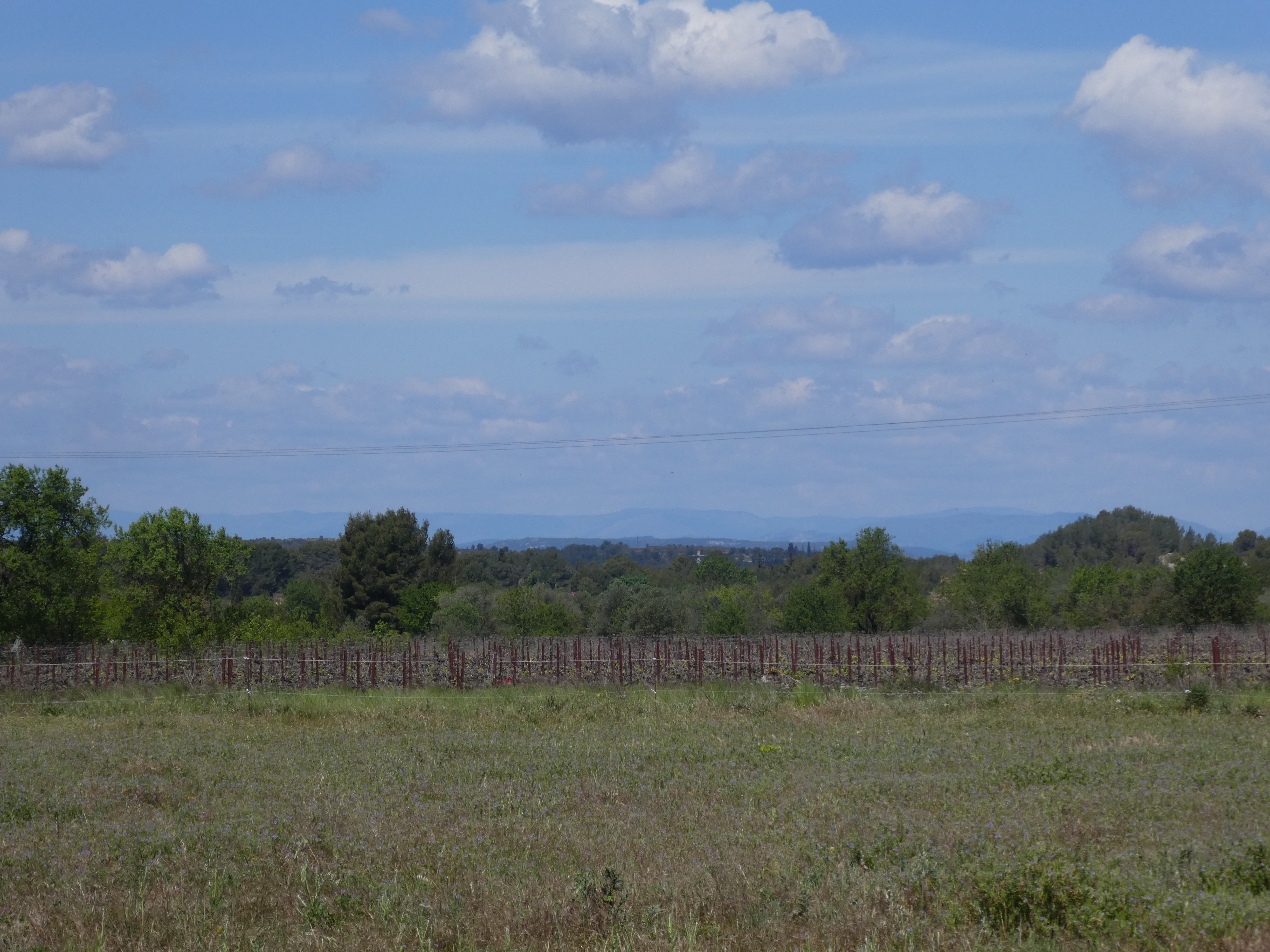 Vue au loin sur les coteaux de la Costière de Nîmes